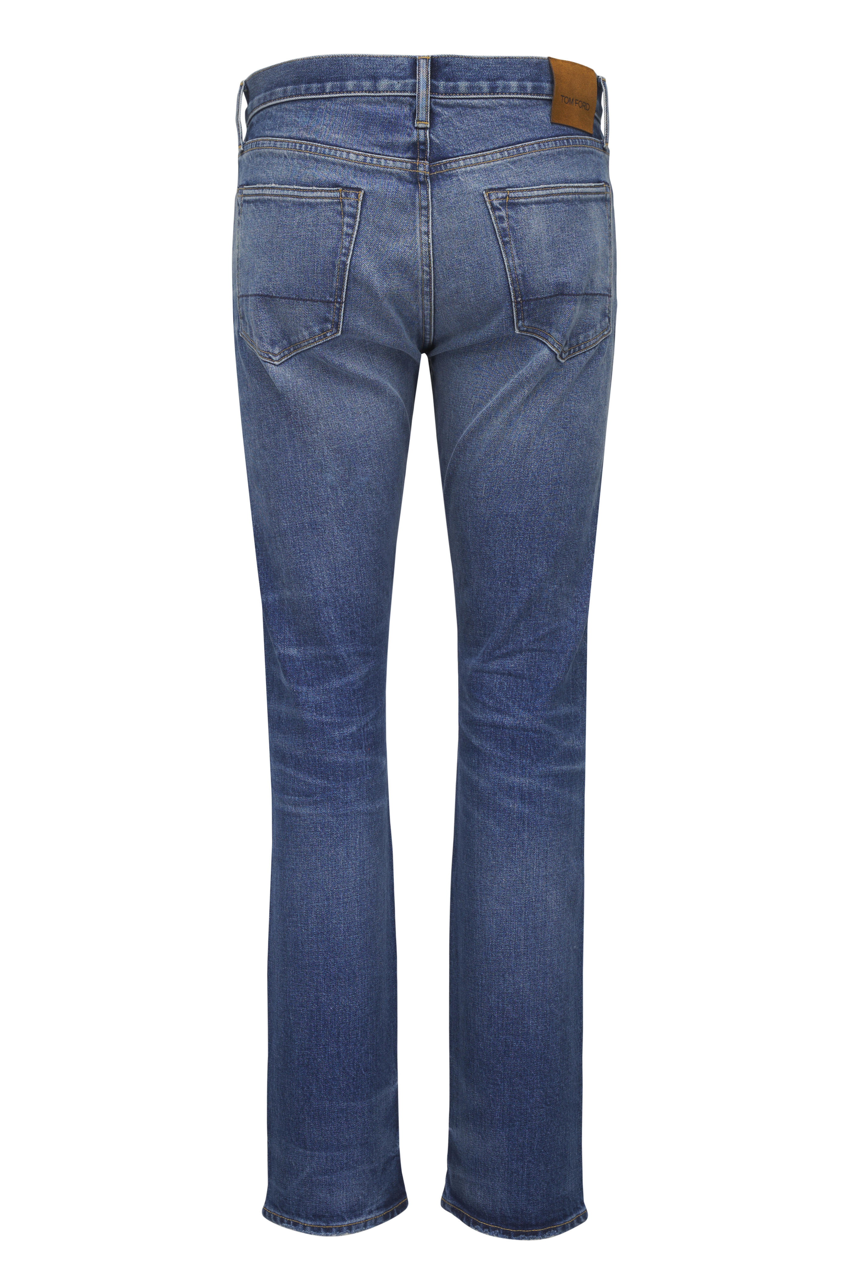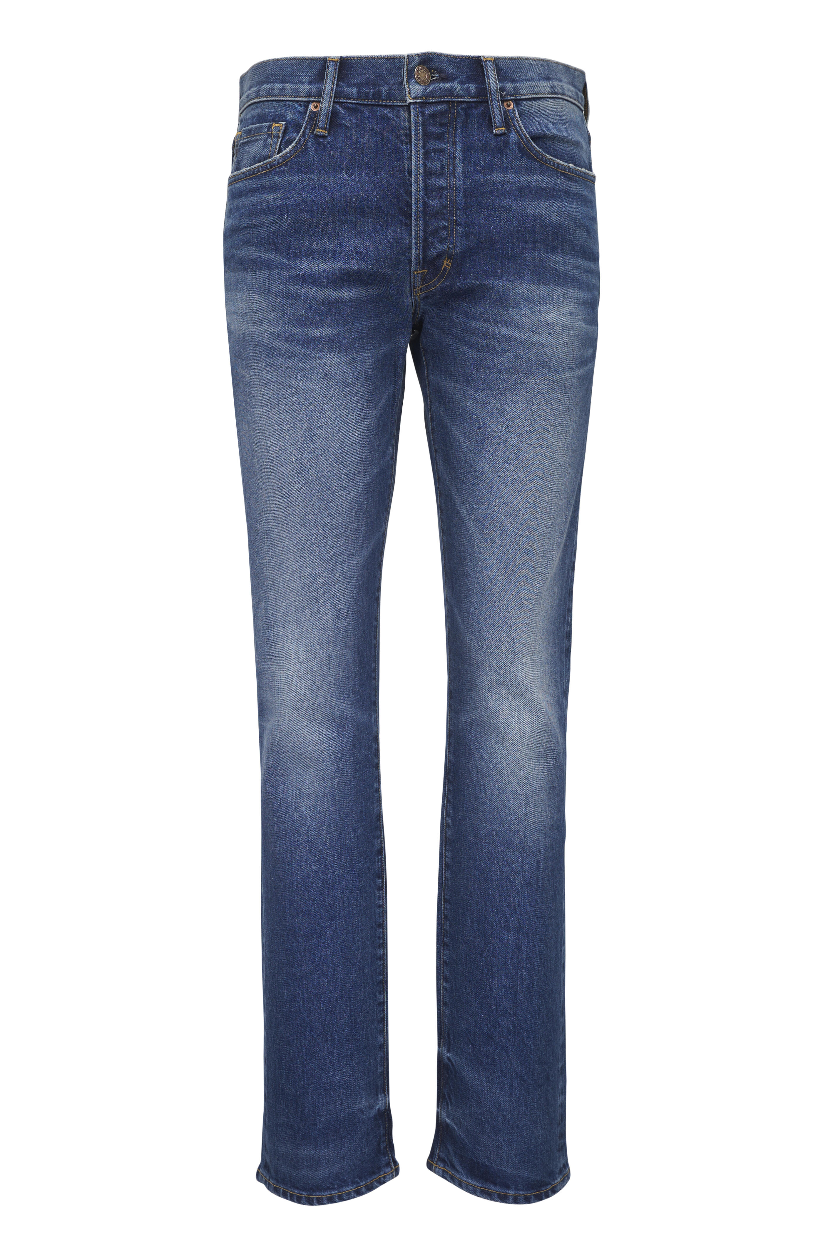 Button fly; button closure. Banded waistband; Belt loops. Selvedge denim. Five pocket styling. Made in the USA. 34" inseam. 98% cotton 2% polyurethane. Machine wash.