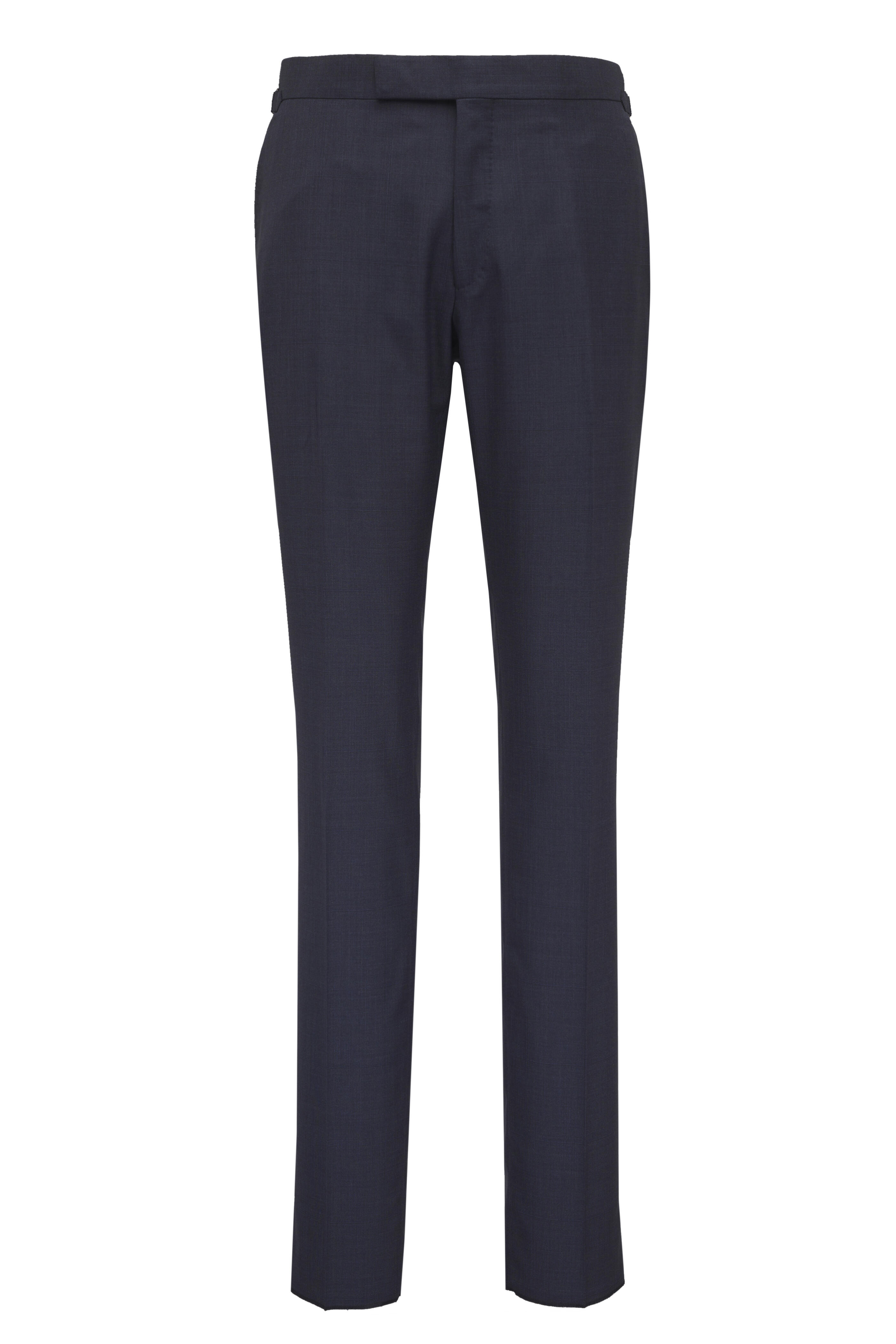 Navy Shadow Windowpane Plaid Wool & Silk Suit