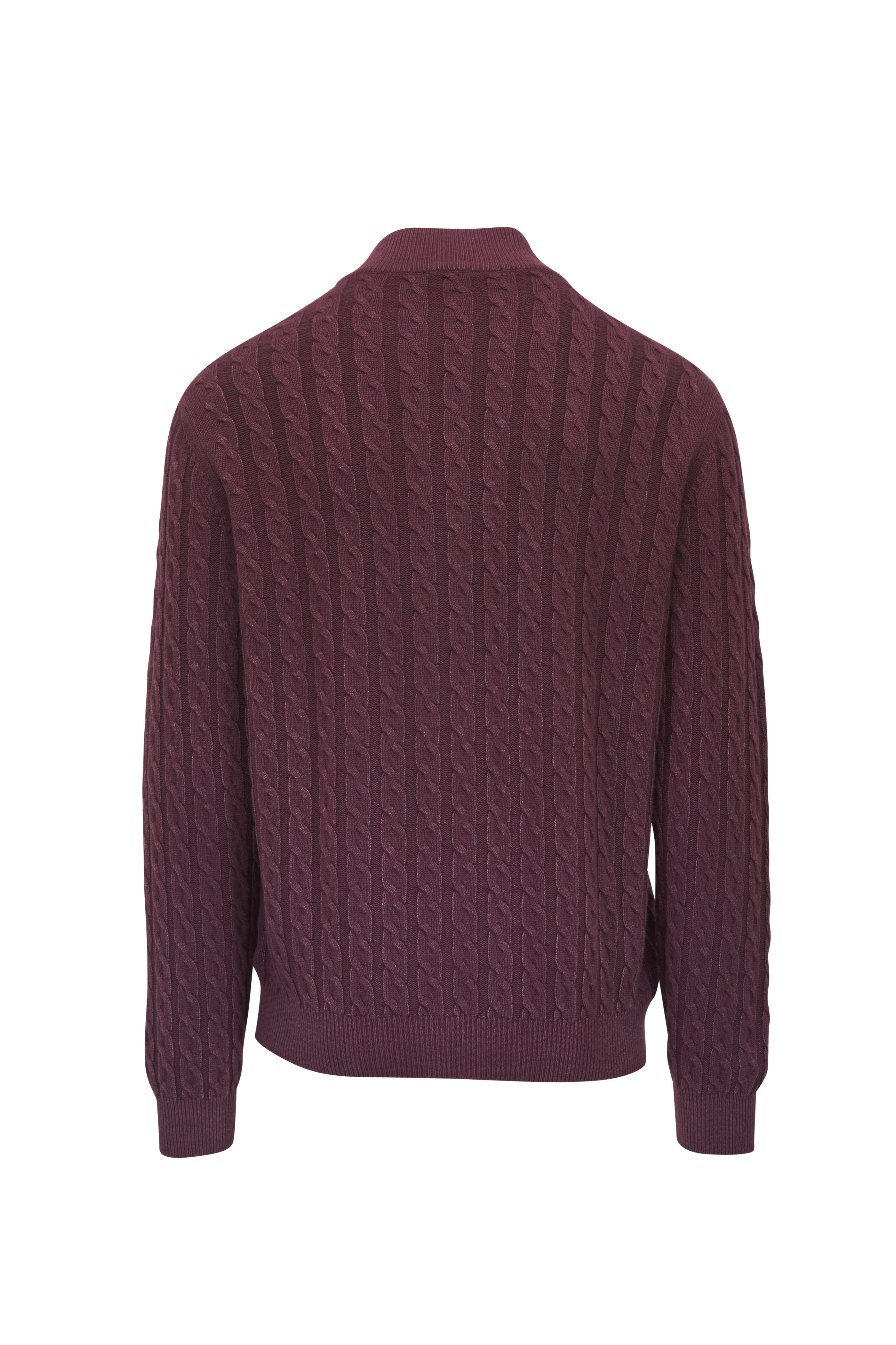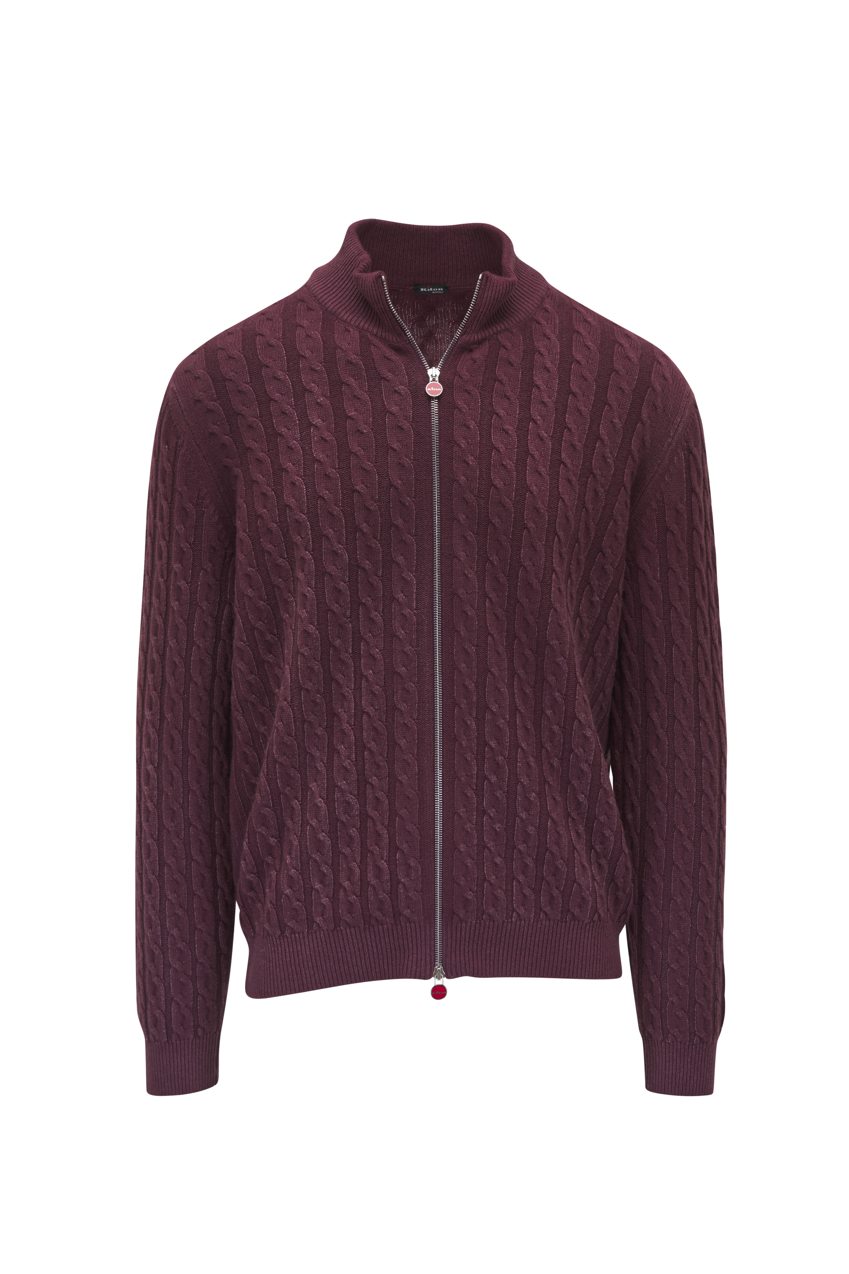 • Kiton - Burgundy Cable Knit Cashmere Full Zip Sweater