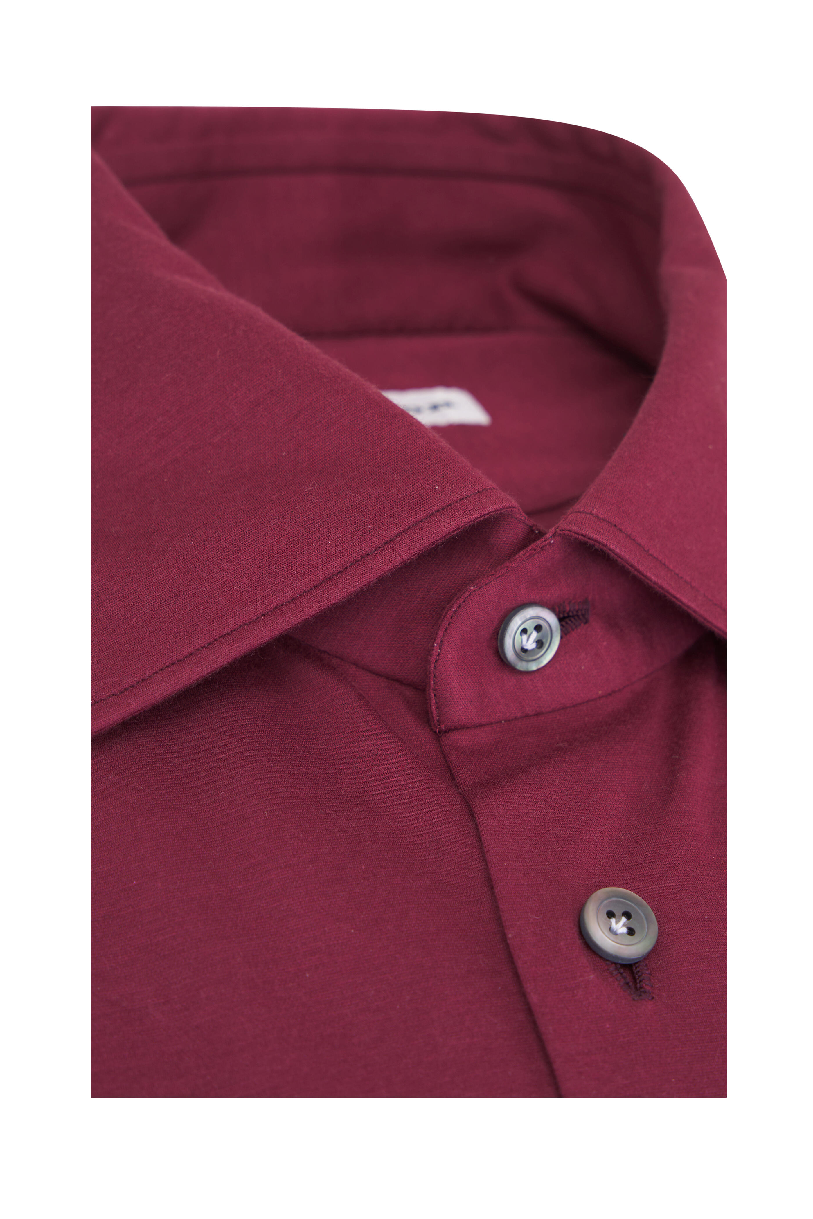 • Kiton - Burgundy Jersey Cotton Knit Sport Shirt