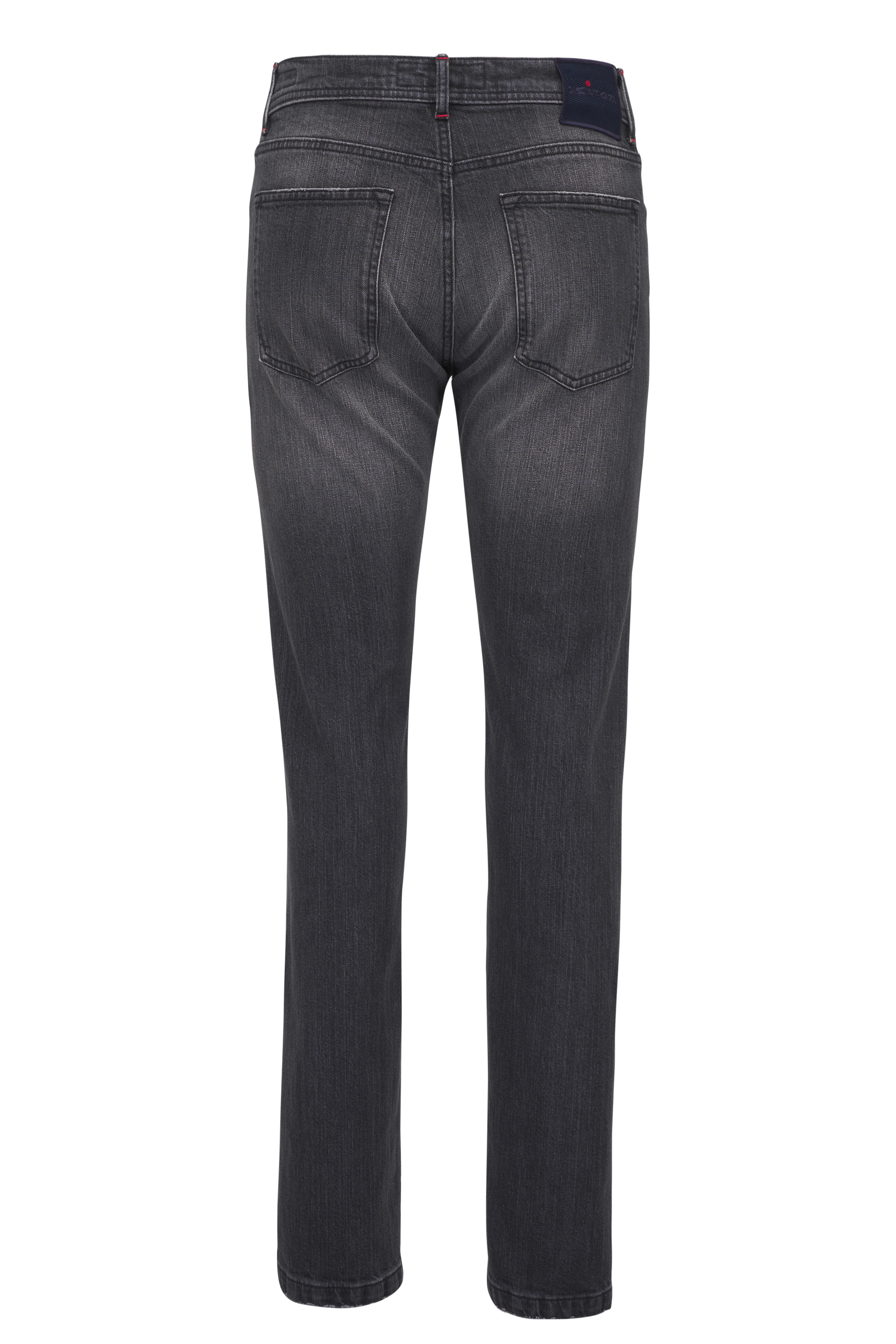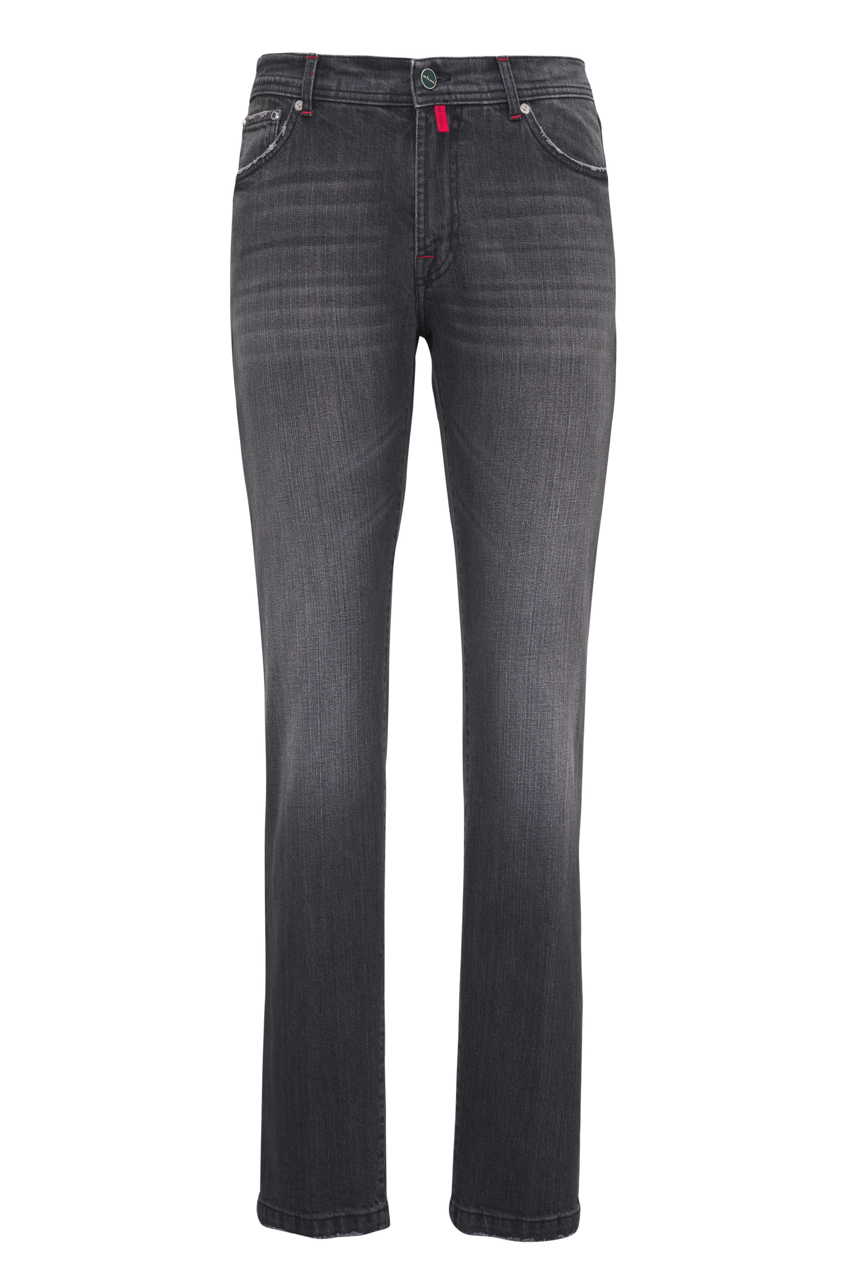 Zip fly; button closure. Banded waist; belt loops. Five pocket styling. Made in Italy. Inseam 34". 98% cotton, 2% elastane. Hand wash.
