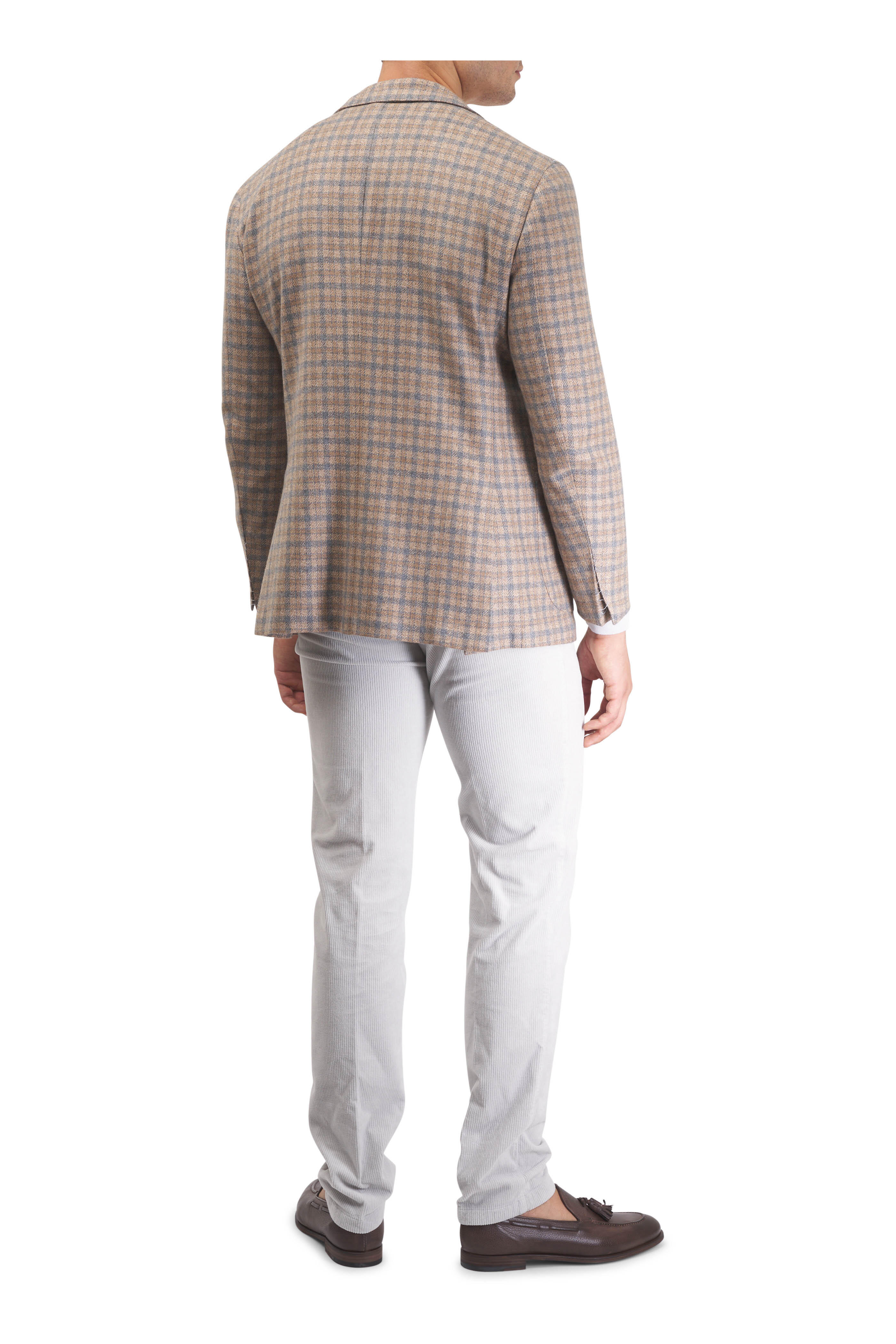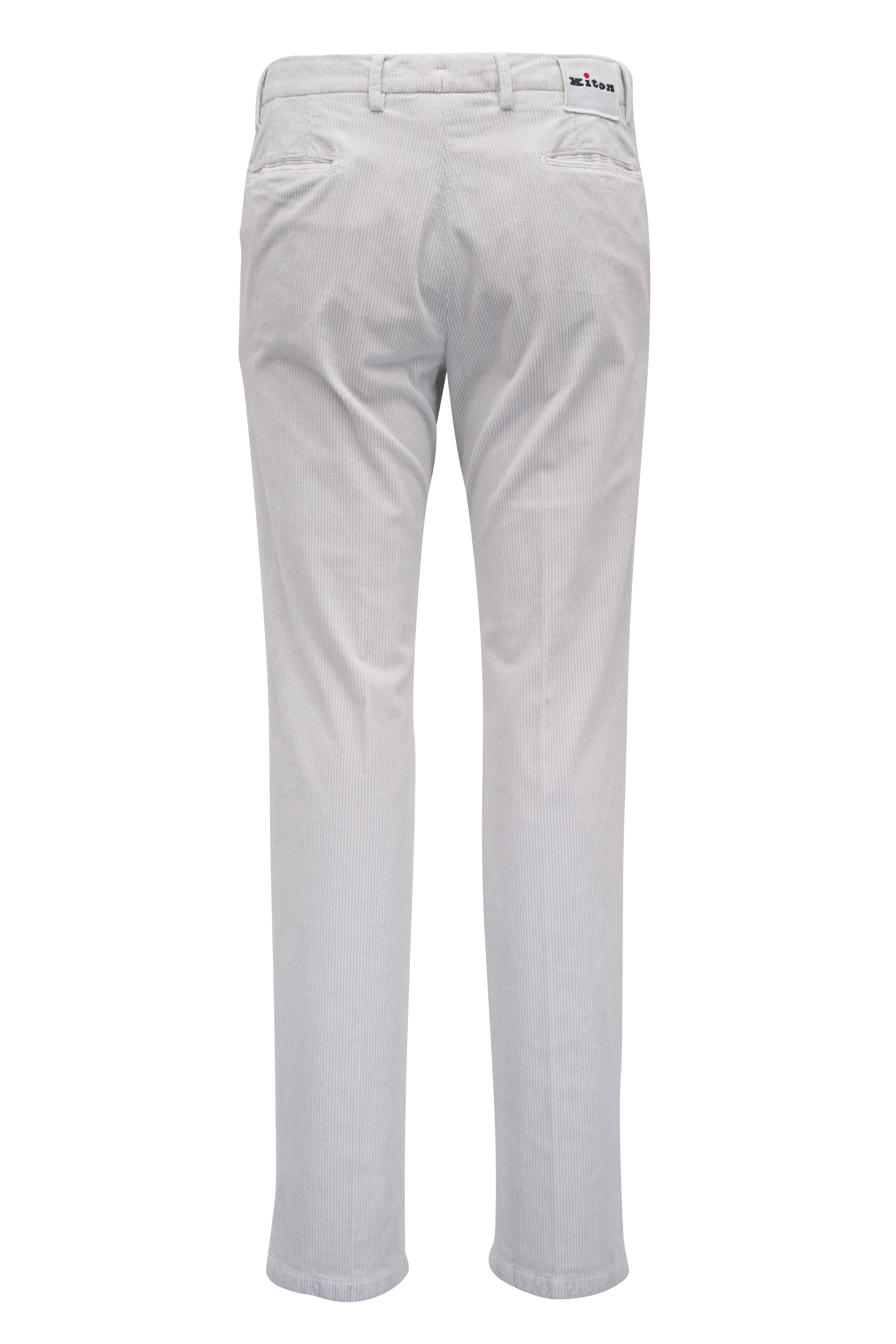 Zip fly; tab button closure. Banded waist; belt loops. Five pocket styling. Made in Italy. Inseam: 35". 91% cotton, 7% cashmere, 2% elastane. Dry clean.