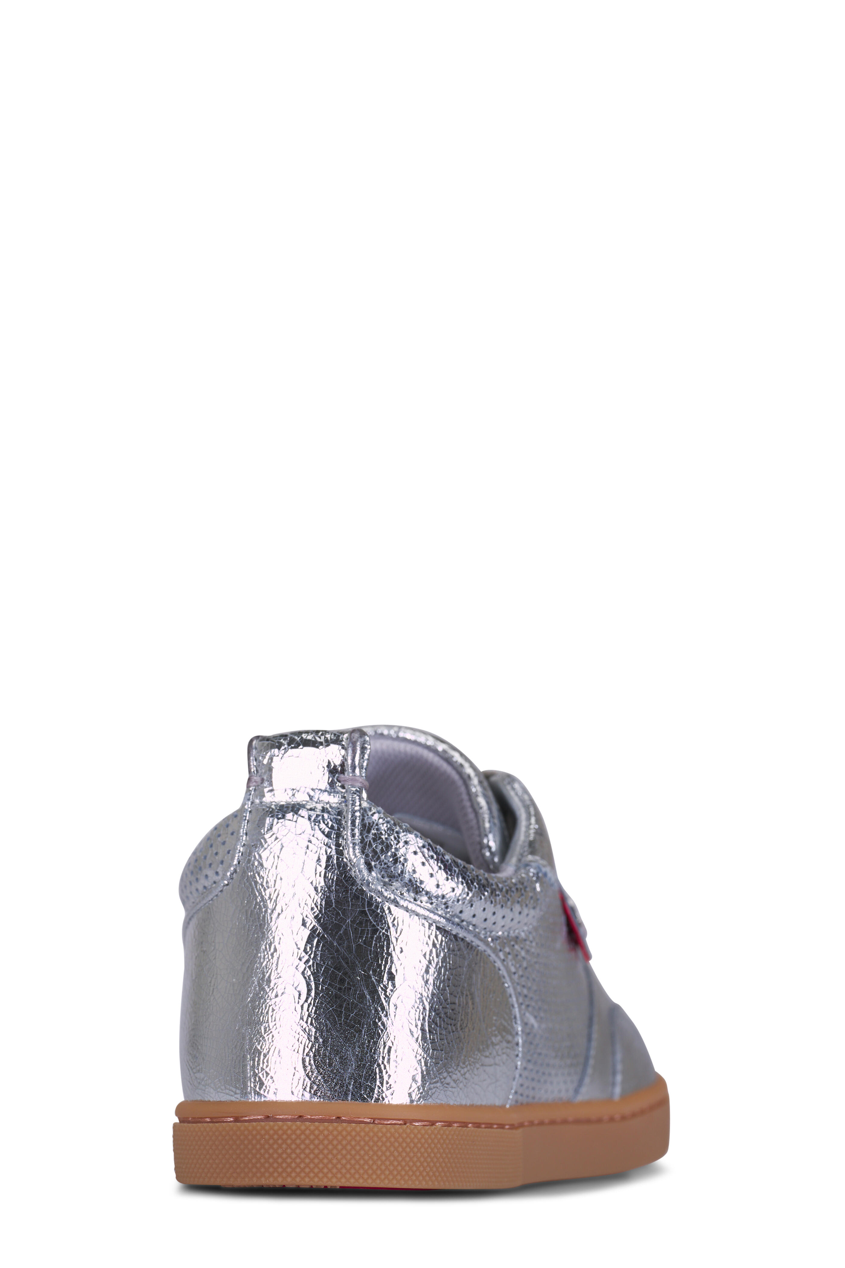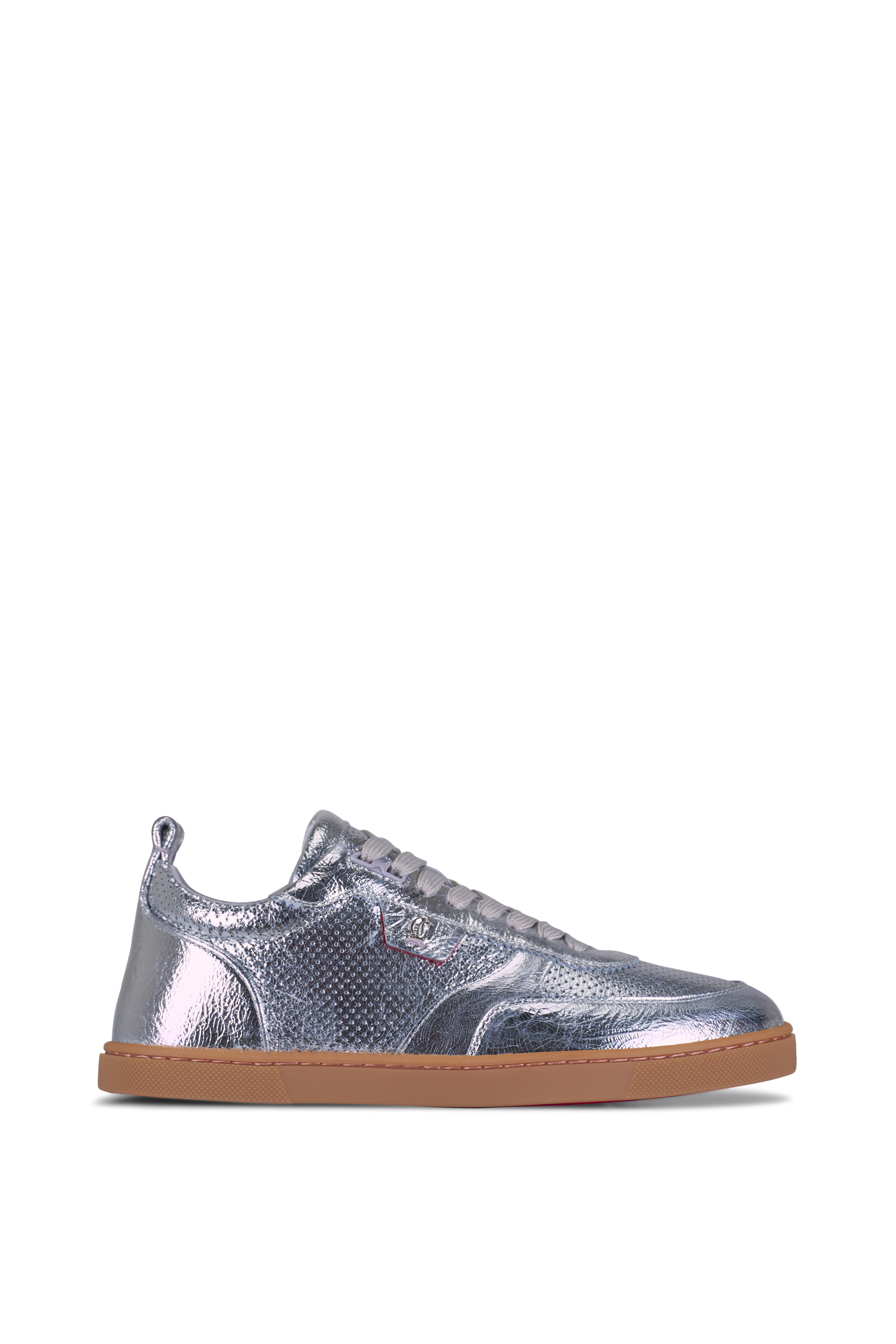 Metallic leather upper. Rounded toe. Lace-up closure. Leather lining and insole. Red rubber sole. Made in Italy.