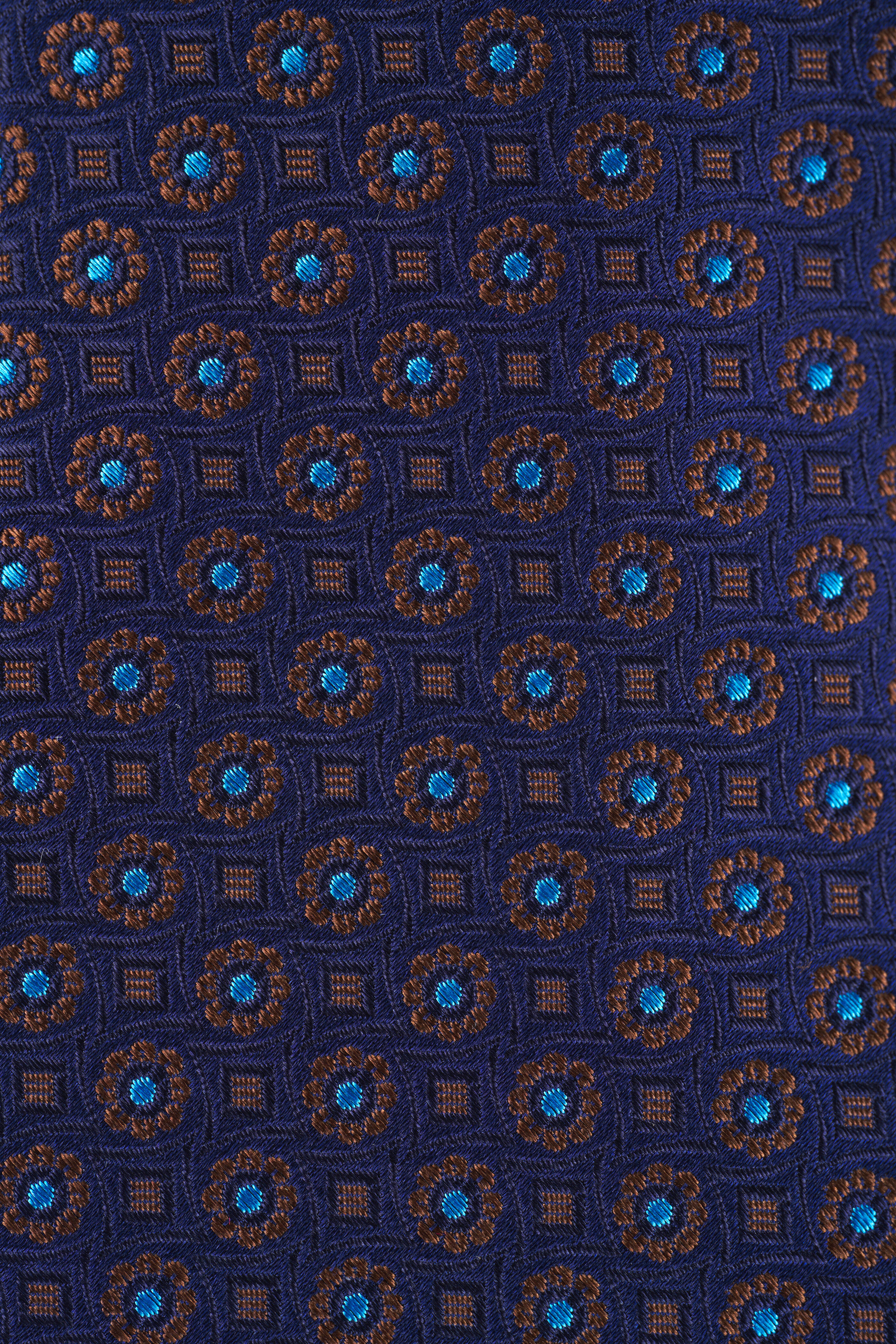 Navy & Brown Geometric Print Silk Necktie