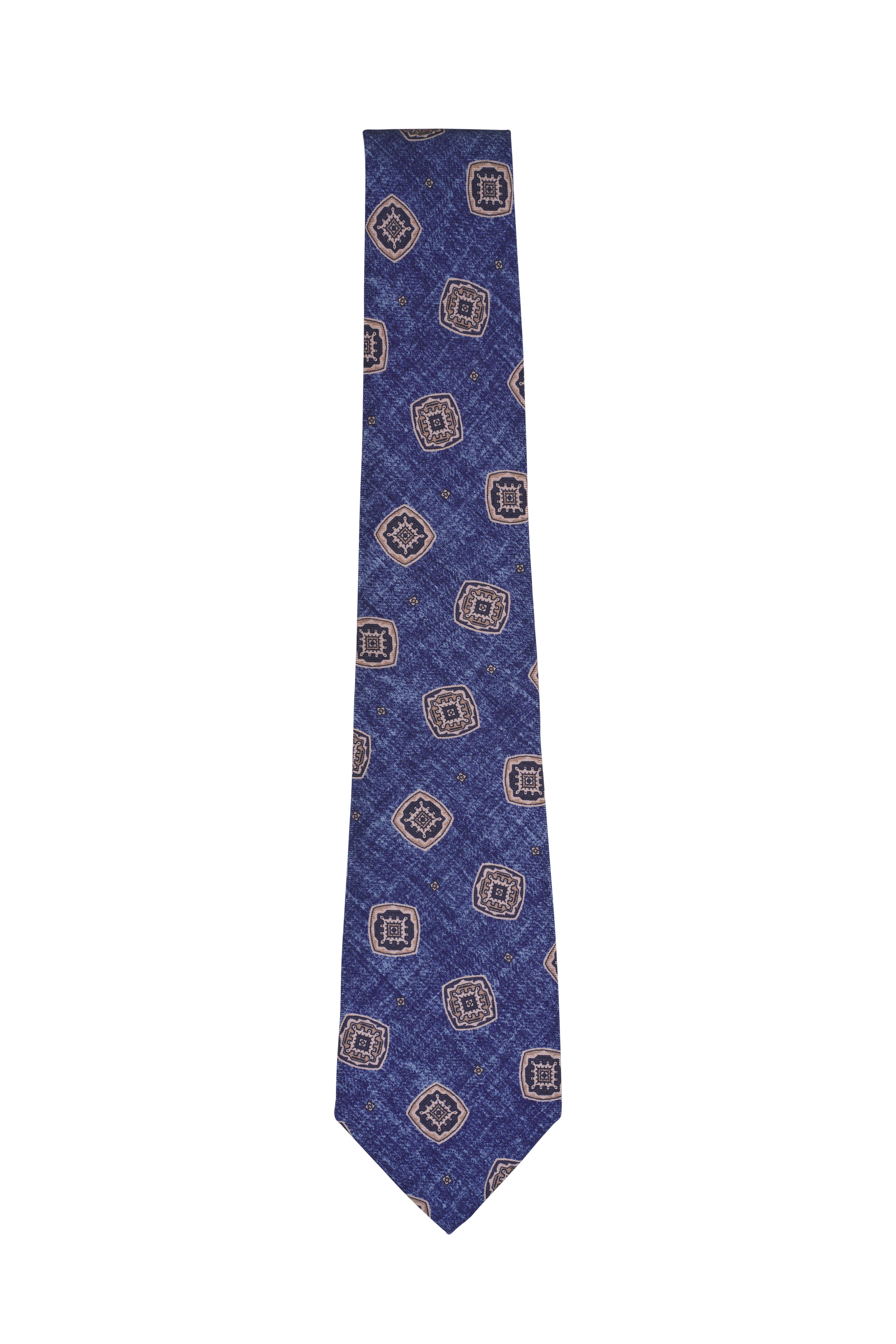 Medium Blue Large Geometric Print Silk Necktie