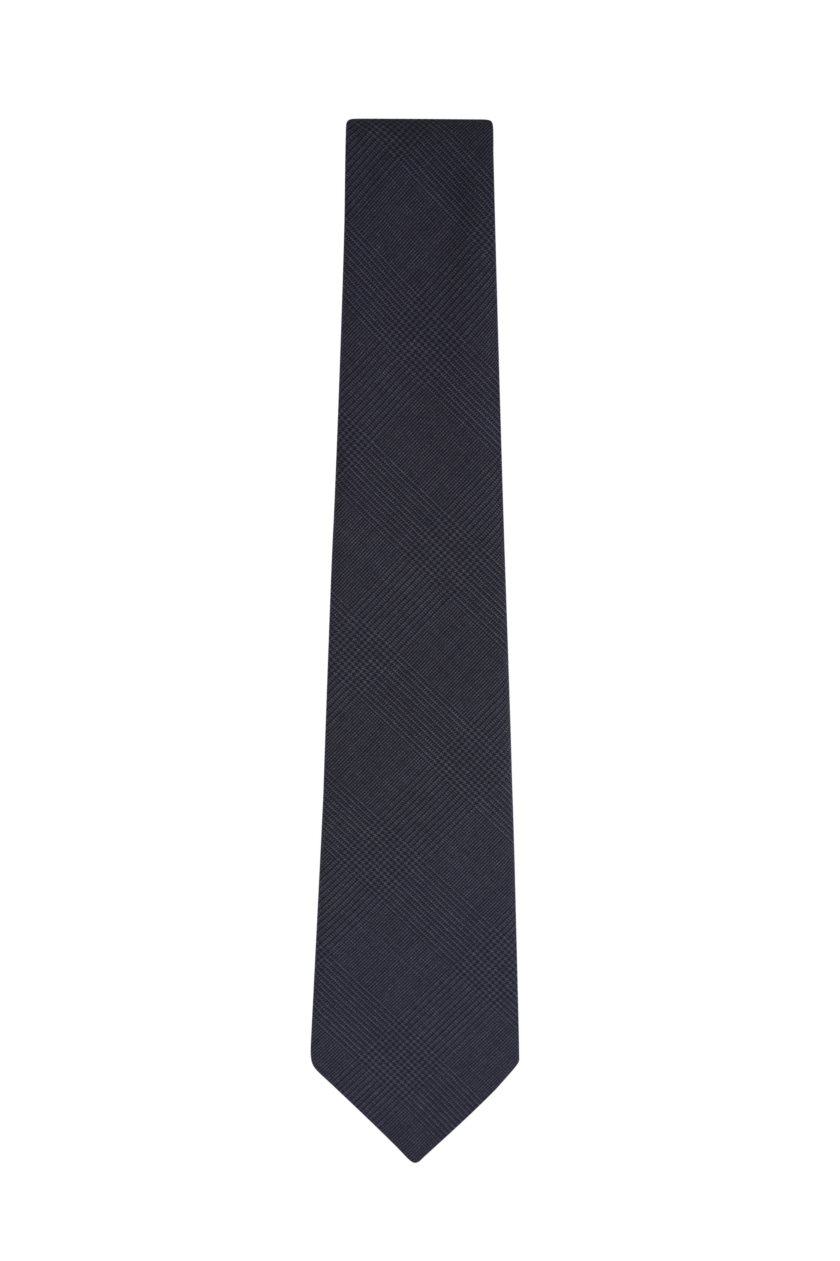 Charcoal Gray Plaid Wool Necktie