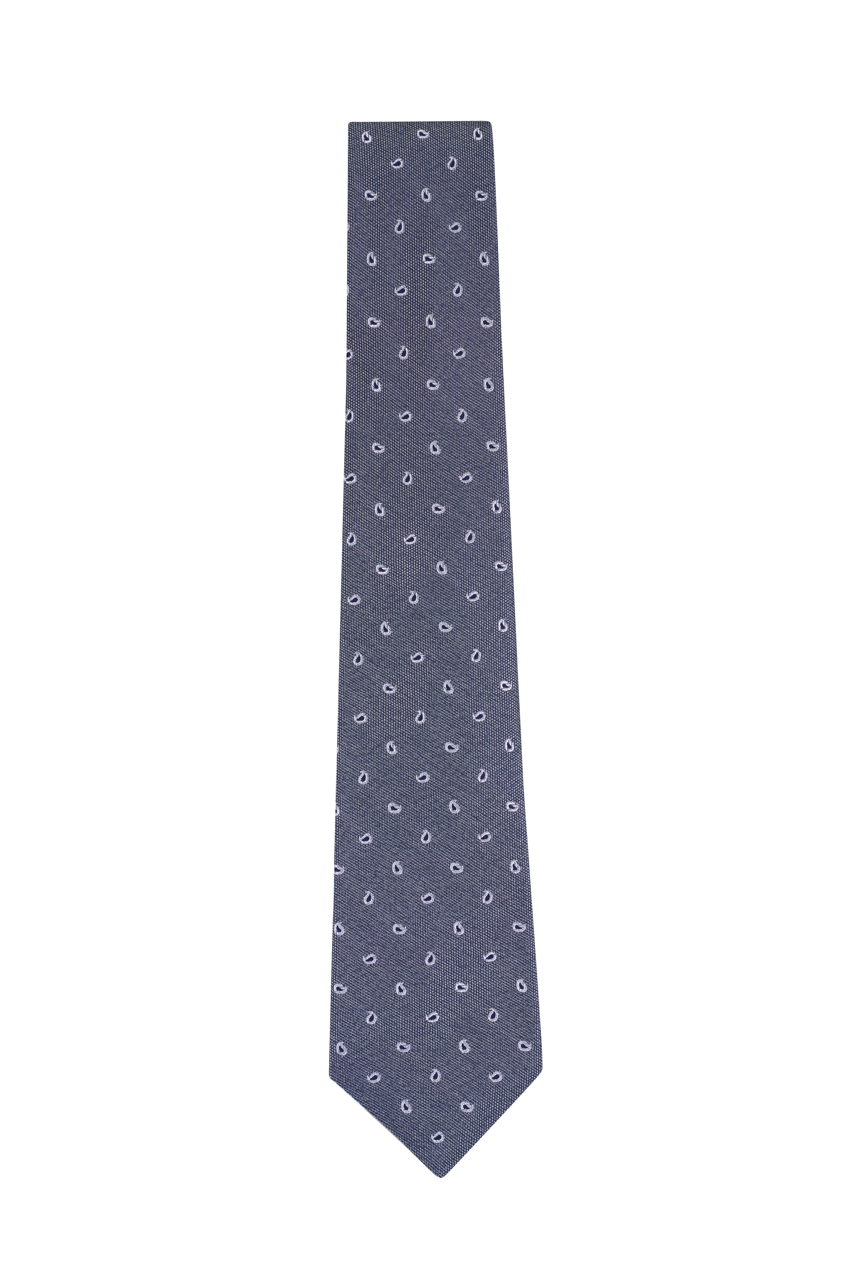 Light Gray Small Paisley Print Silk Necktie