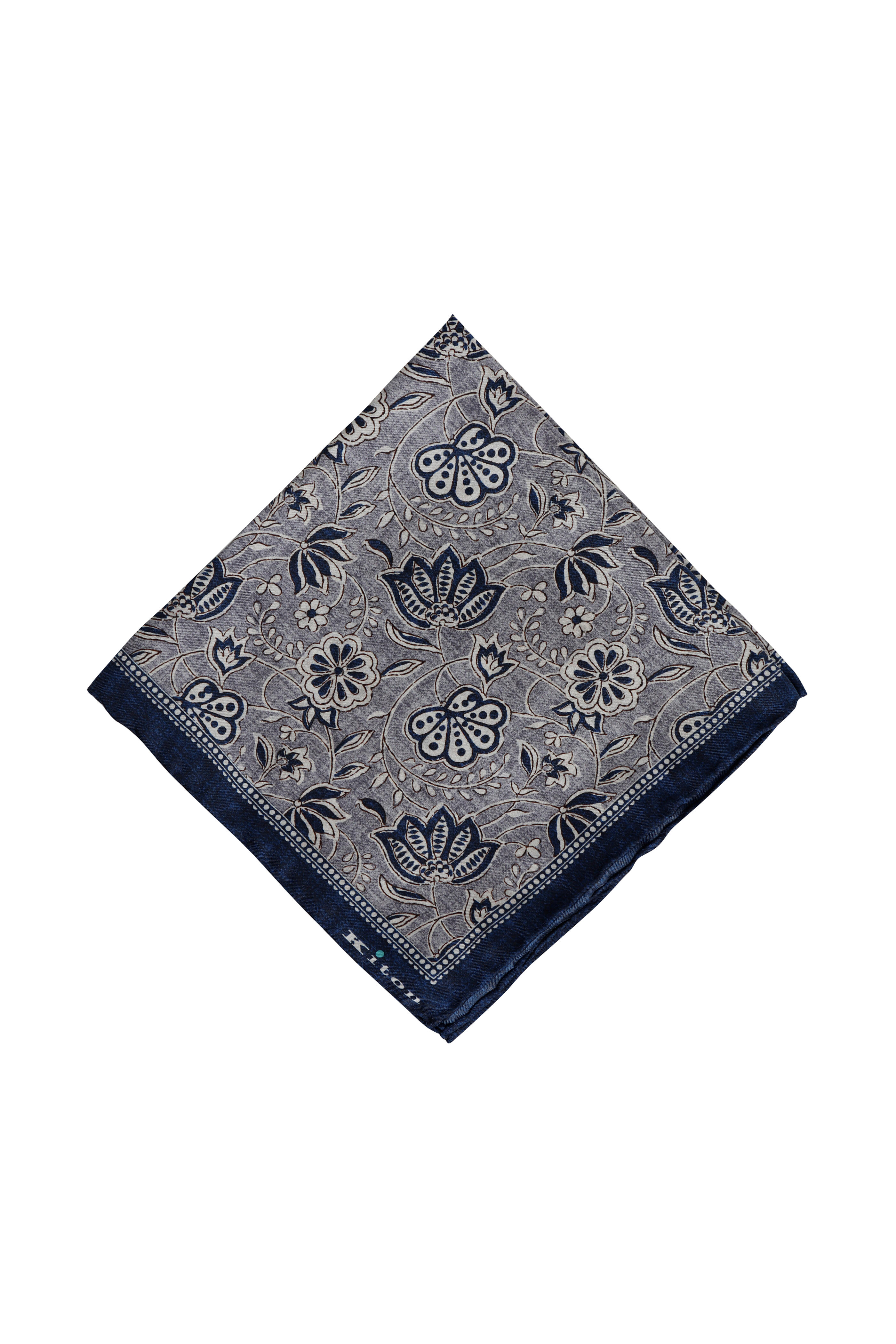 Gray & Navy Floral Print Silk Pocket Square