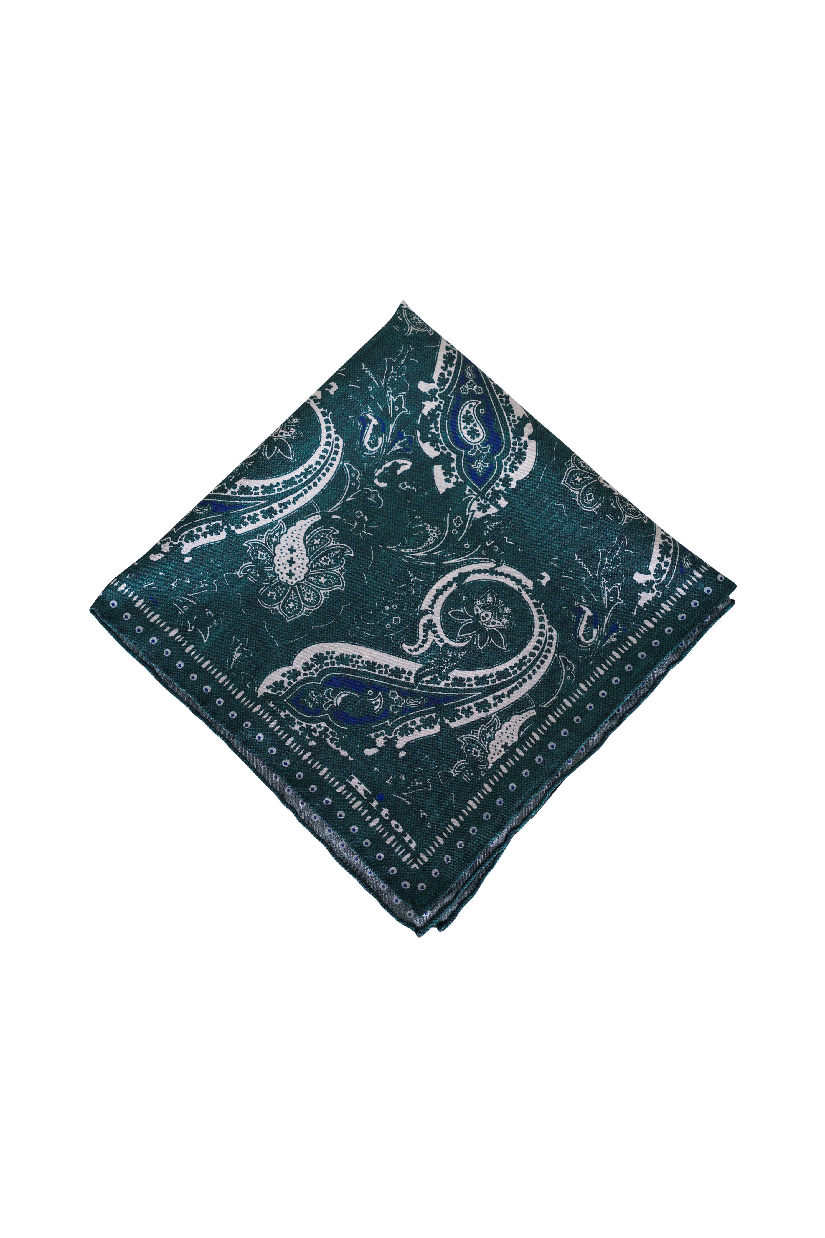 Green Floral Print Silk Pocket Square