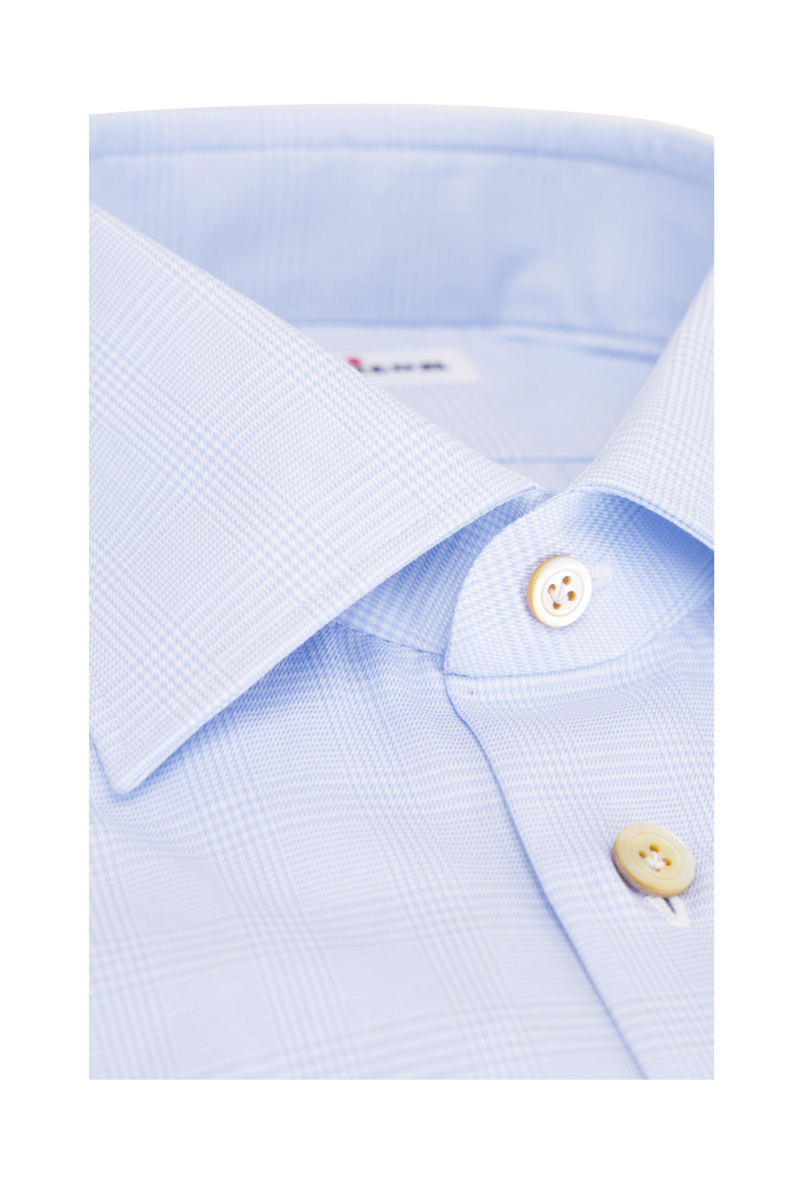 Spread collar. French front button placket. Single button barrel cuffs. Made in Italy. 100% cotton. Dry clean.