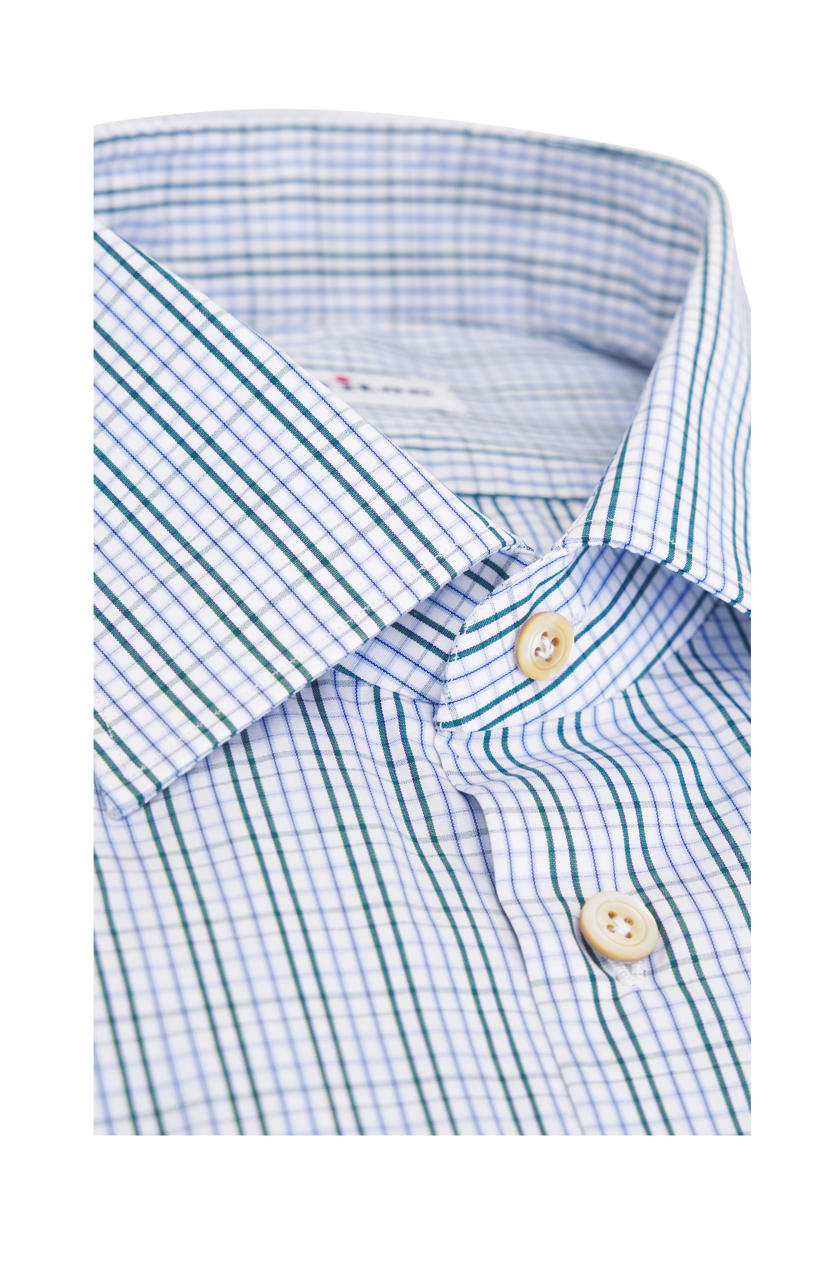 Spread collar. French front button placket. Single button mitered cuffs. Imported. 100% cotton. Machine wash.