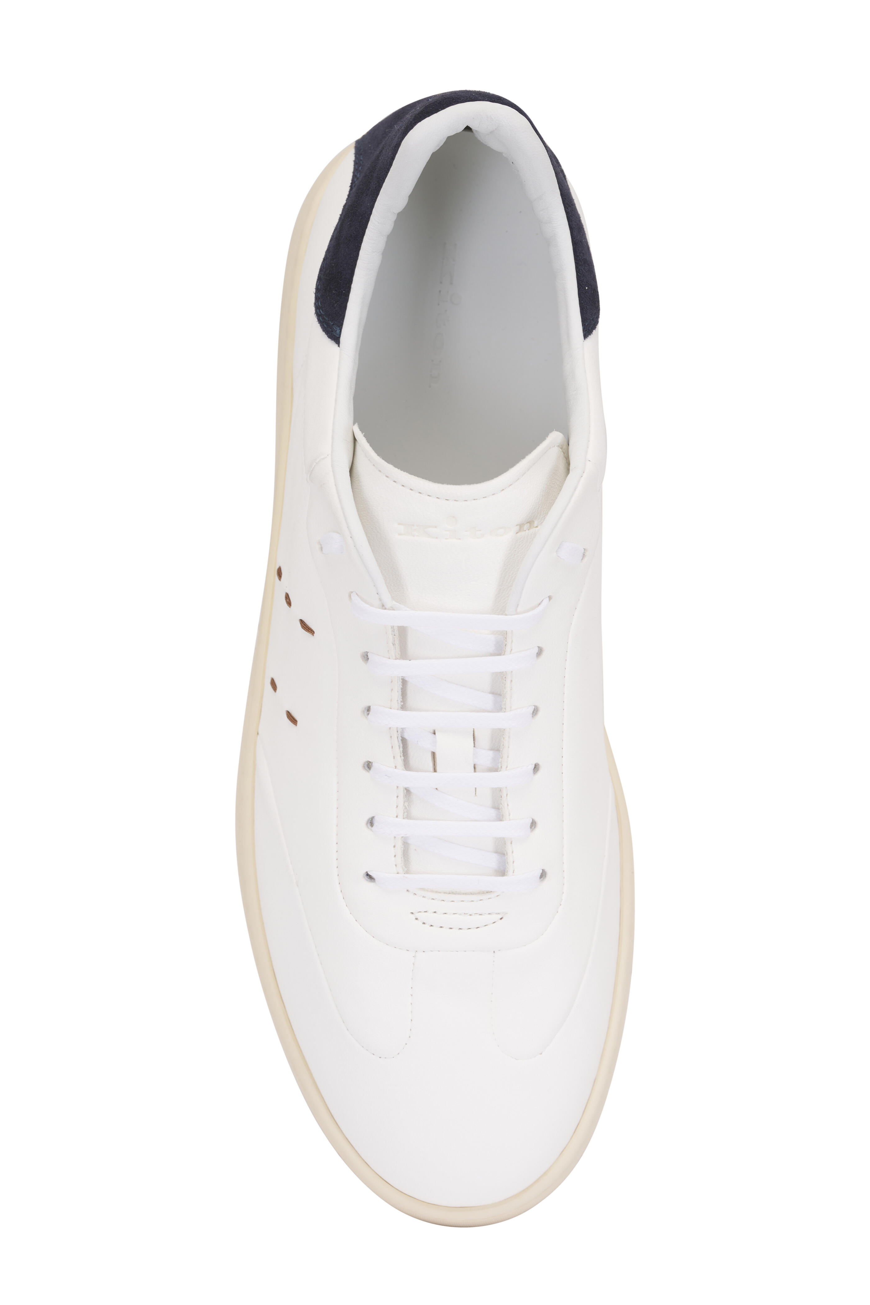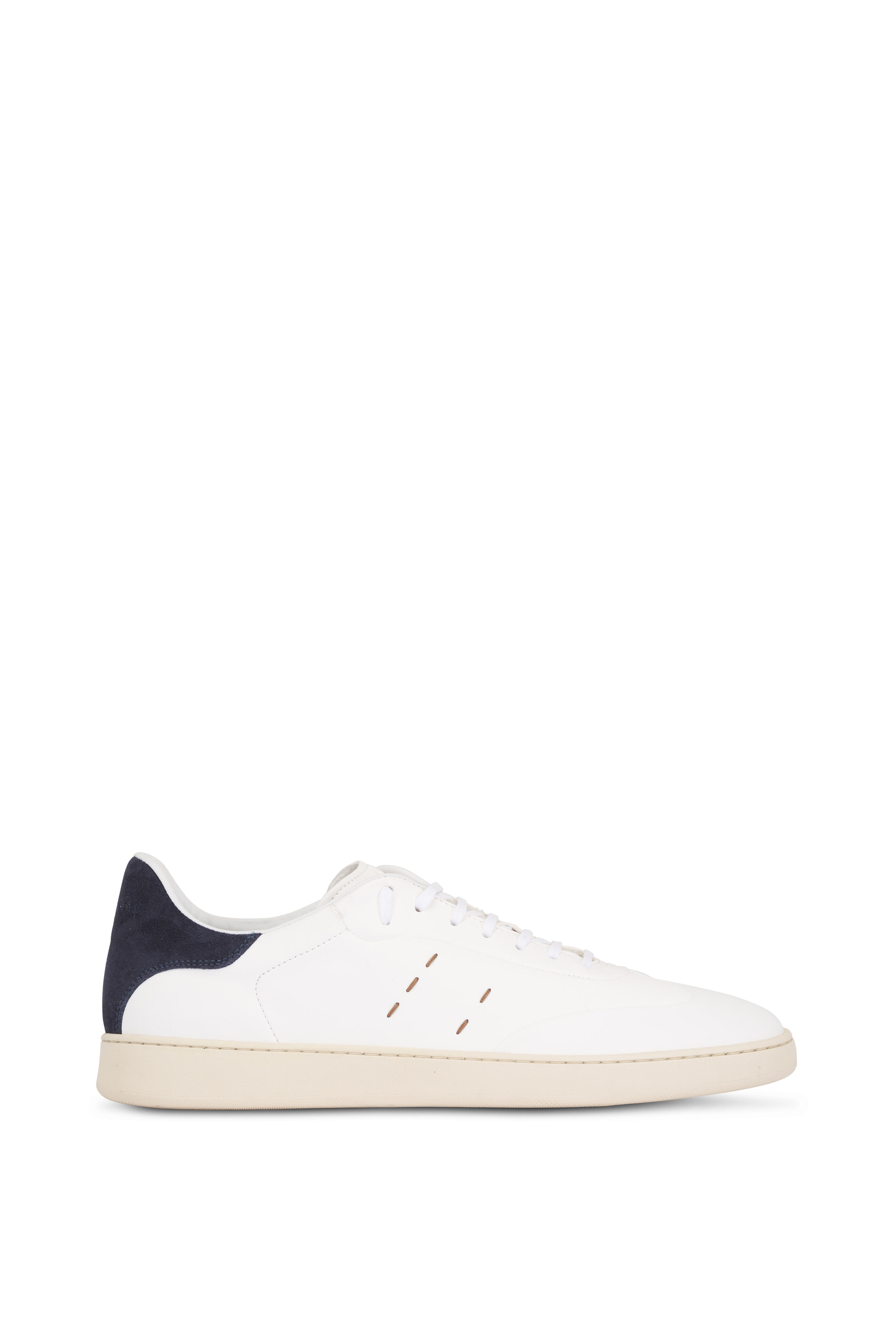 Smooth leather upper. Round toe. Lace up closure. Navy suede heel. Leather lining and insole. Rubber sole. Made in Italy.