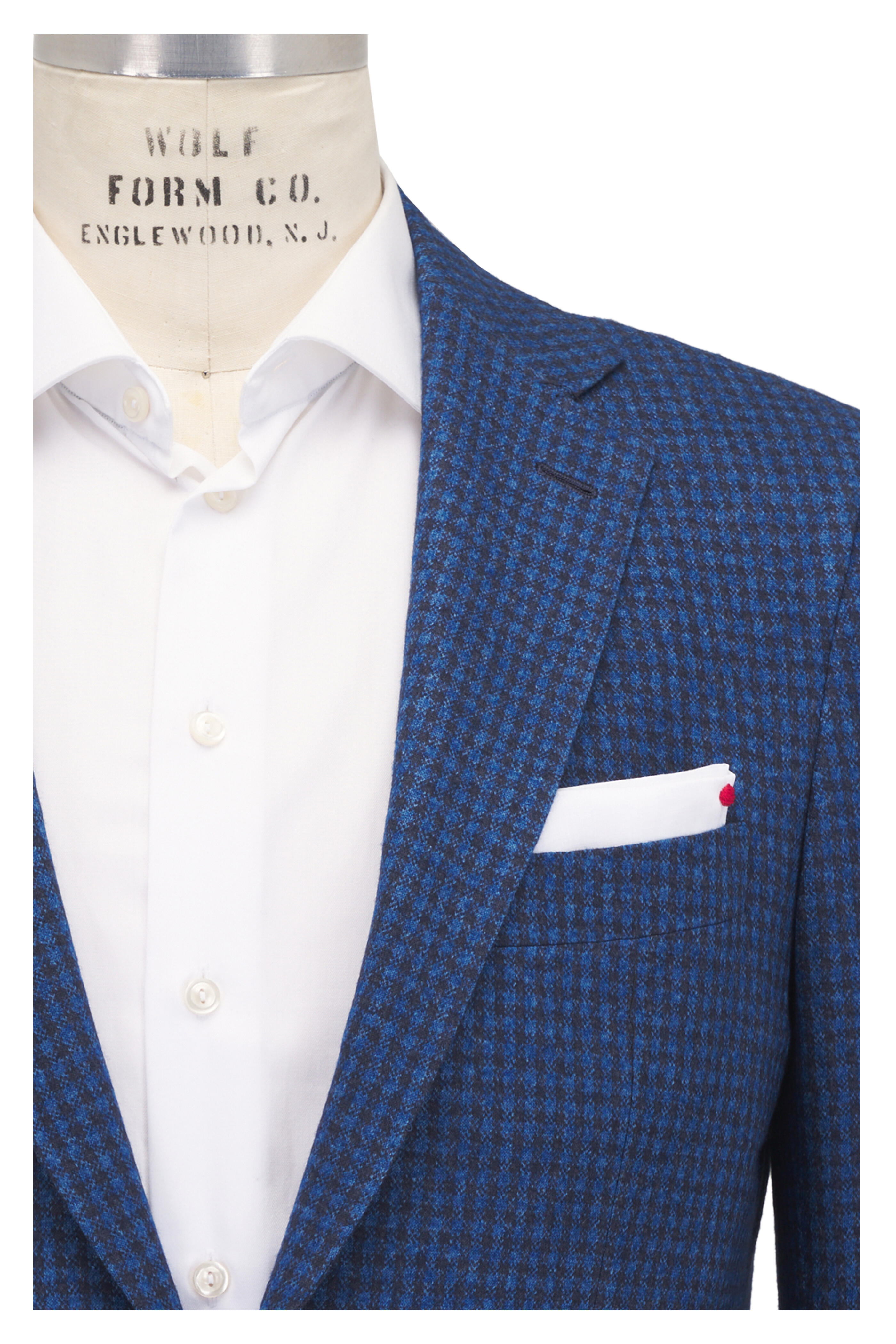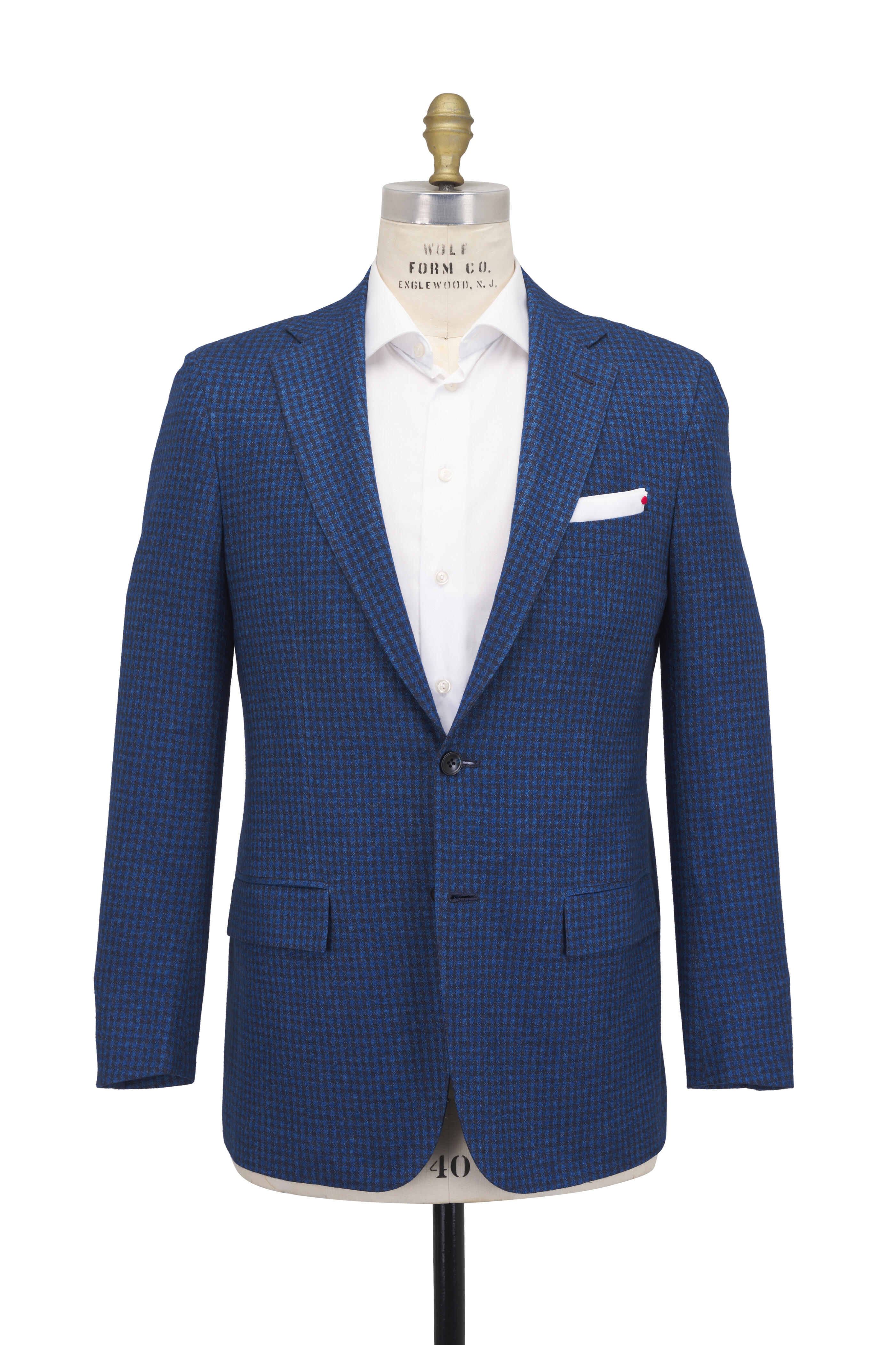Notched lapel. Double button closure. Chest welt pocket; lower waist flap pockets. No buttons attached. Double vent. Made in Italy. 52% silk, 48% cashmere; fully lined. Dry clean.