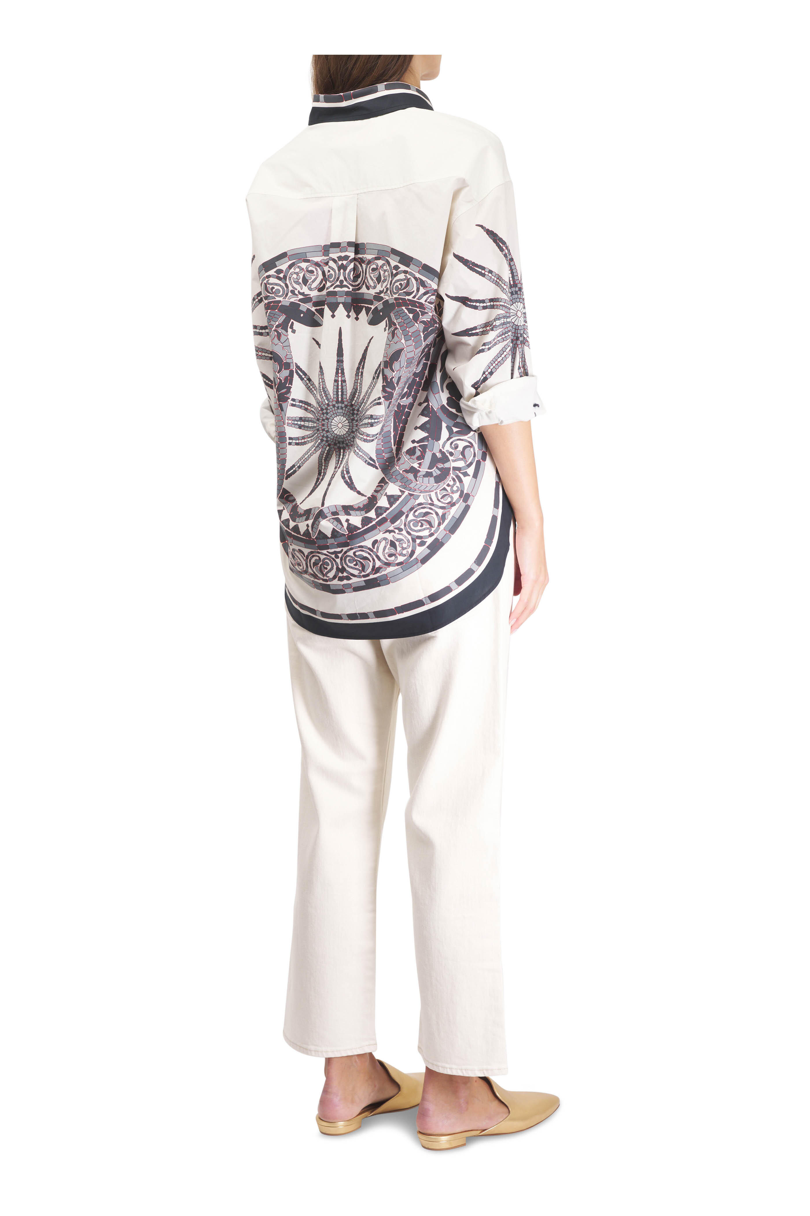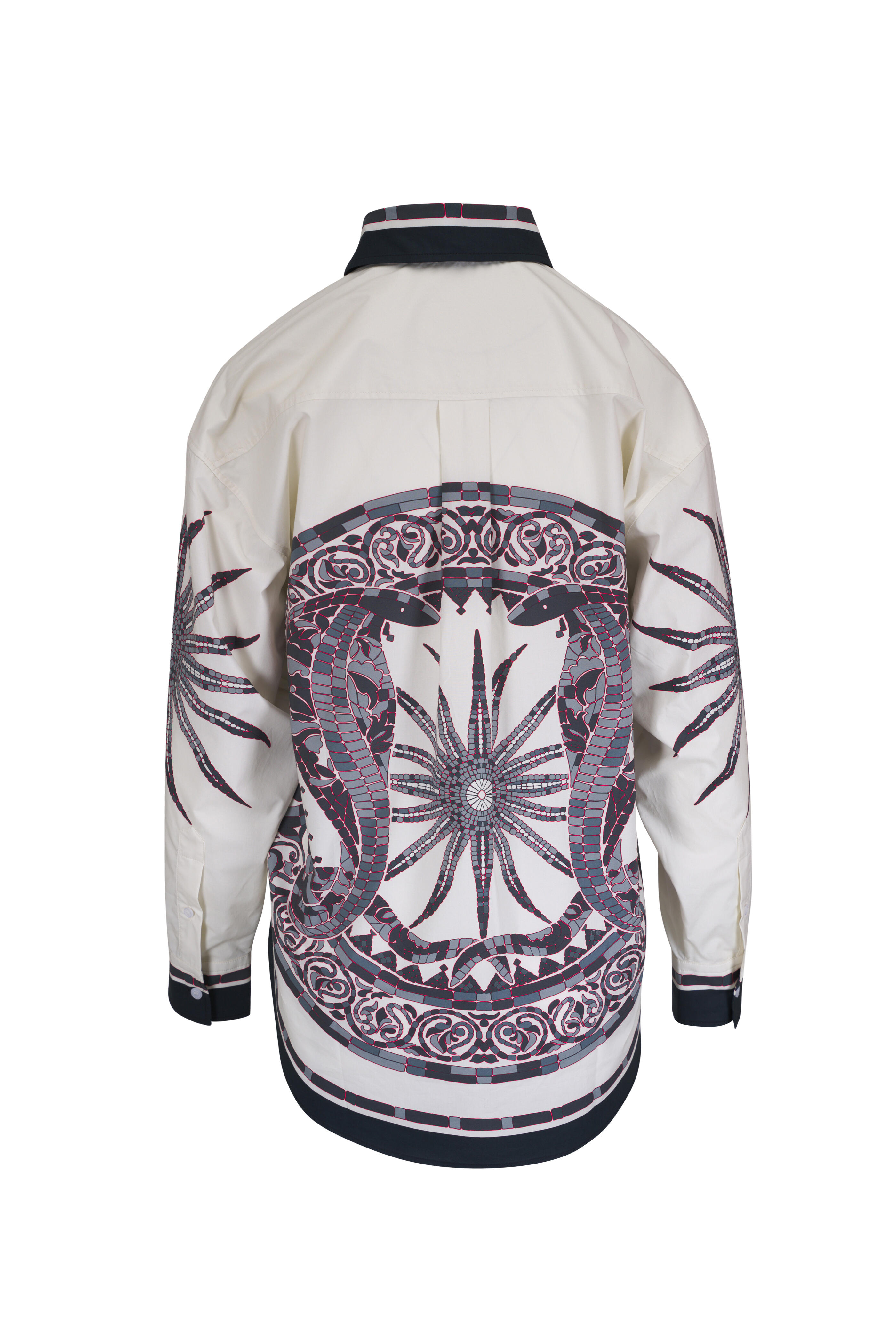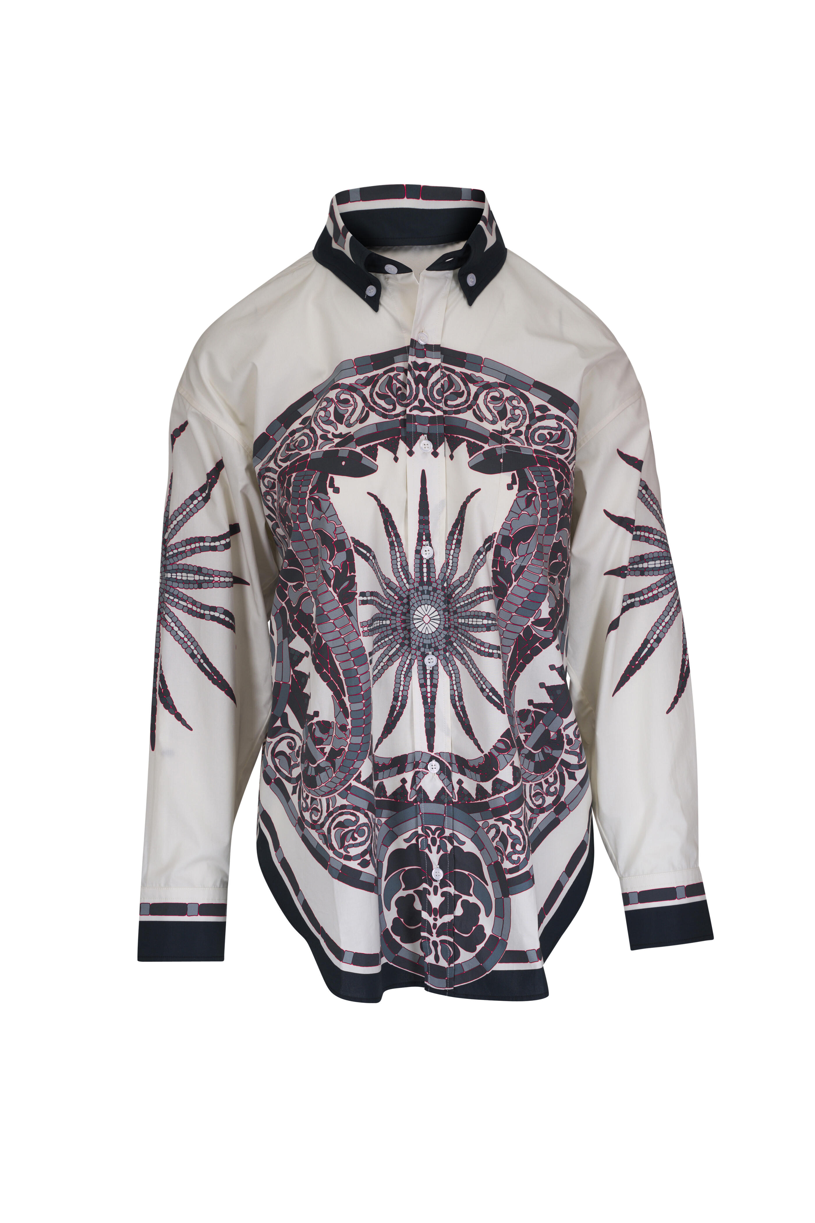 Pointed button collar. Front button placket. Single button squared cuffs. Chest patch pocket. Made in Italy. Color: Cobra Placee. 100% cotton. Machine wash.