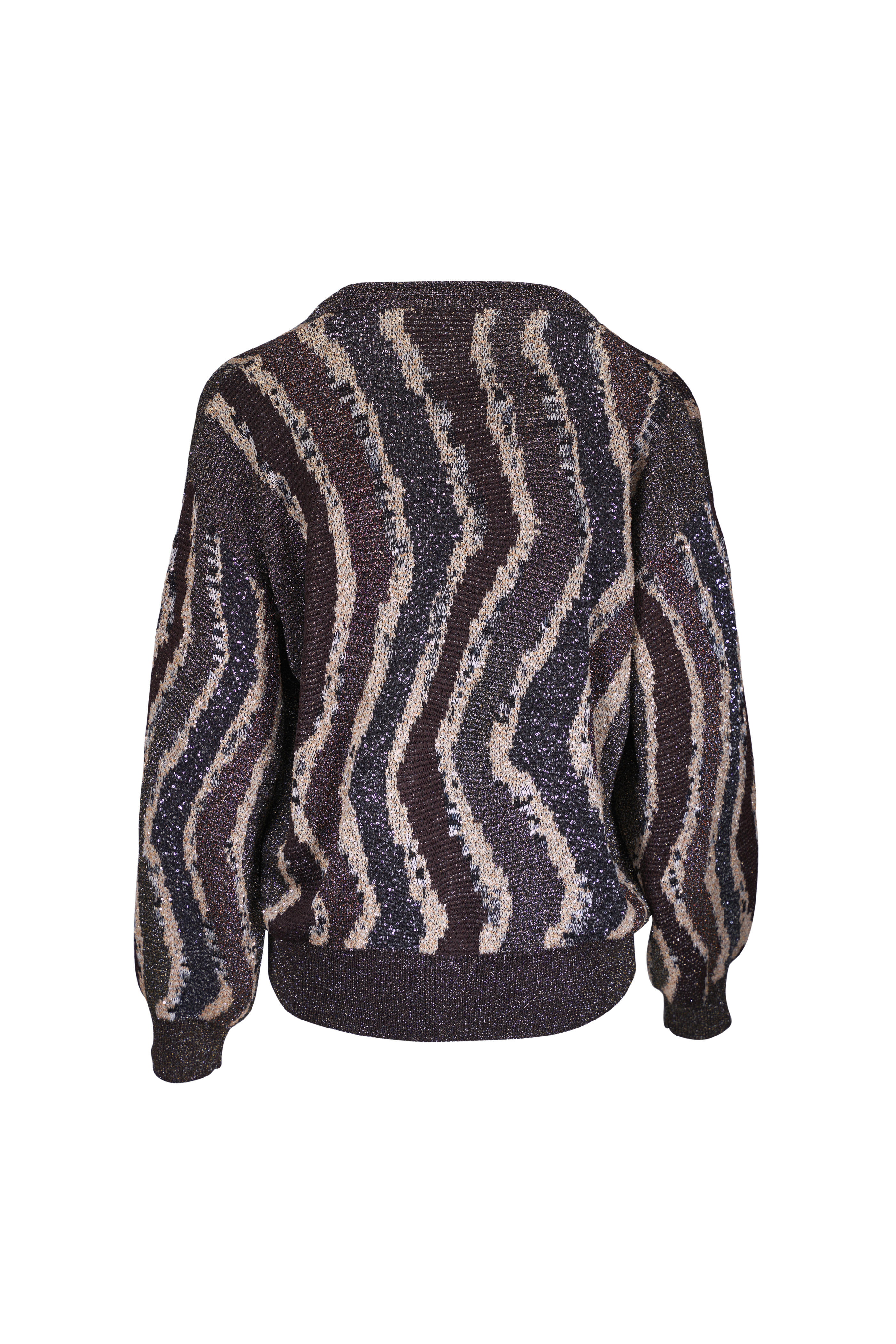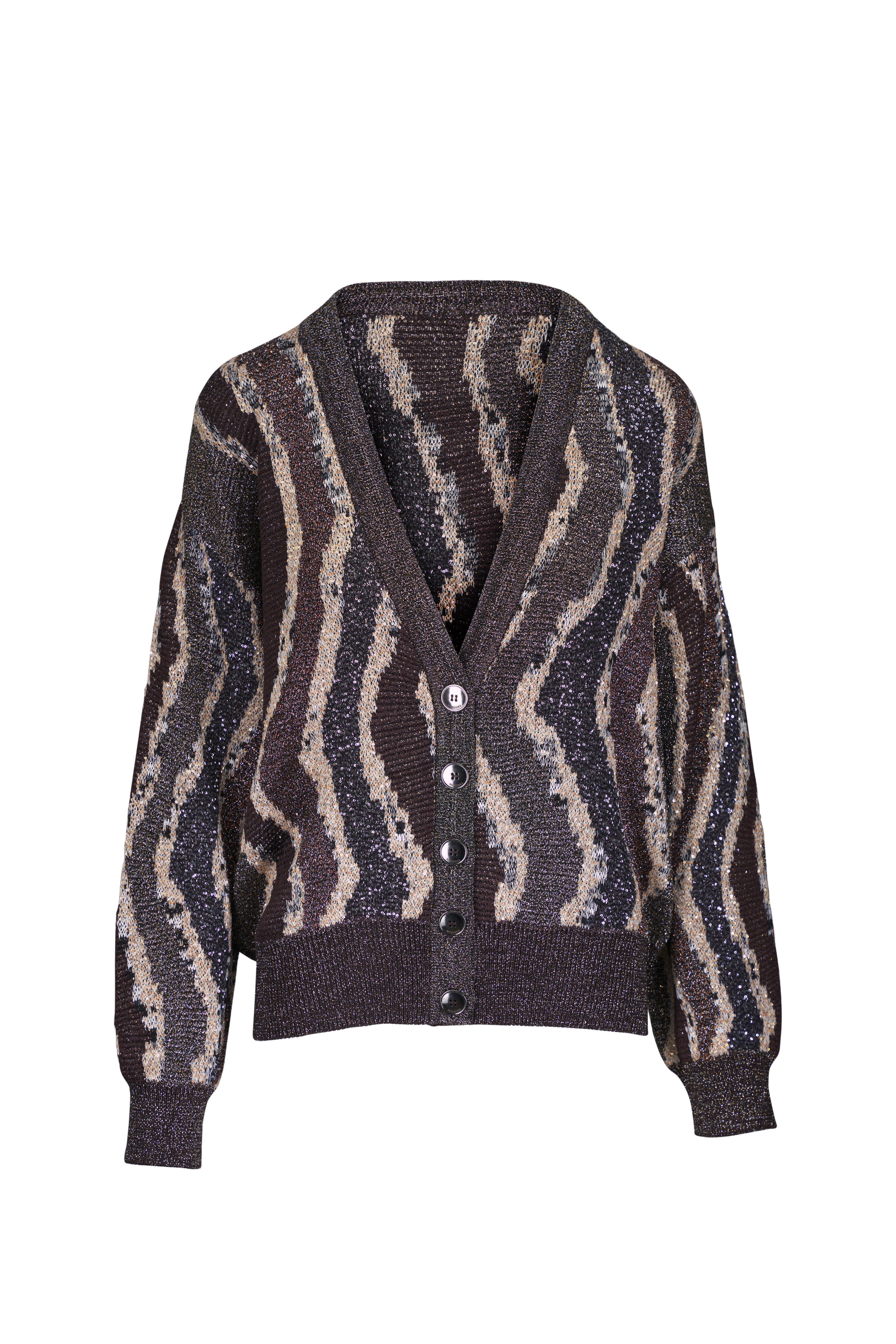 V-neckline. Front button placket. Sequin detailing throughout. Made in Italy. Approximately 26" shoulder to hem (measurements taken from size 4). 49% viscose, 44% polyamide, 7% metallized fiber. Dry clean.