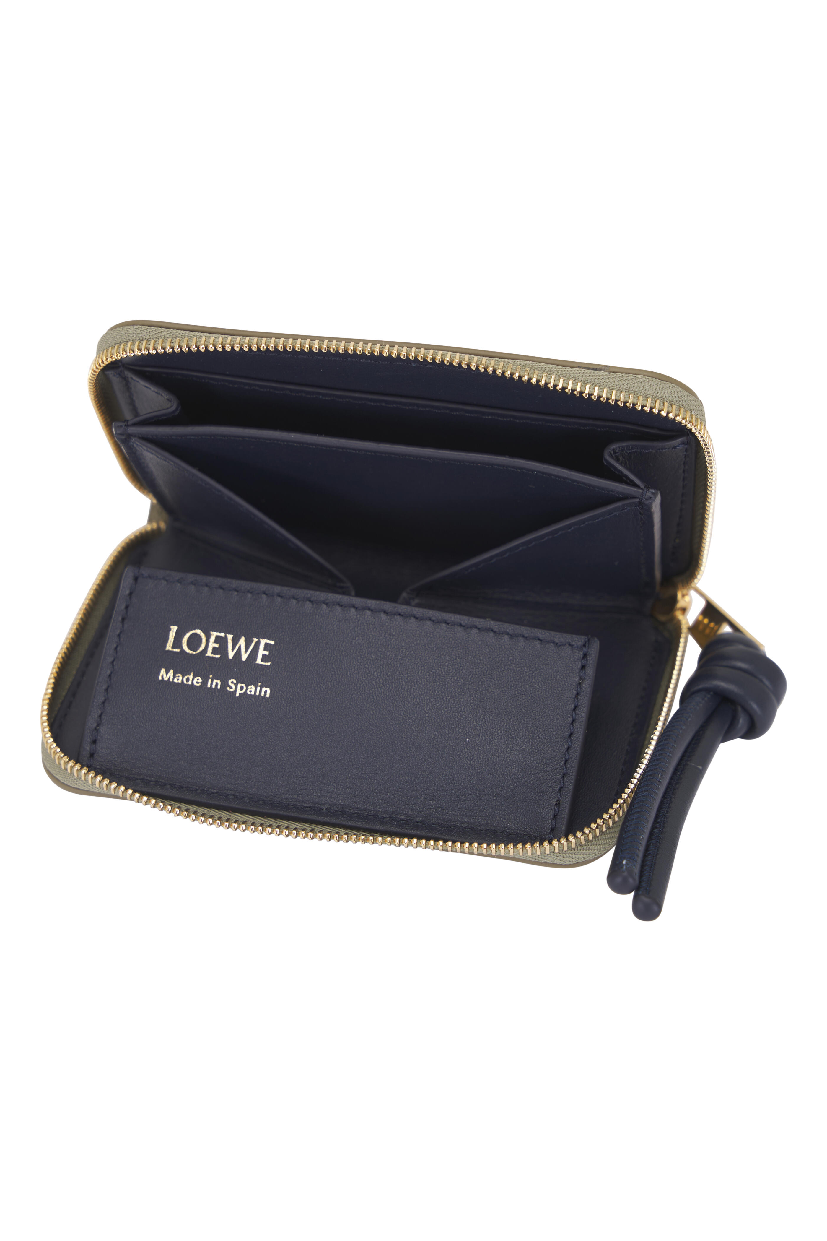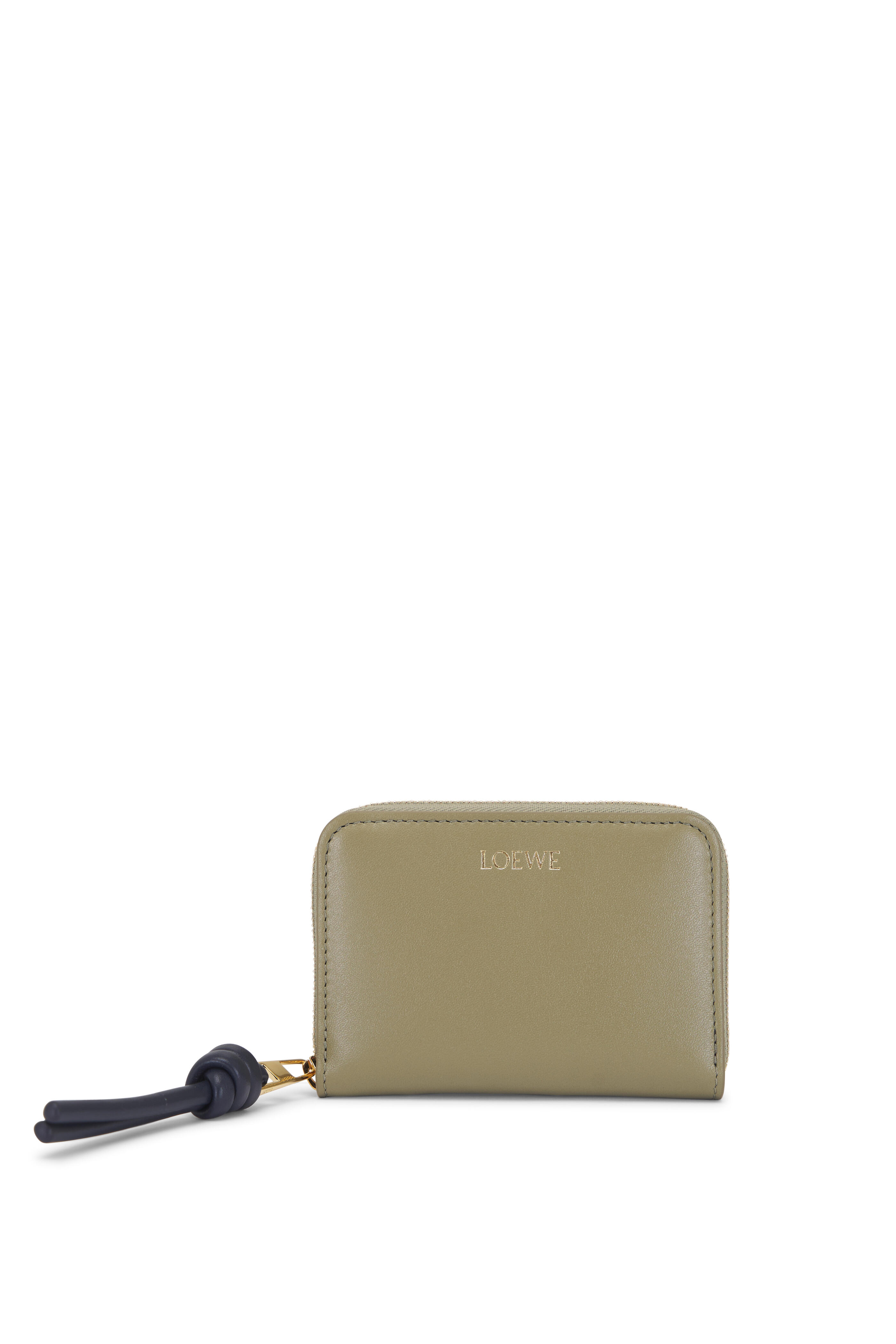 Calfskin leather. Zip closure. One external card slot; three internal compartments. Gold embossed Loewe. Made in Spain. Height (inch) : 2.9. Width (inch) : 4. Depth (inch) : 0.7.