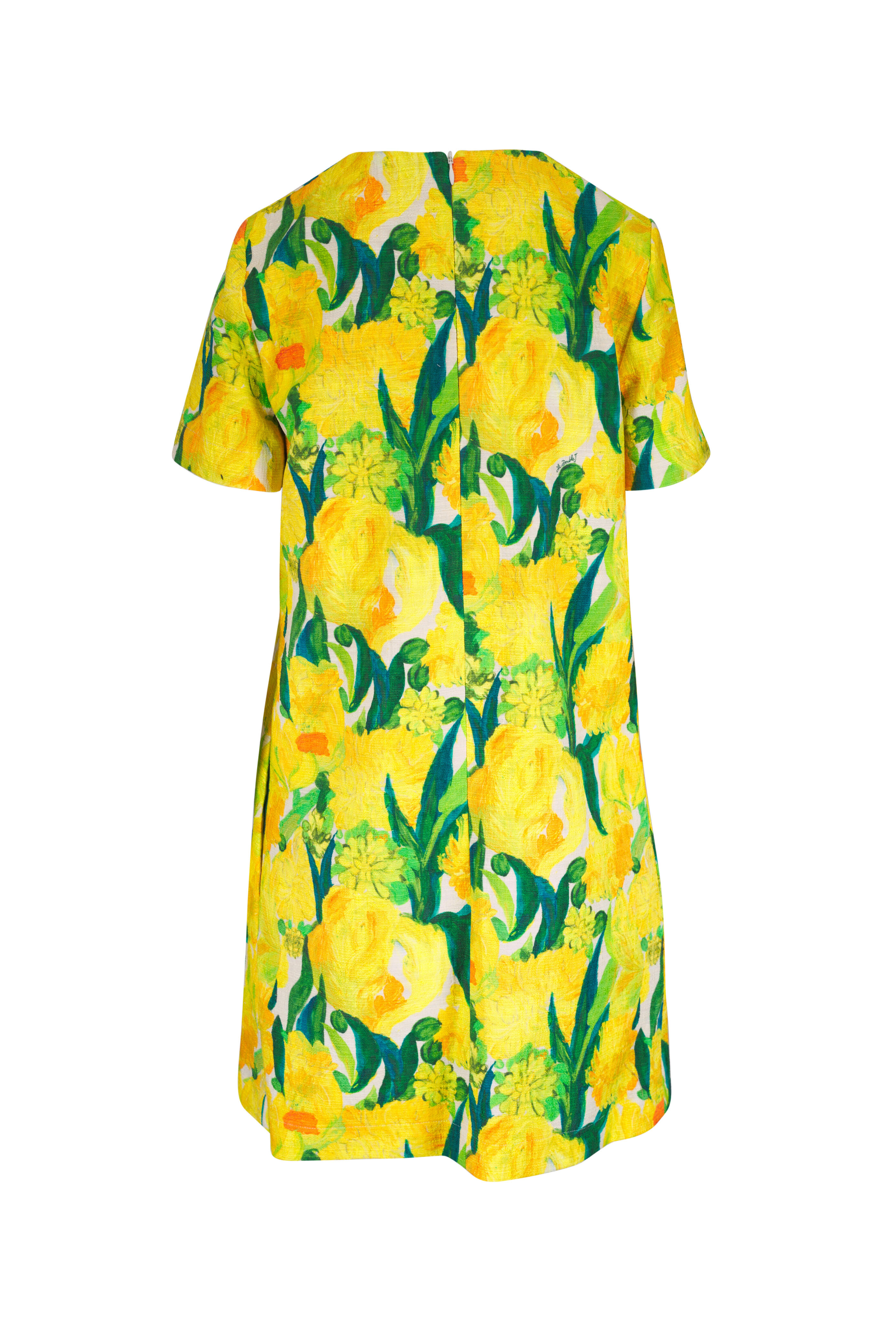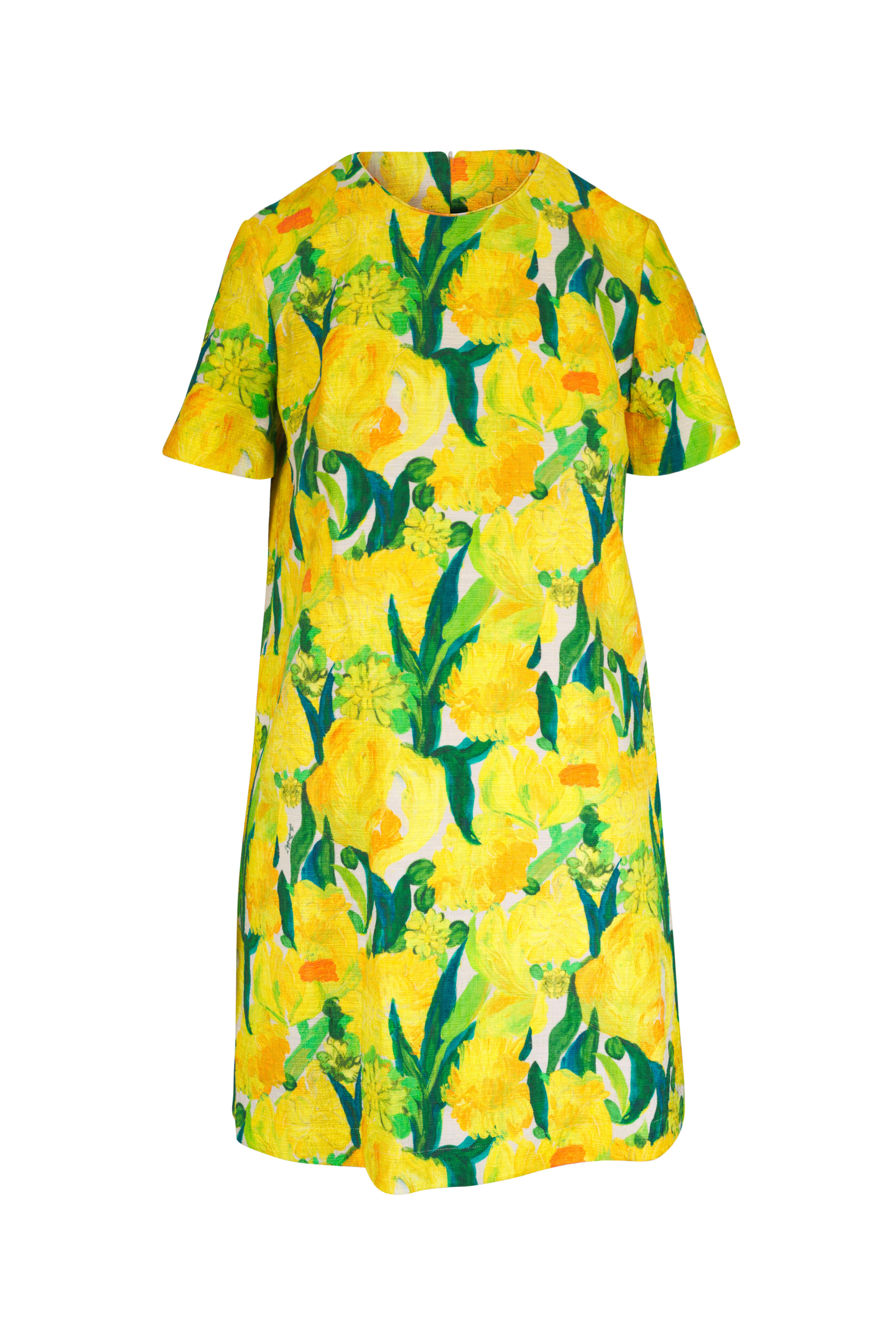 Jewel neckline. Concealed back zip. On-seam pockets. Made in Italy. 31” shoulder to hem. 98% cotton, 2% elastane; fully lined. Dry clean.