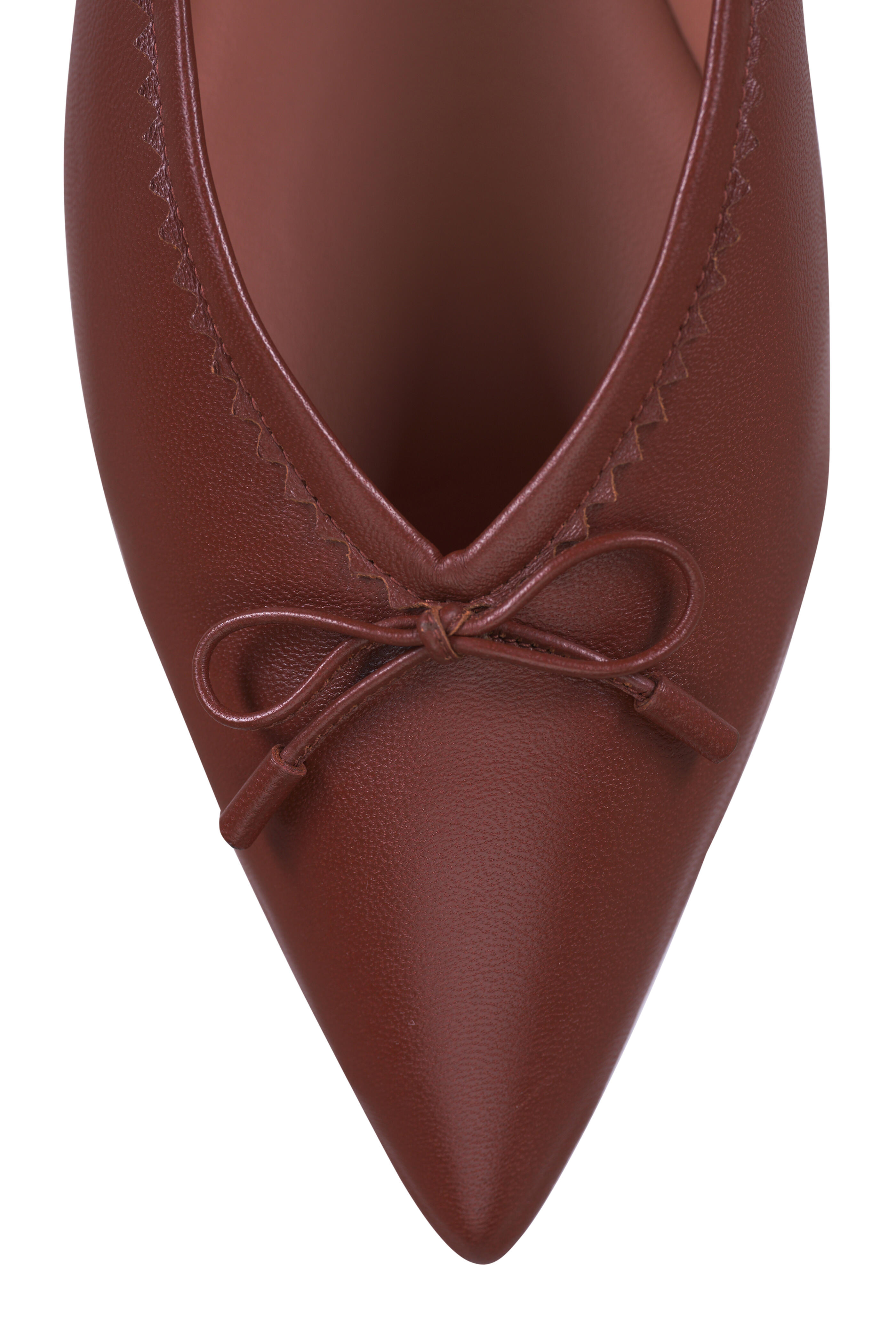 Leather upper. Pointed toe. Bow embellished on toe vamp. Slip-on style. Leather lining and sole. Leather sole. Made in Italy.