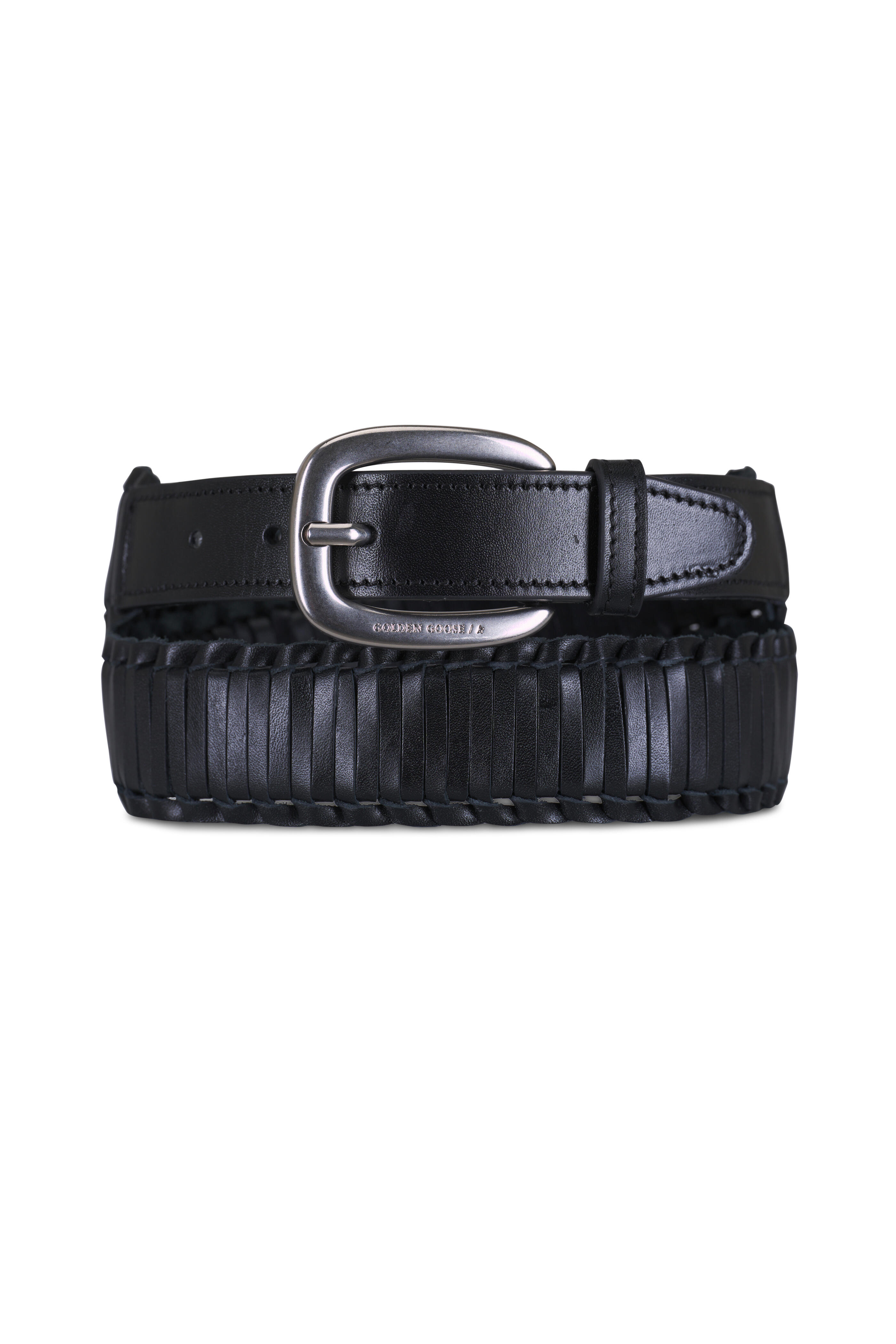 Houston Black Woven Washed Leather Belt