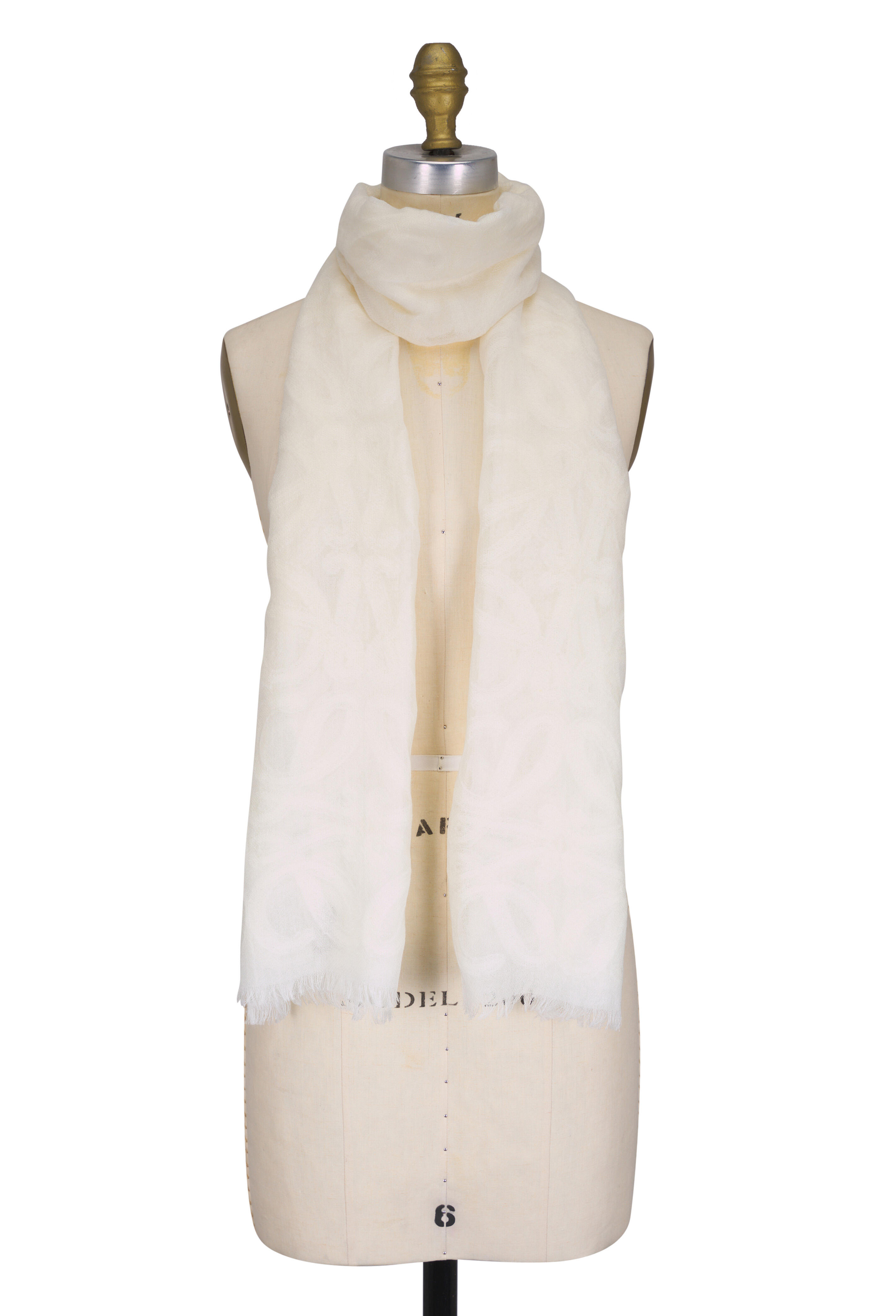 White Wool & Silk Anagram Pattern Scarf