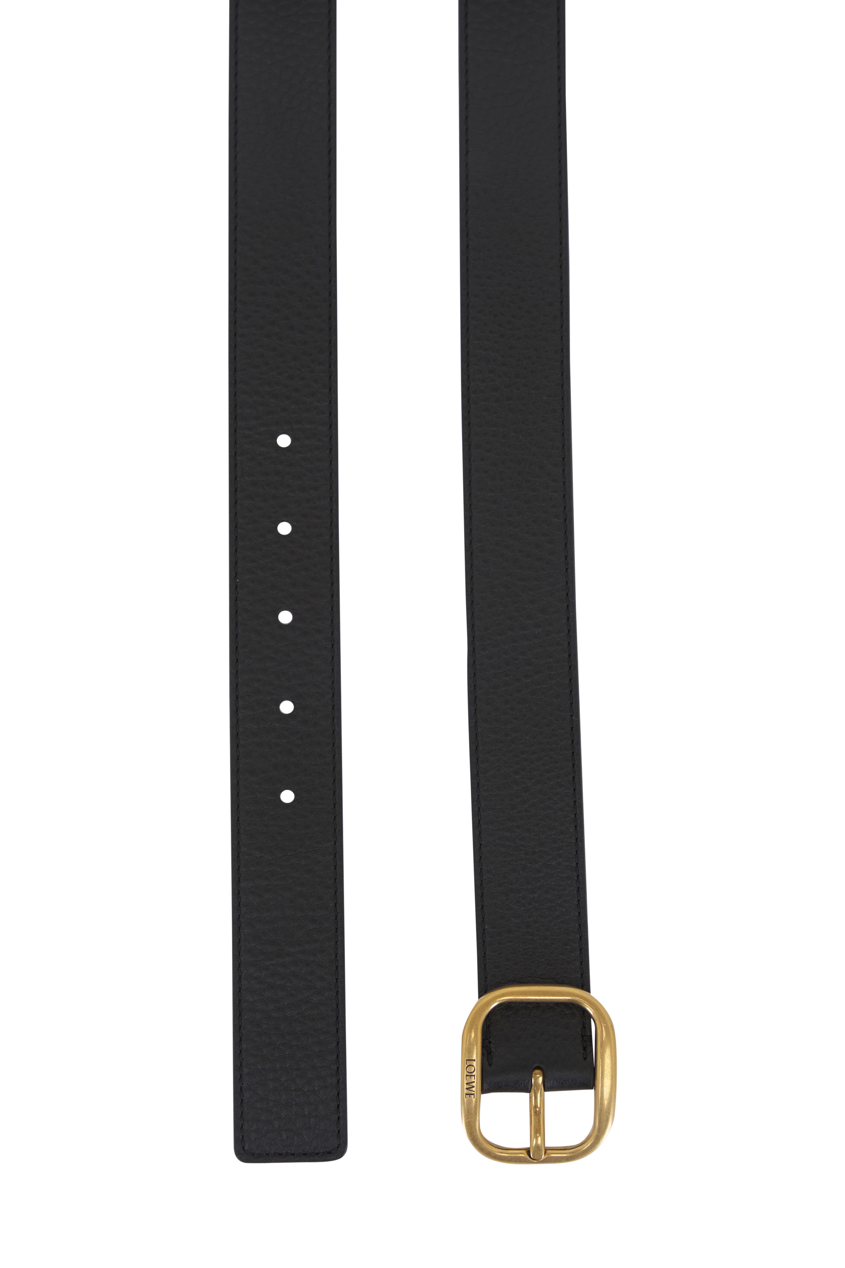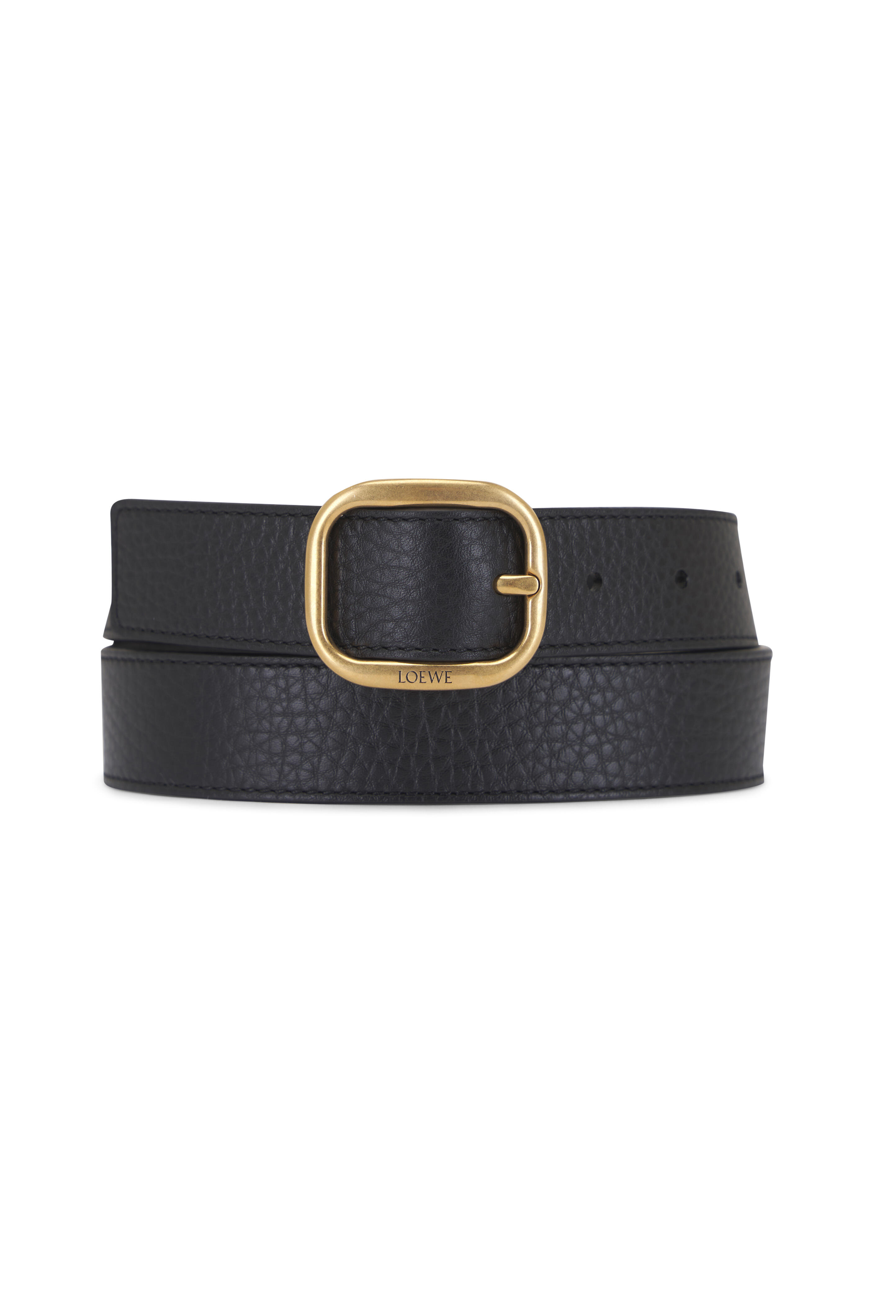 Grained calfskin. Rounded square buckle. Rounded square tip. Gold tone hardware. Loewe engraved at buckle. Made in Spain. 3cm wide.