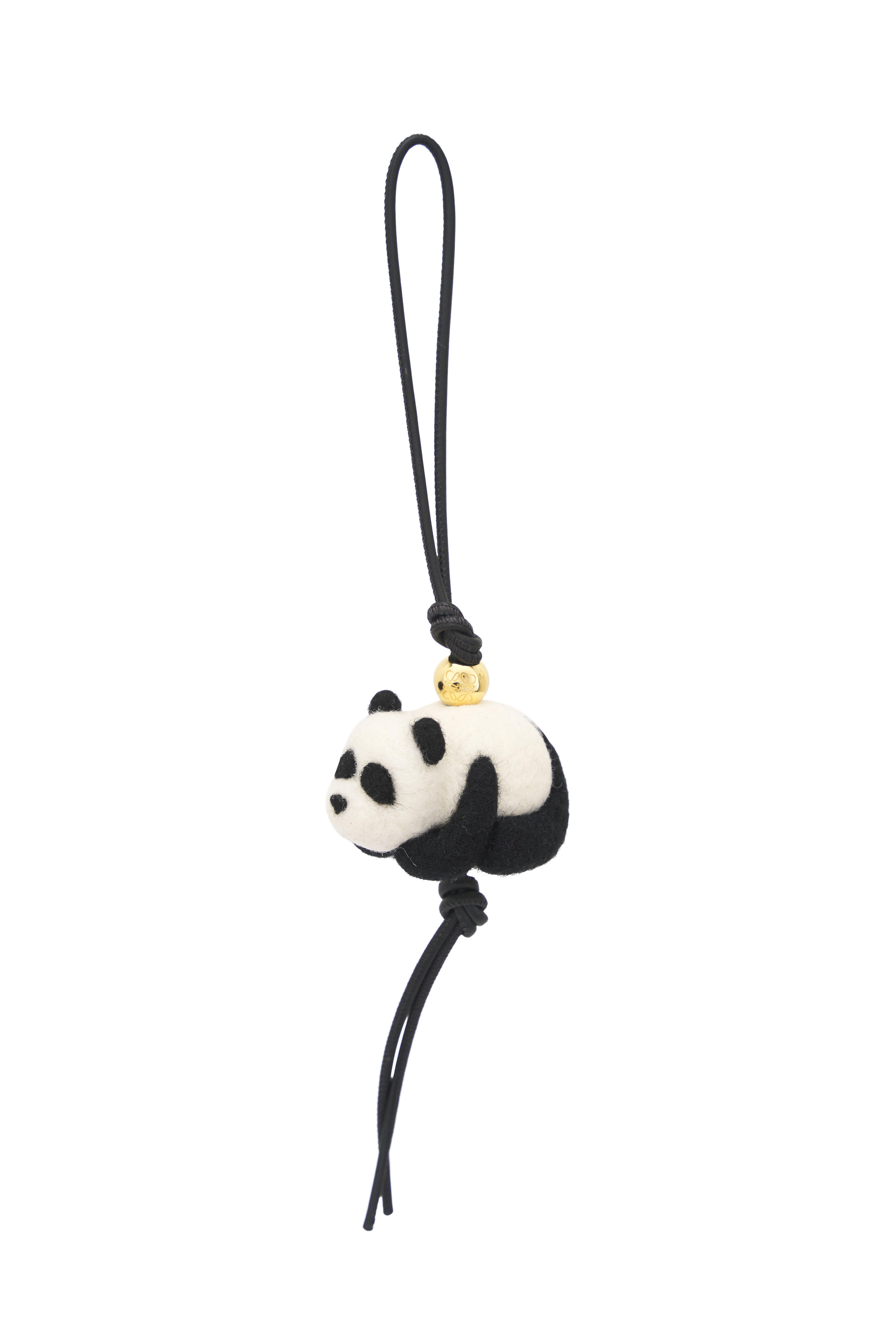 Felt. Looped calfskin leather strap. Gold tone anagram pebble. Made in Spain.