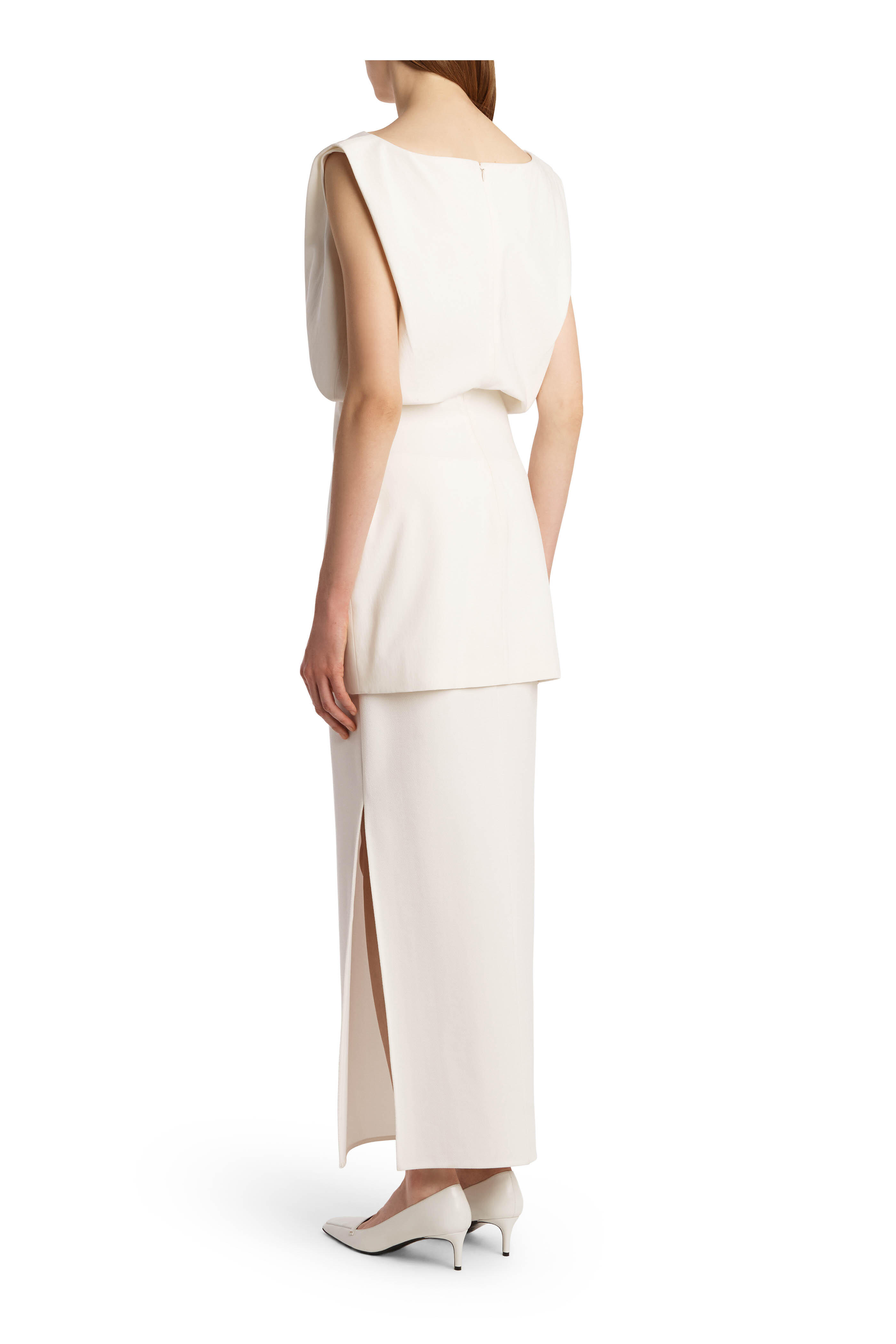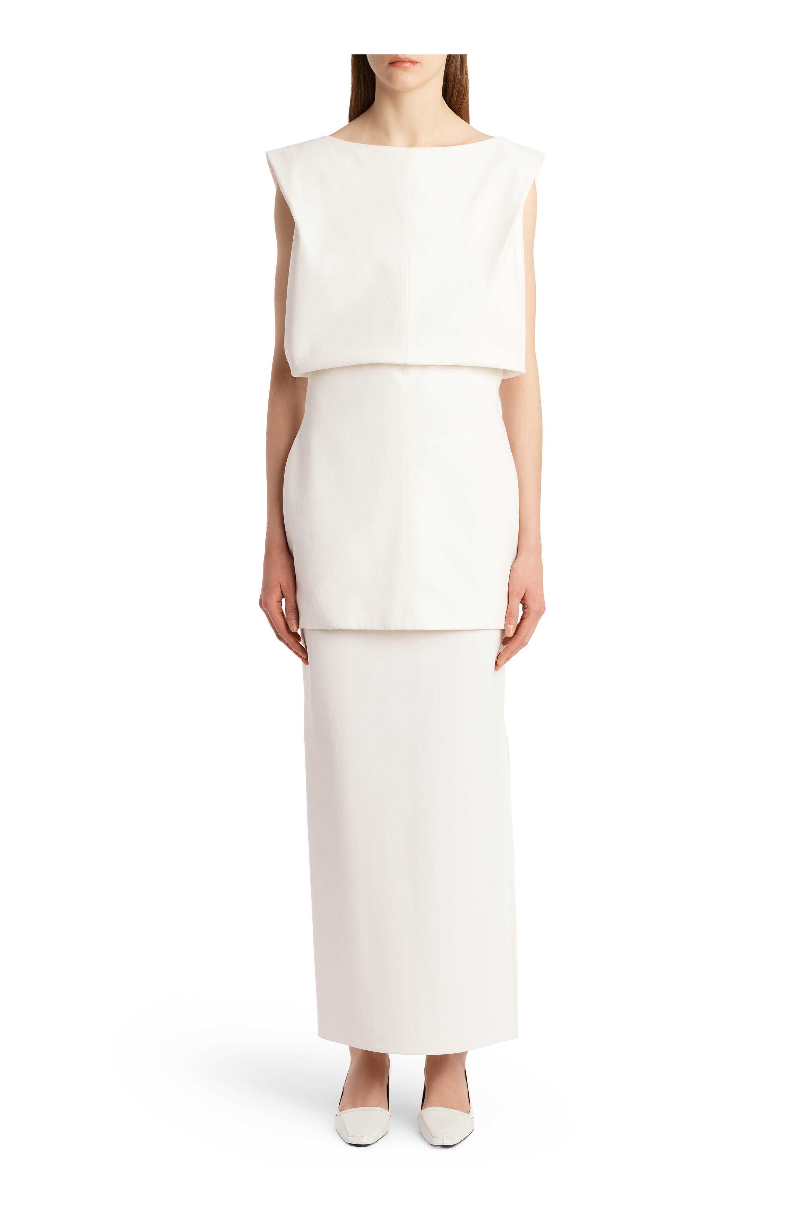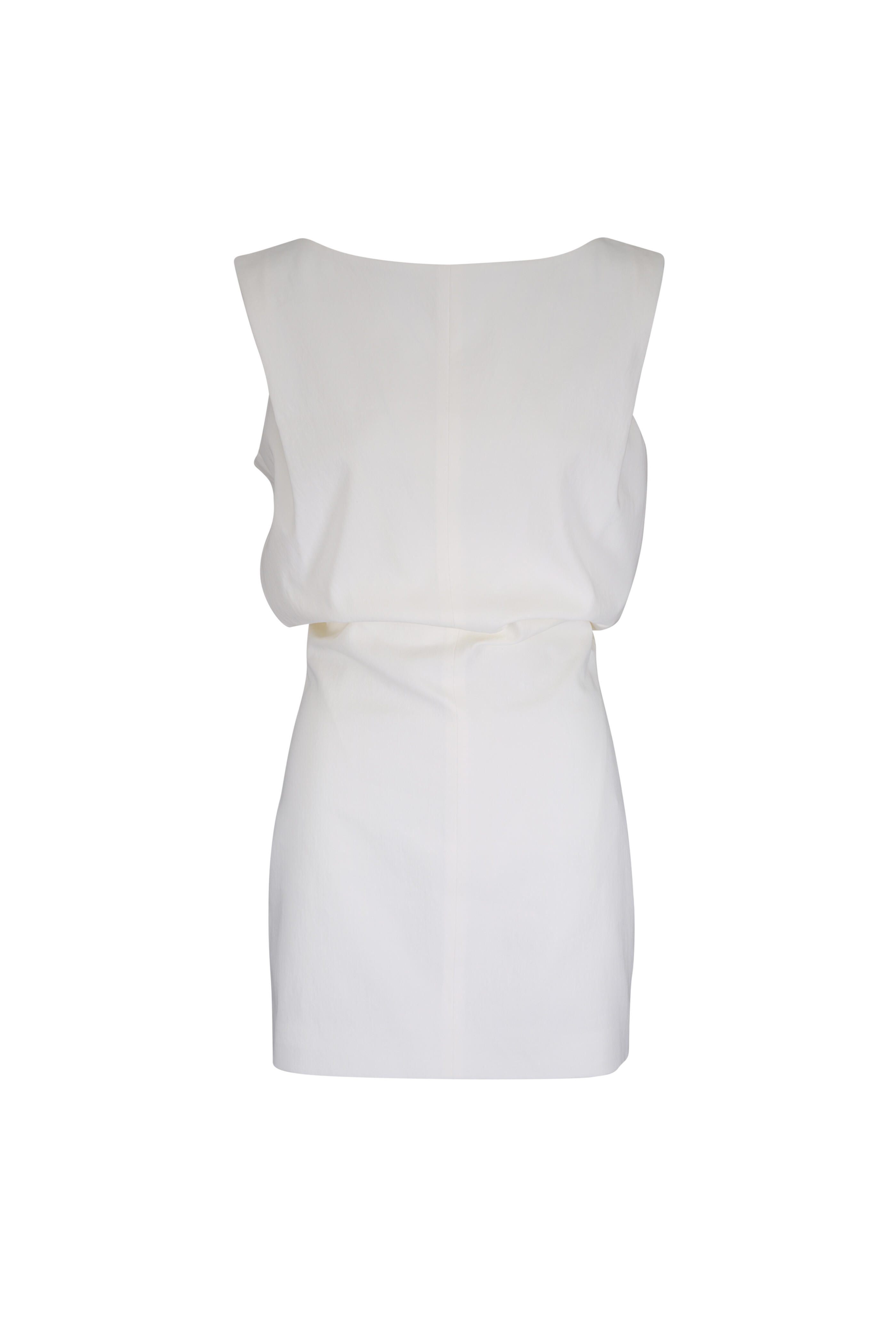 Bateau neckline. Concealed back zip. Clean shoulders. Imported. Runs small. Recommended to size up. Can also be worn as a tunic. 100% cotton. Dry clean.