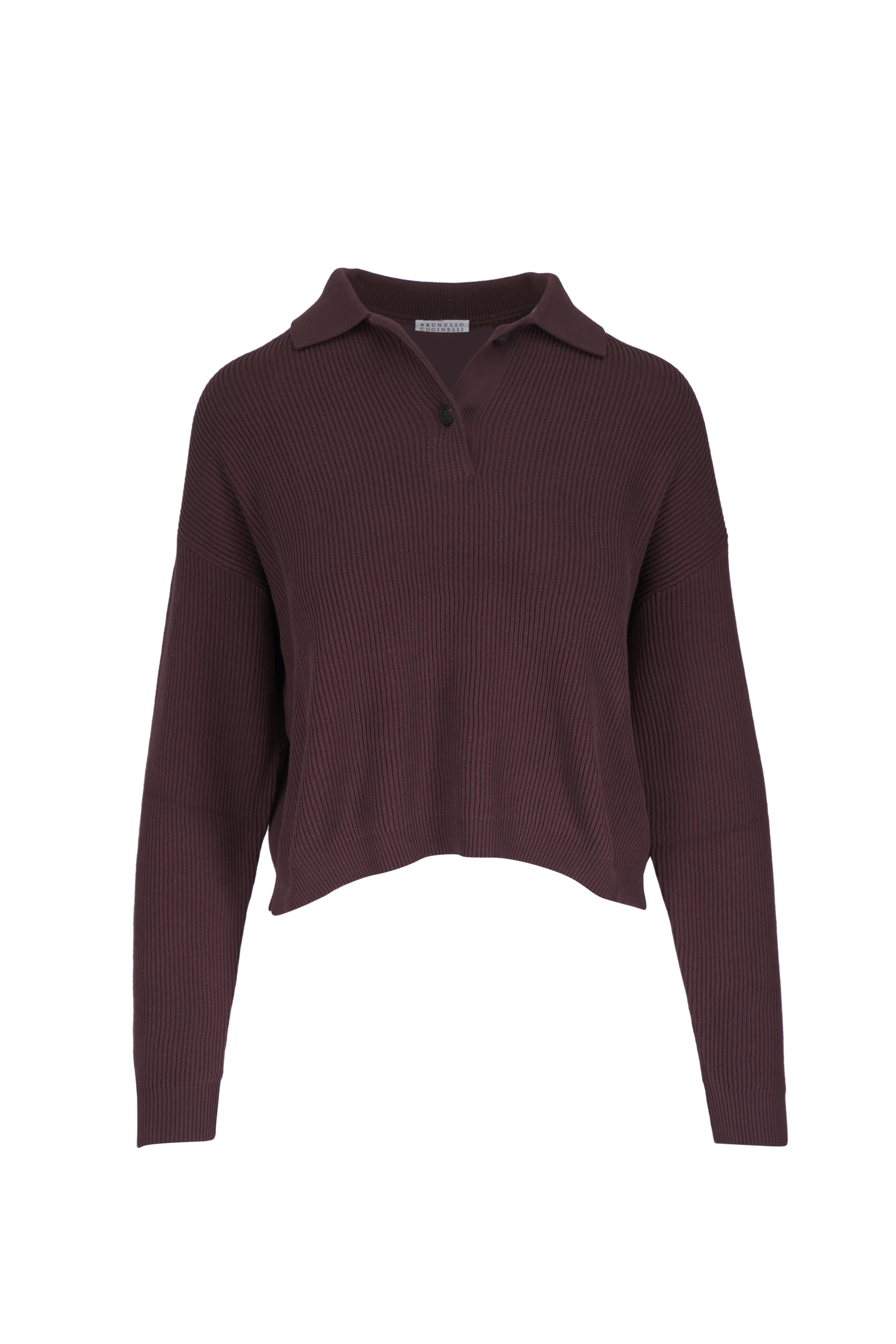Spread collar. Partial button placket. Ribbed throughout. Made in Italy. Approximately 20 ½" shoulder to hem (measurements taken from size S). 100% cotton. Dry clean.