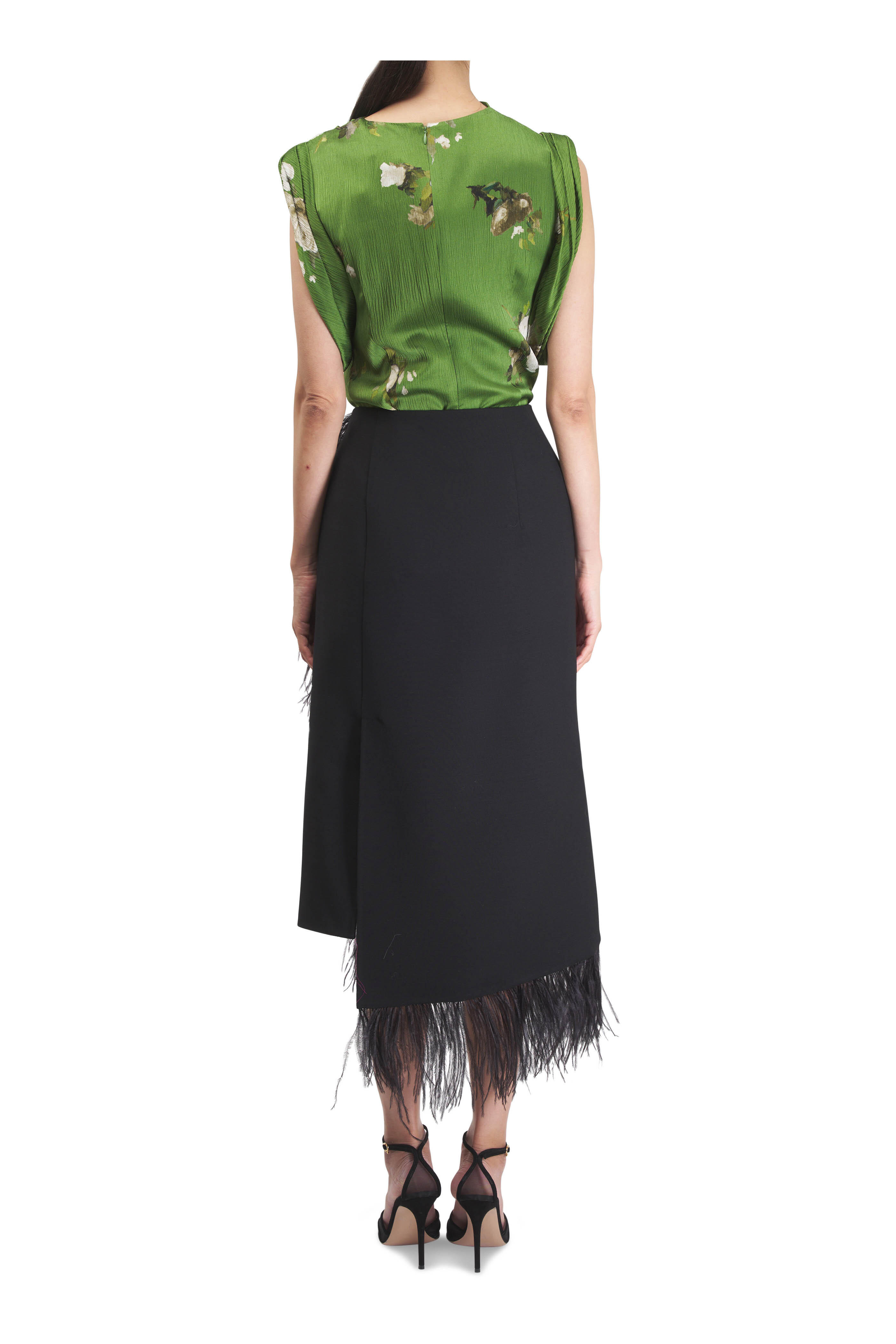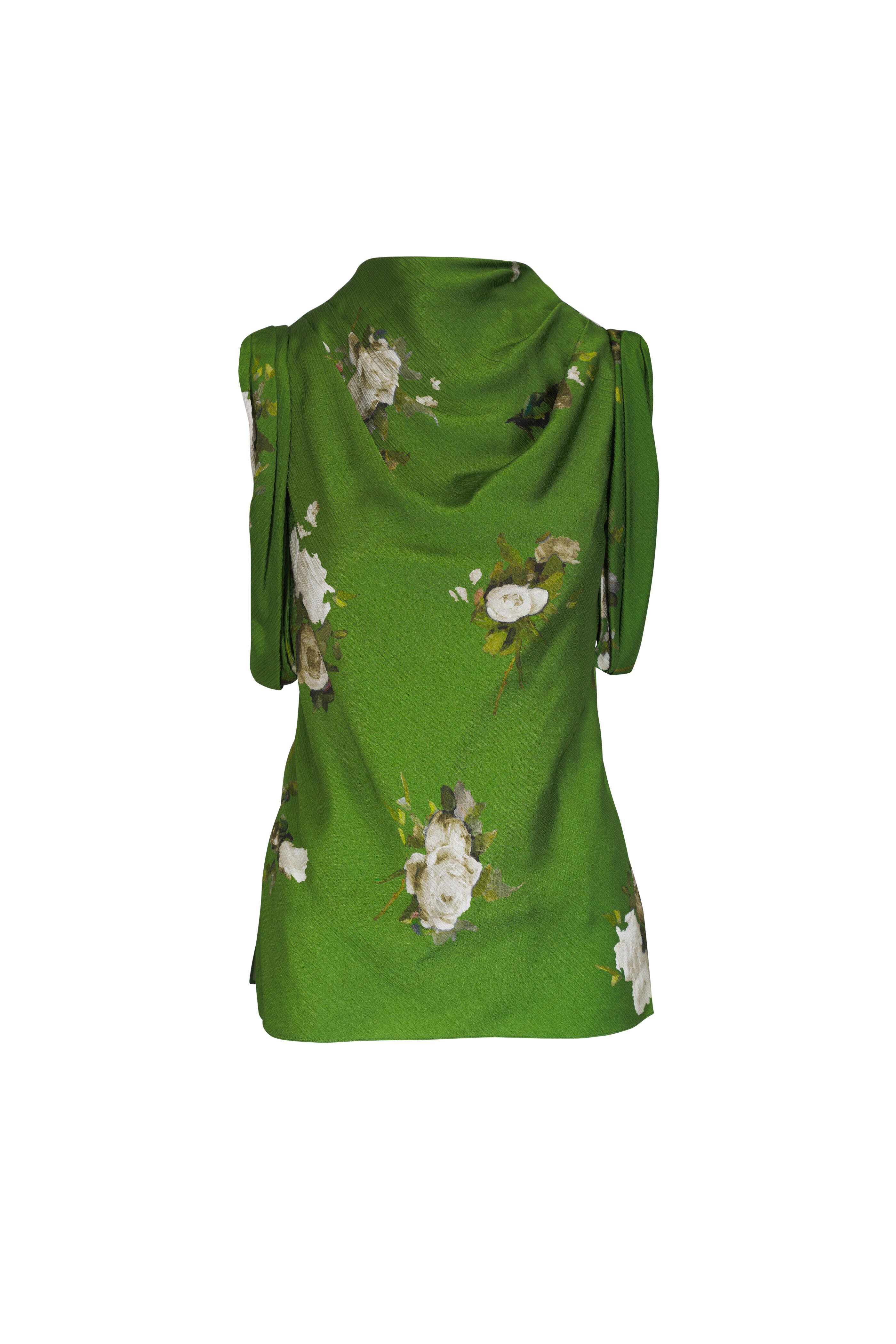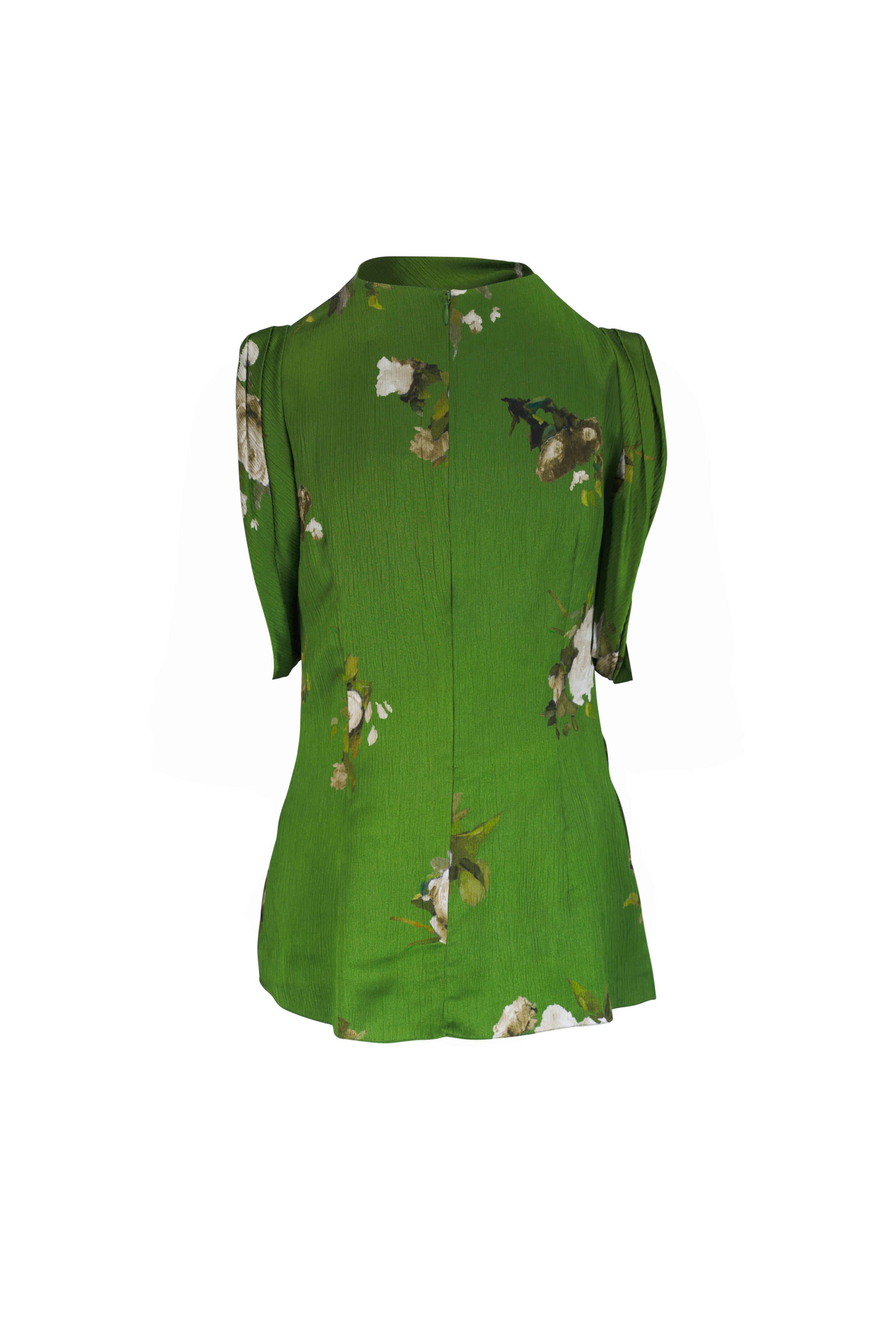 Olive Painted Rose Bouquet Crinkled Satin Top