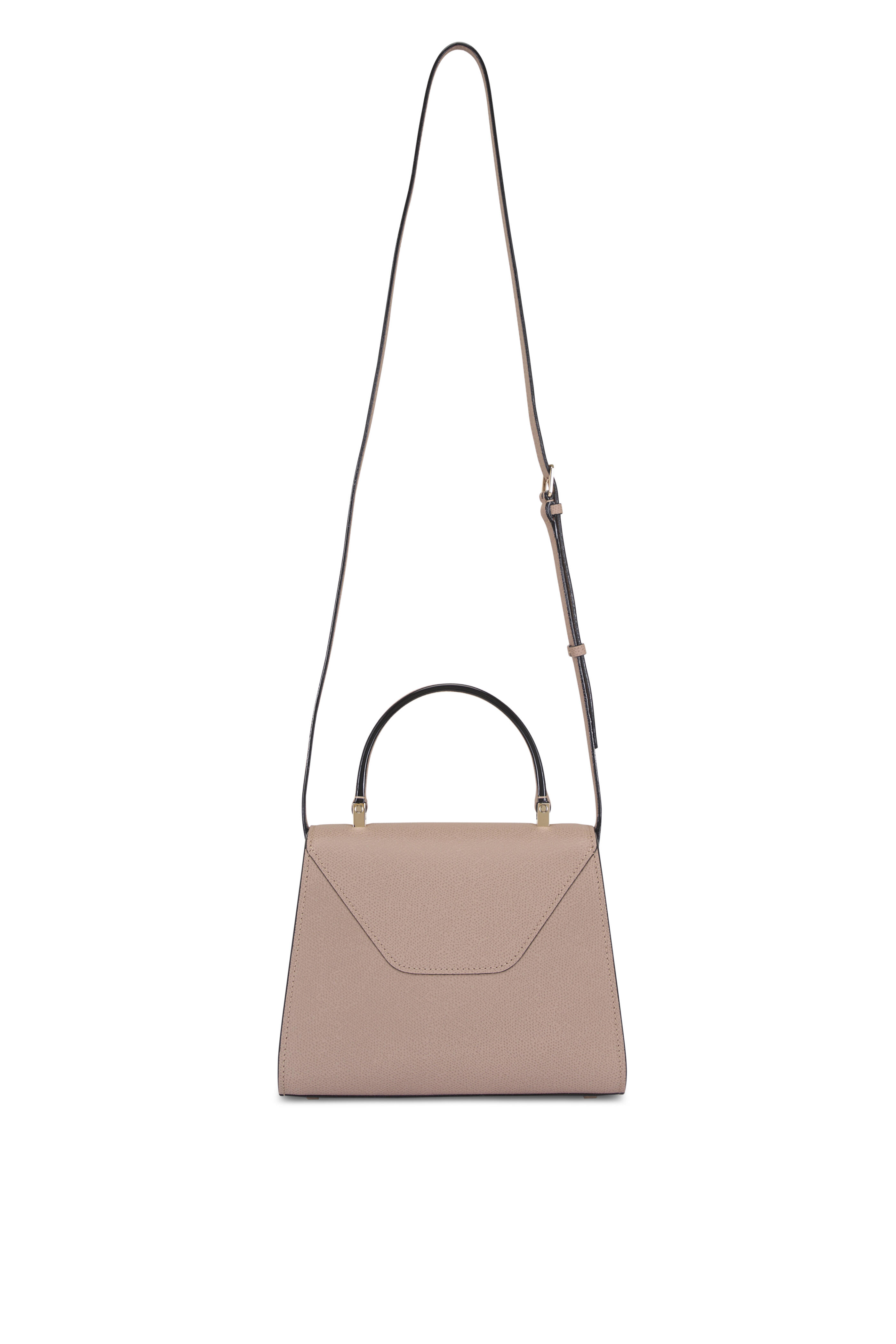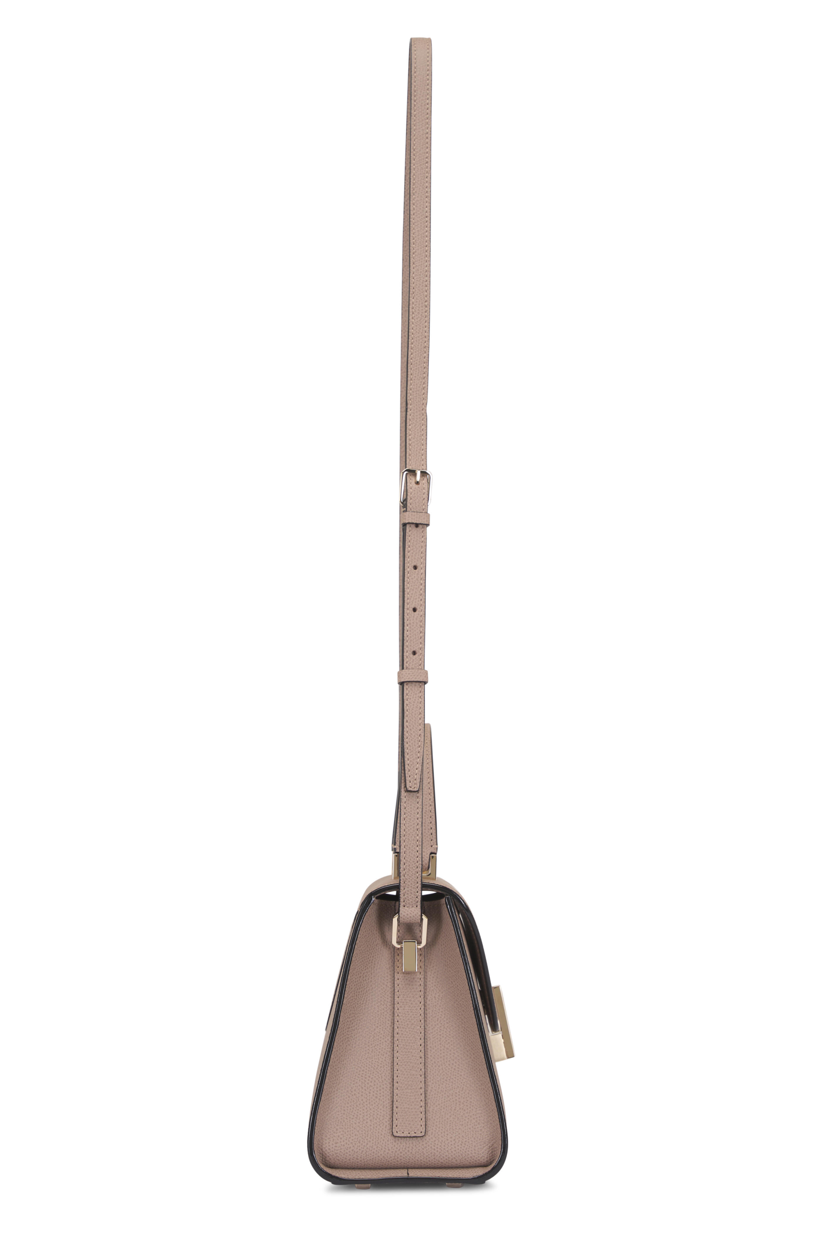 Millepunte calf leather. Single top handle; adjustable and removable crossbody or shoulder strap. Gold-tone clasp closure with leather insert; front flap. Interior slip pocket. Signature black lacquered Costa edges are painted by hand. Made in Italy. Dimensions (inch): 4.7 depth. 6.3 height. 8.7 width. Handle Drop (inch): 3.5. Minimum strap length (inch): 44.9. Maximum strap length (inch): 48.8.