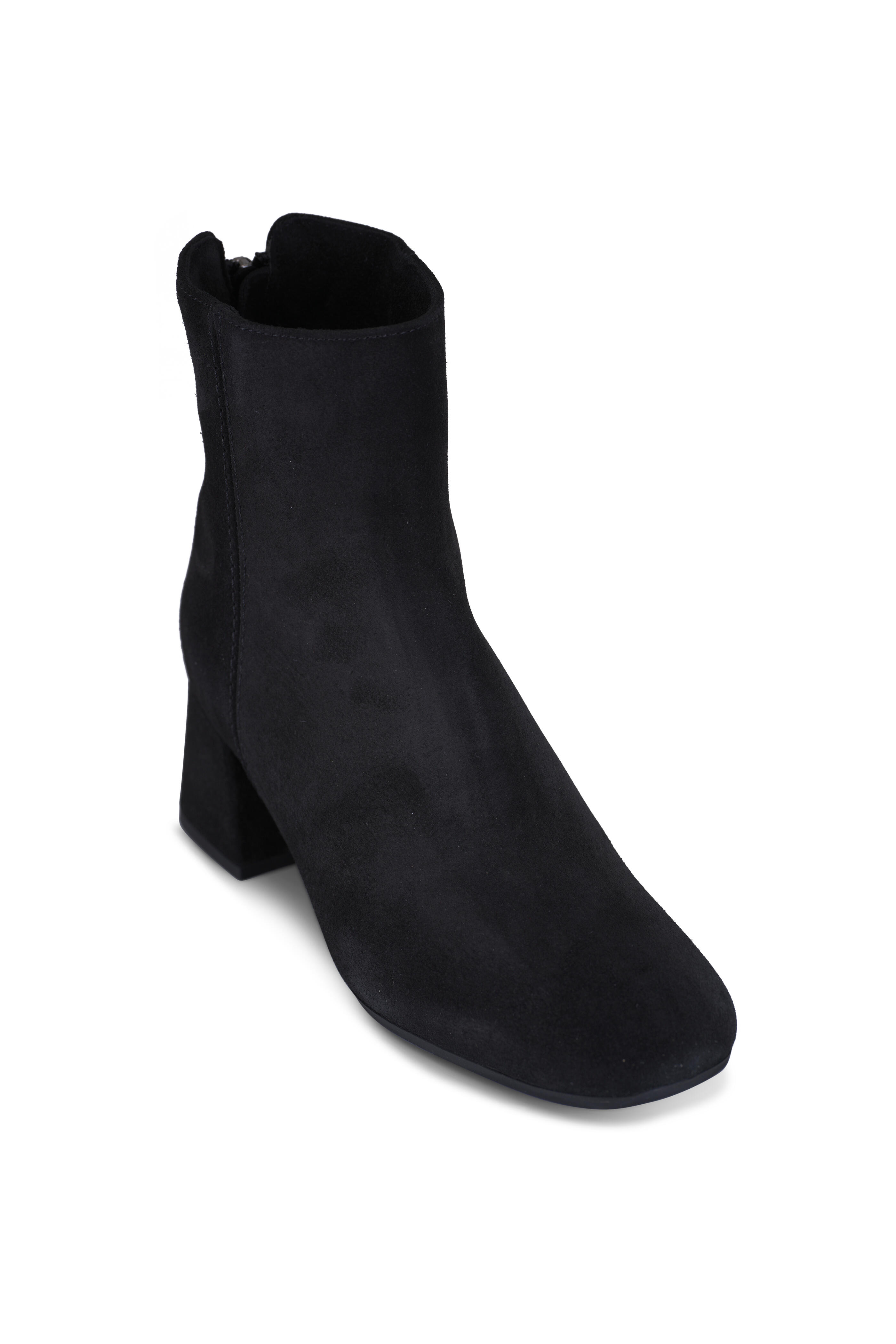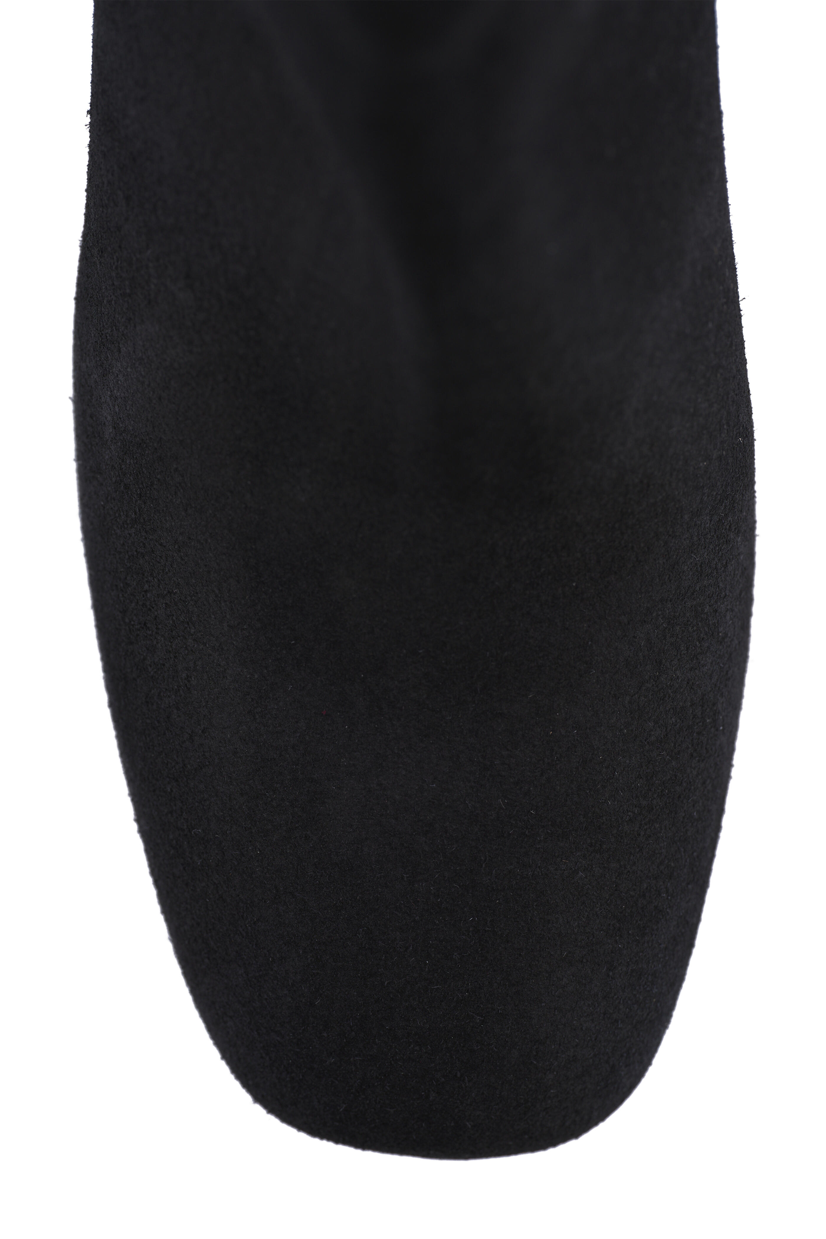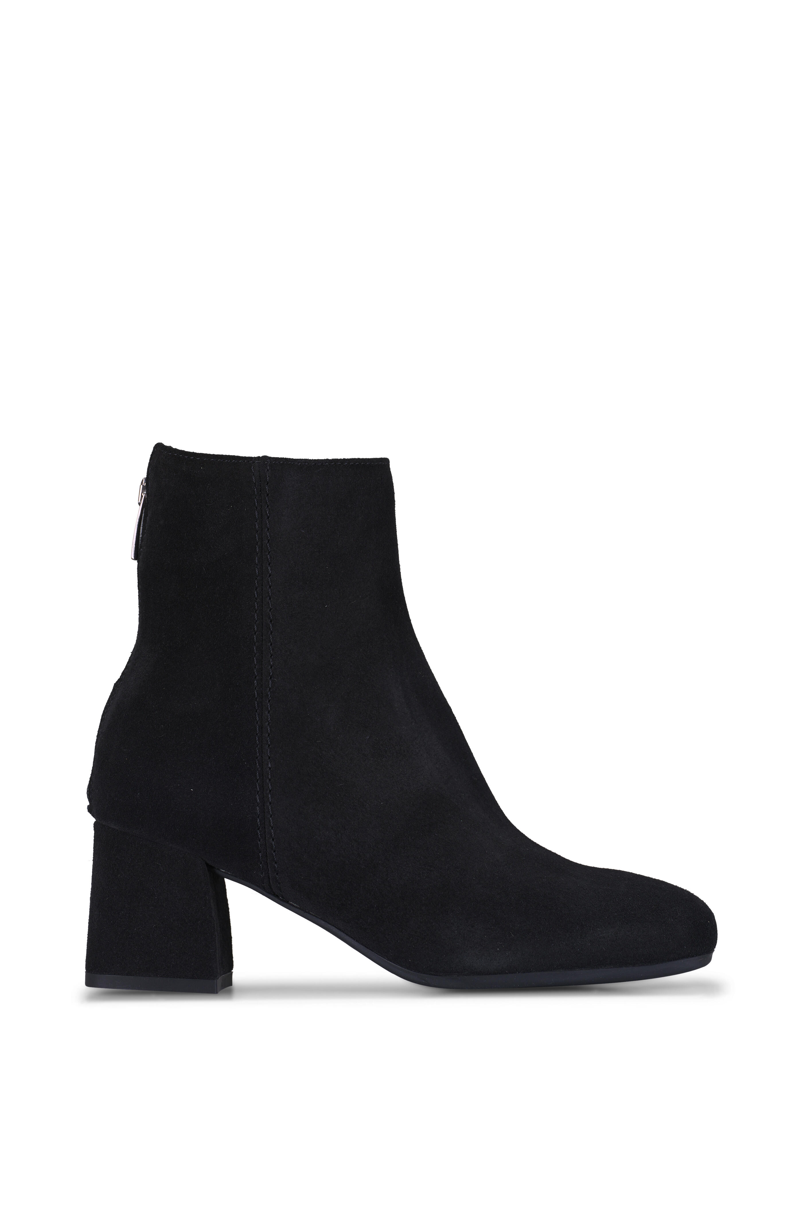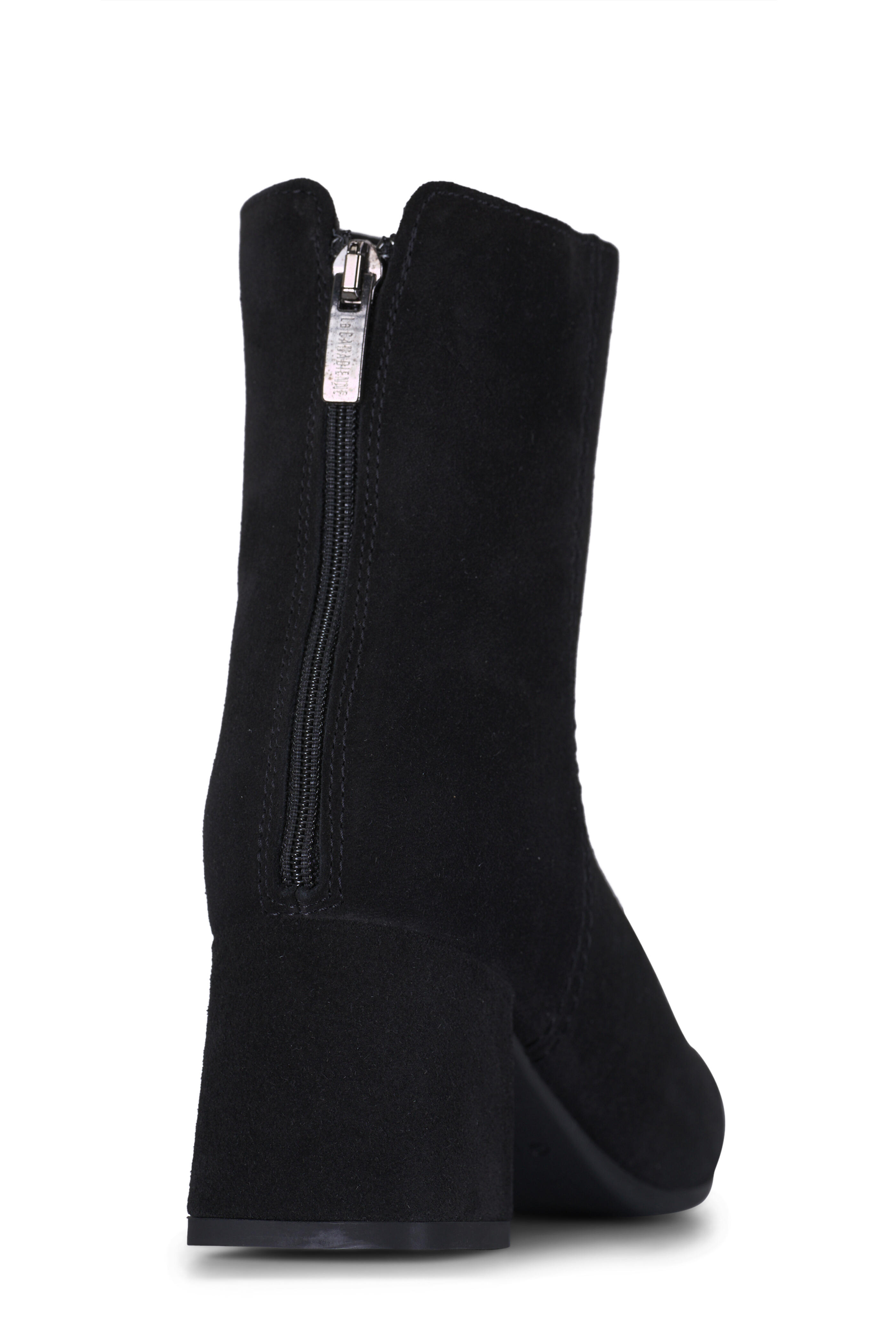 Suede upper. Squared toe. Back zip. Microfiber lining. Rubber sole. Signature waterproof materials. Made in Italy. Heel measurement: 60mm. Calf Circumference: 26cm / 10.25". Shaft Height: 14cm / 5.5".