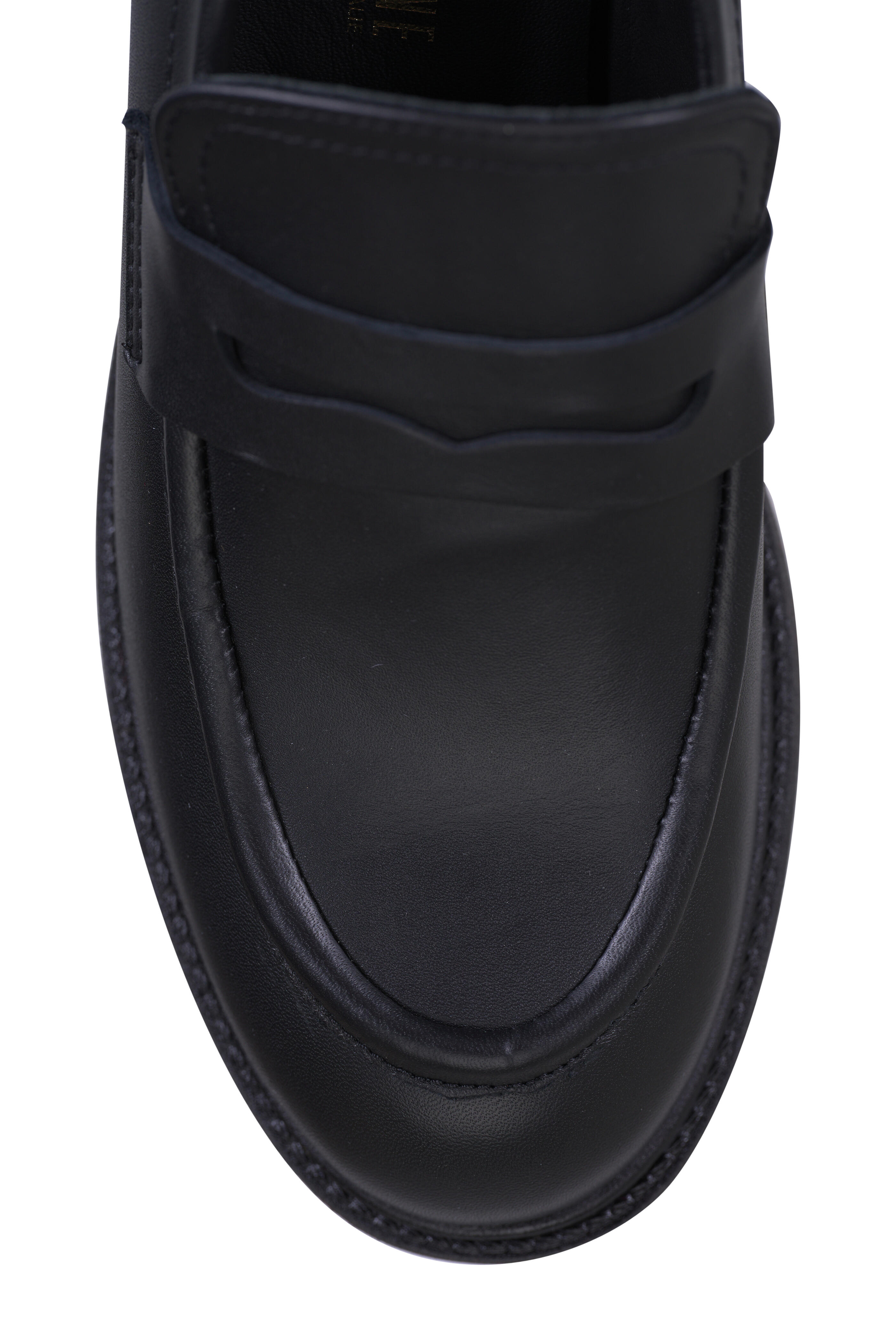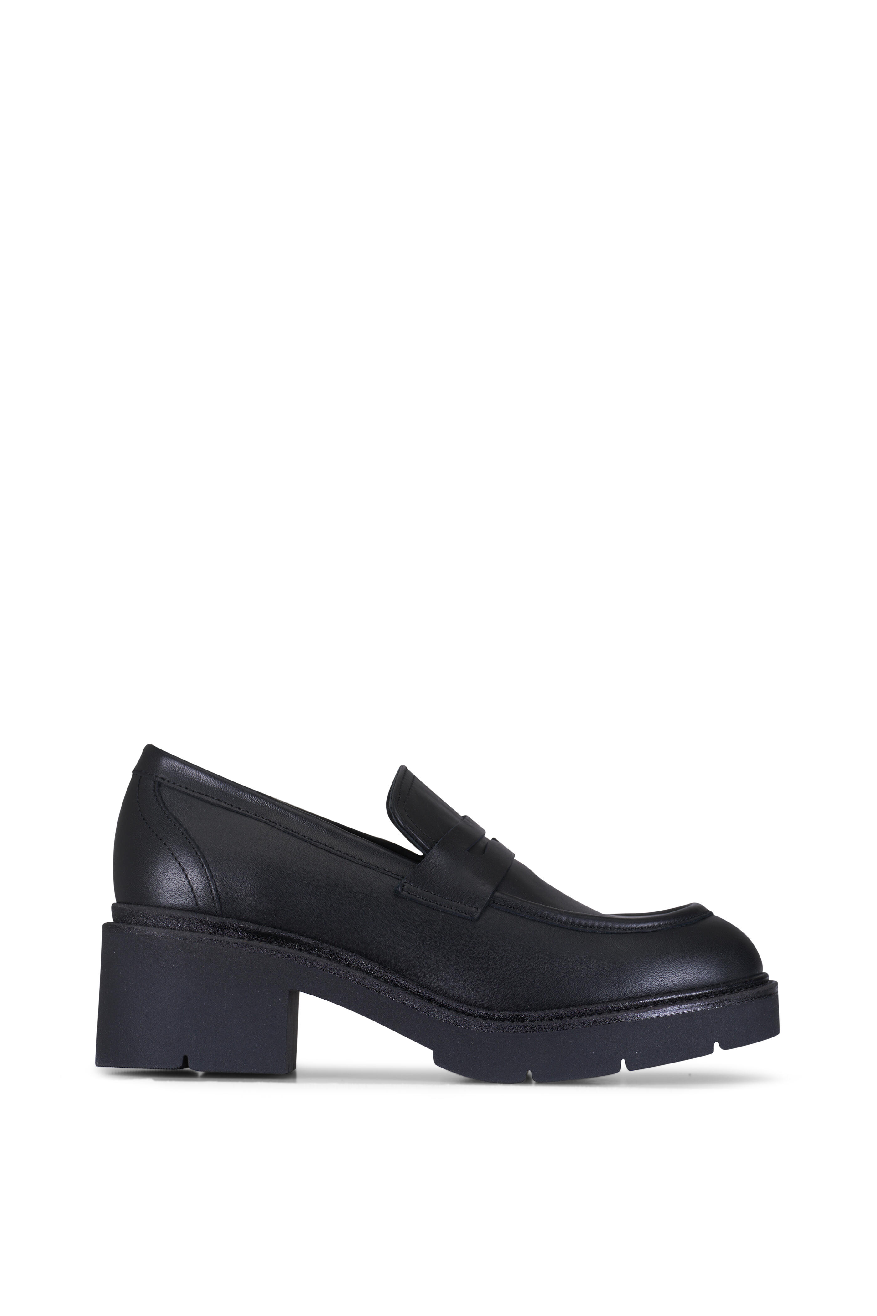 Leather upper. Almond moc toe. Penny strap at vamp. Leather lining and insole. Rubber sole. Made in Italy. Heel measurement: 50mm.