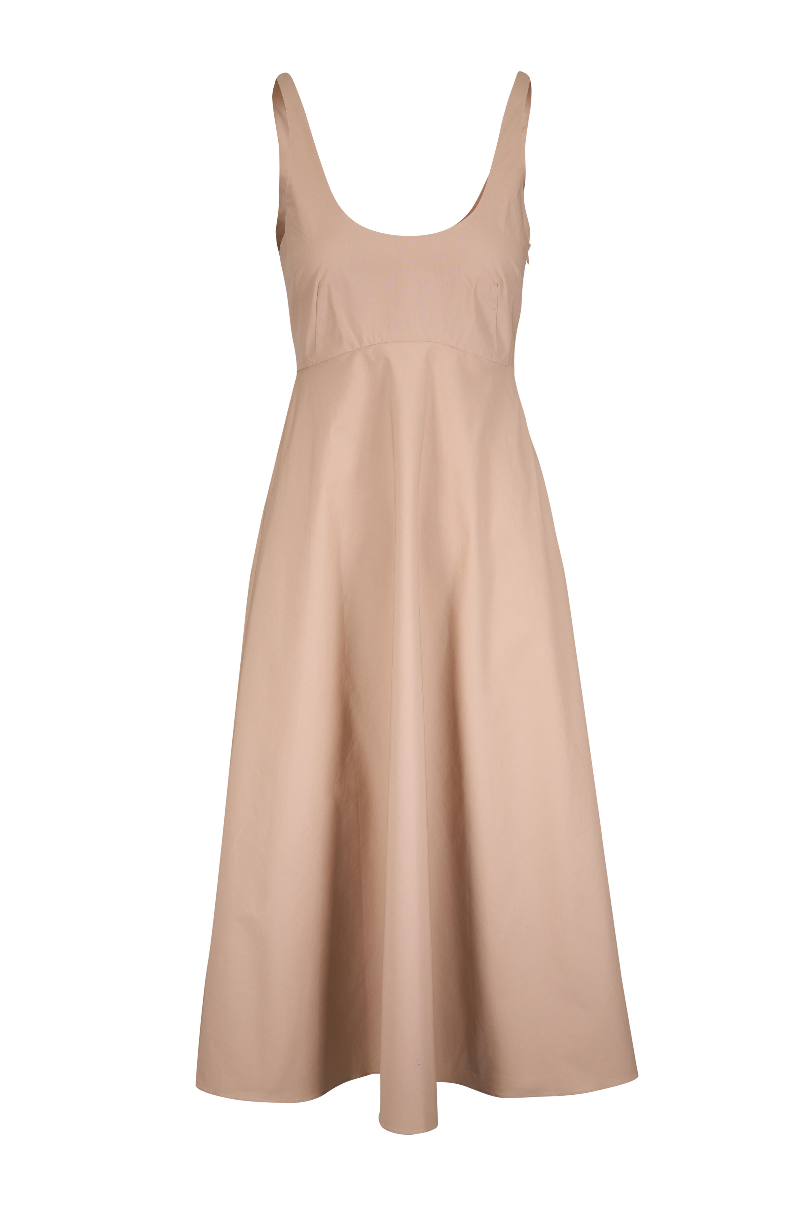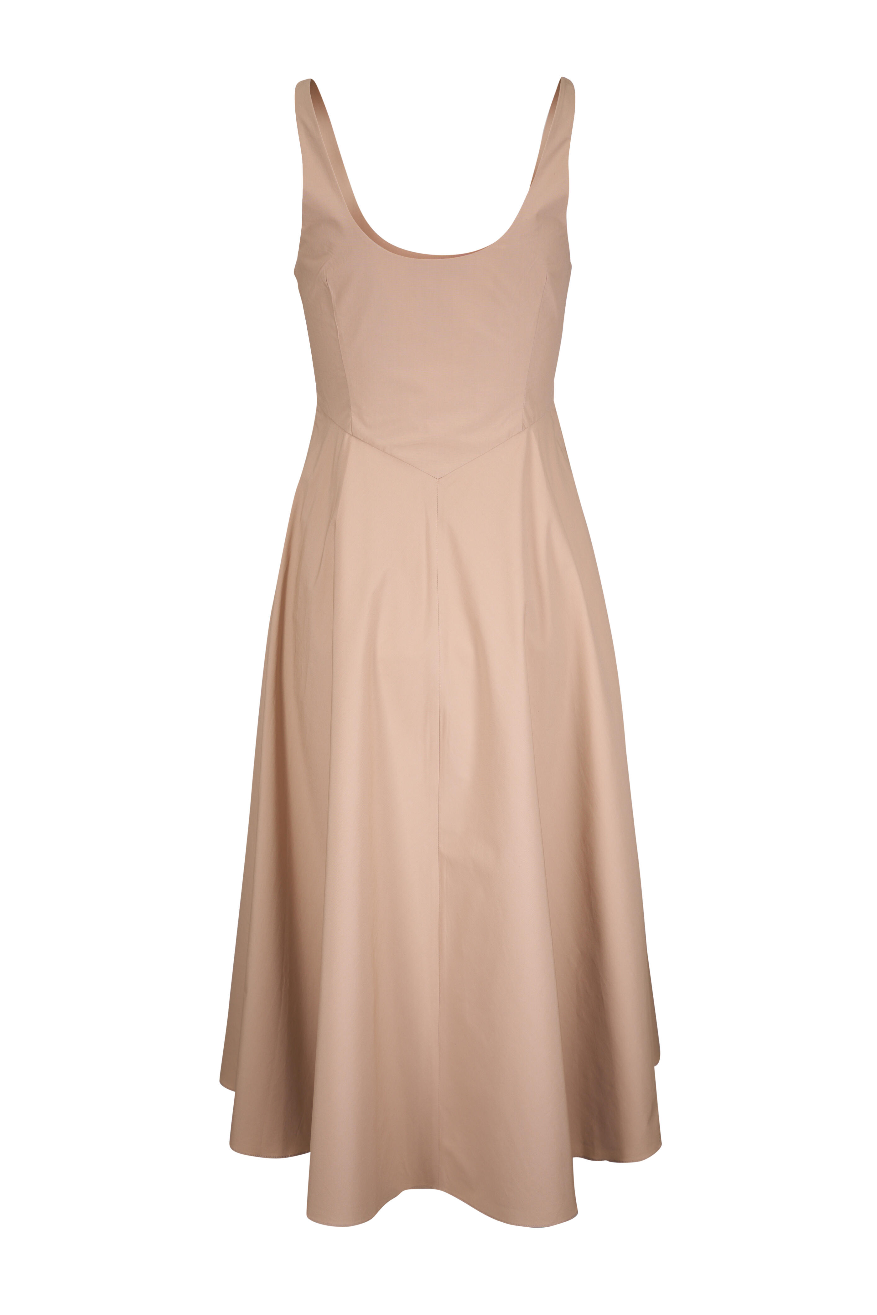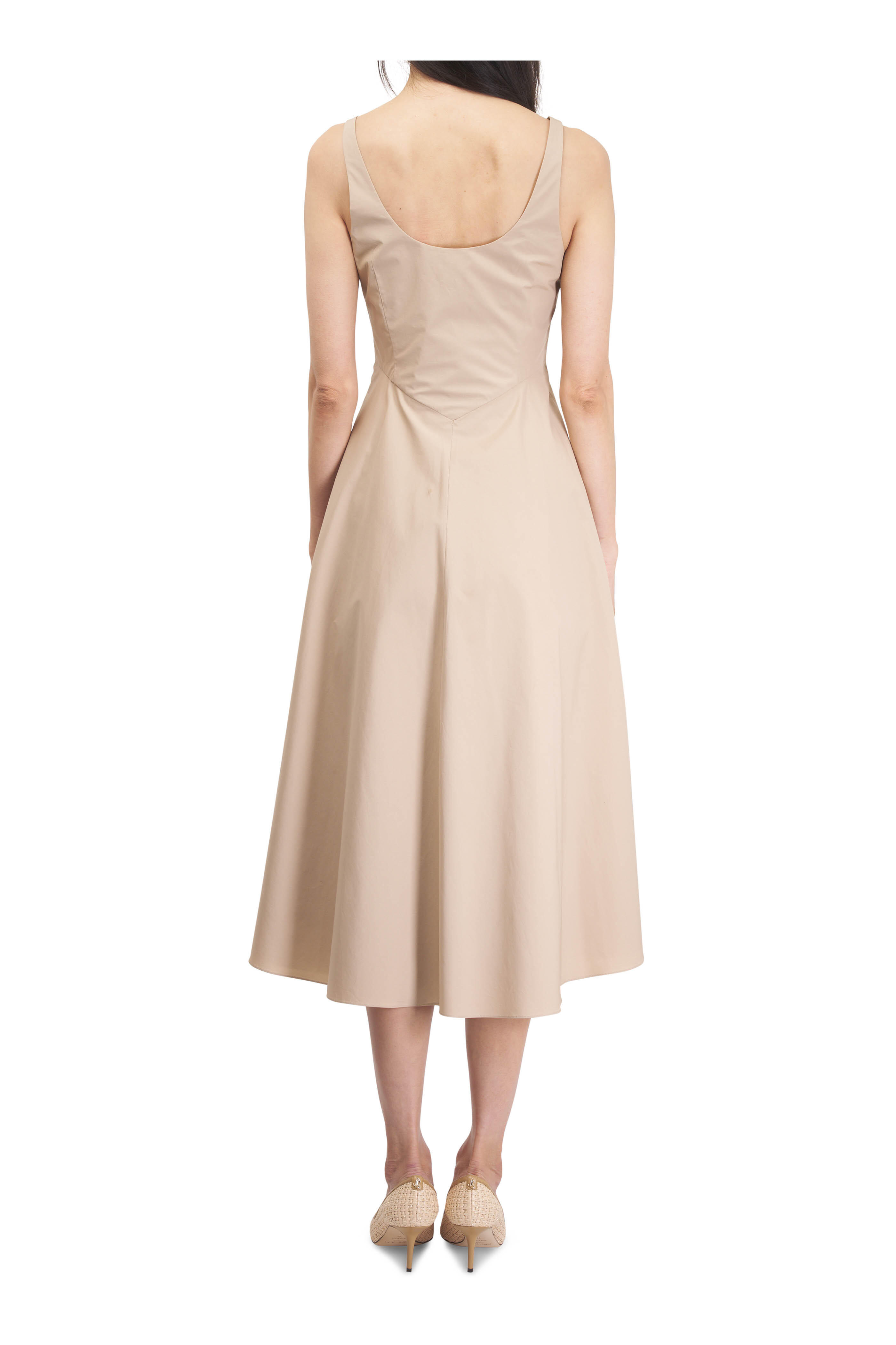 Scoop neckline. Concealed side zip. Side seam pockets. Imported. Approximately 47" shoulder to hem (measurements taken from size S). 96% cotton, 4% elastane; lining: 100% cotton. Machine wash.