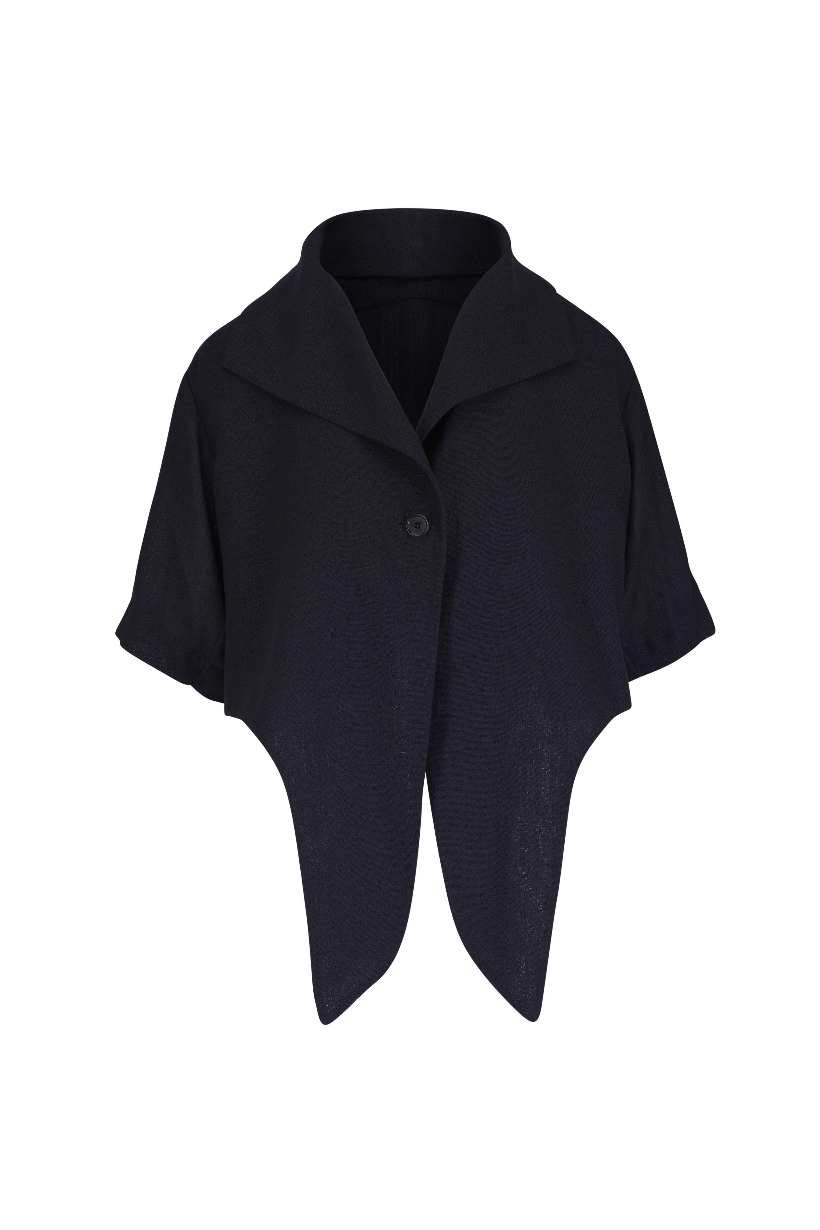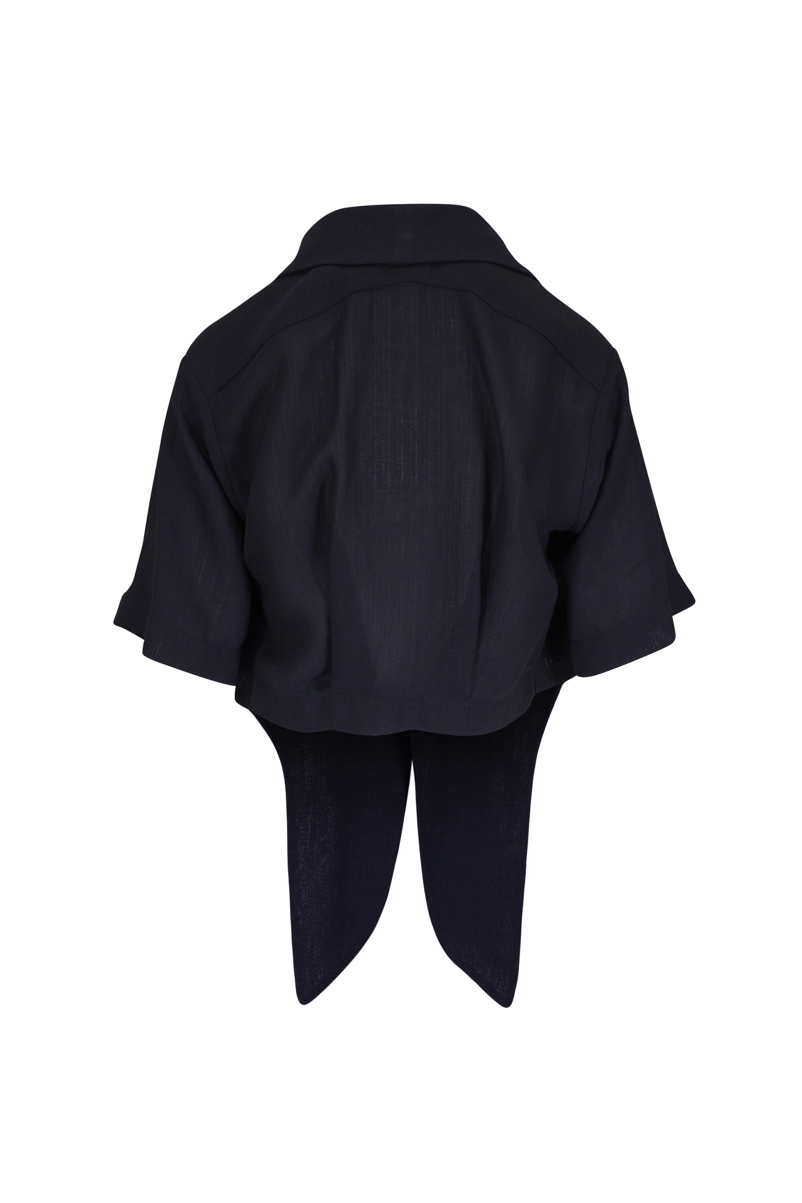 Sailor collar. Single button closure. Back yoke. Lower tie. Made in Italy. Shoulder to hem 17" (size 2). 100% Linen. Dry clean.