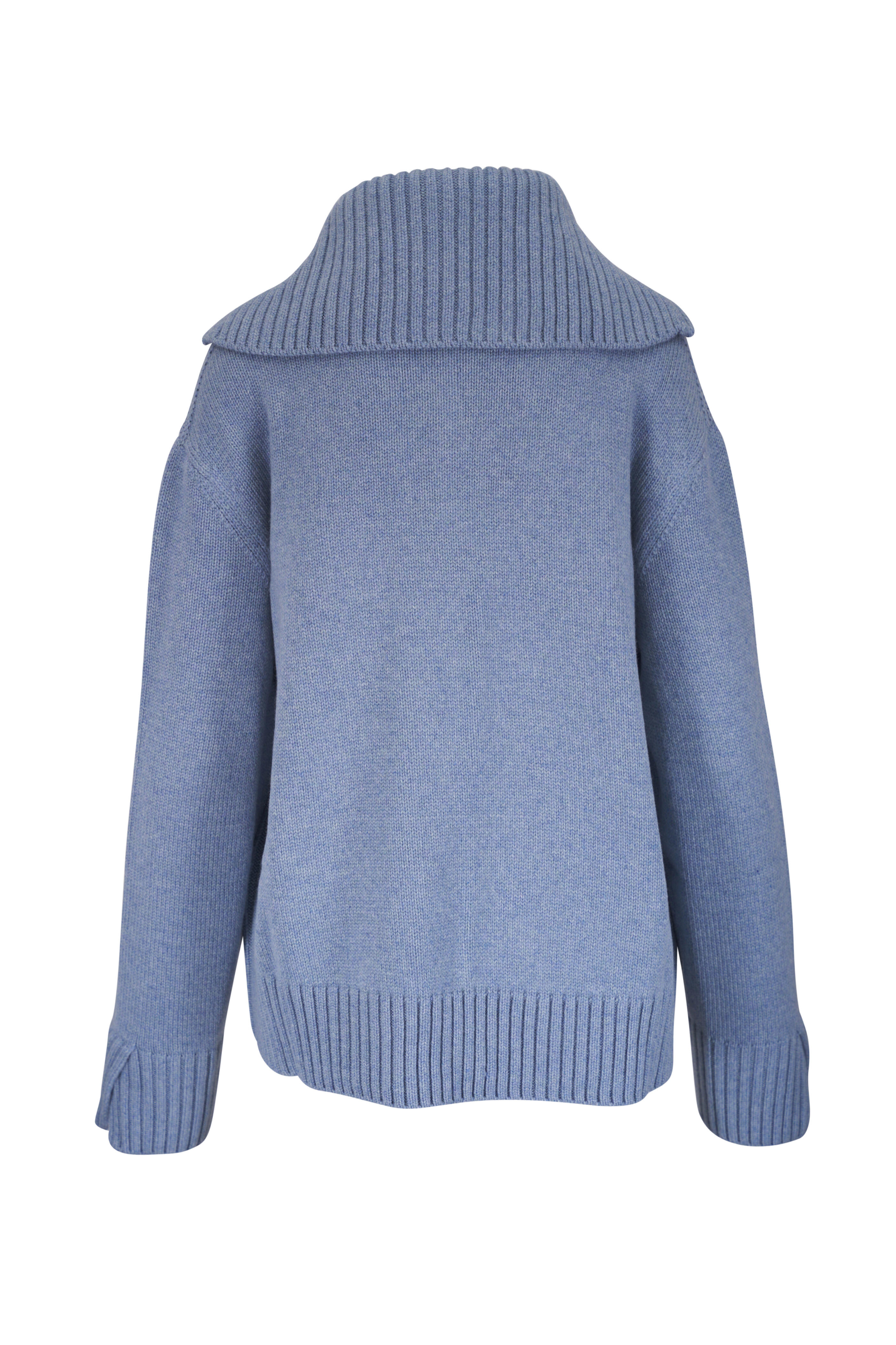 Quarter-zip placket. Ribbed trims. Made in Italy. Clear Day Melange (60M7). 100% baby cashmere. Dry clean.