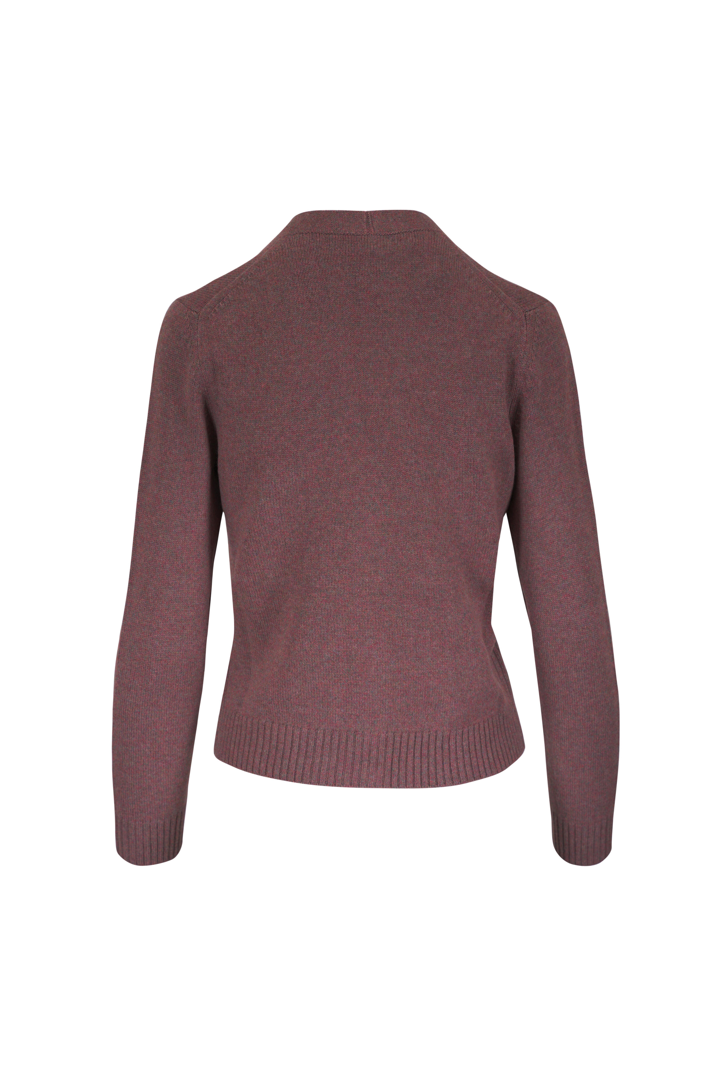 V-neckline. Front button placket. Ribbed trim. Made in Italy. Color: Cedar Bark Melange (H10W). 100% baby cashmere. Hand wash.