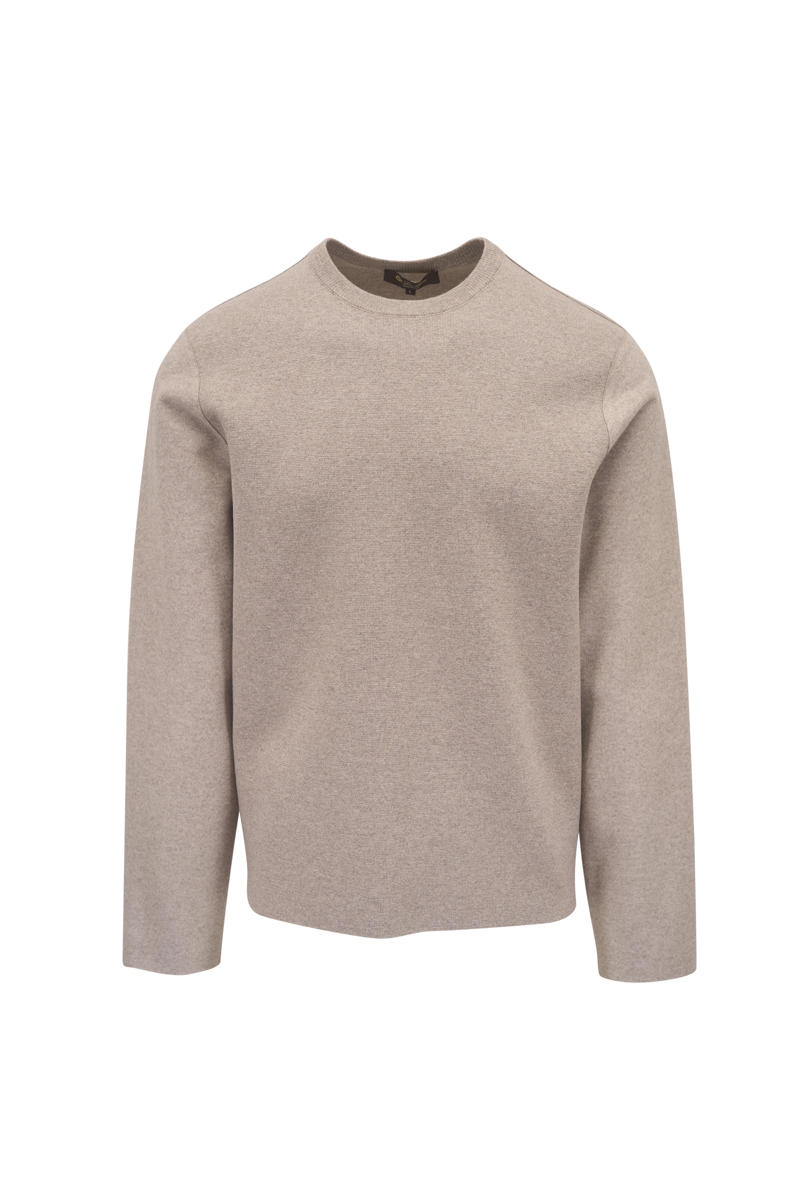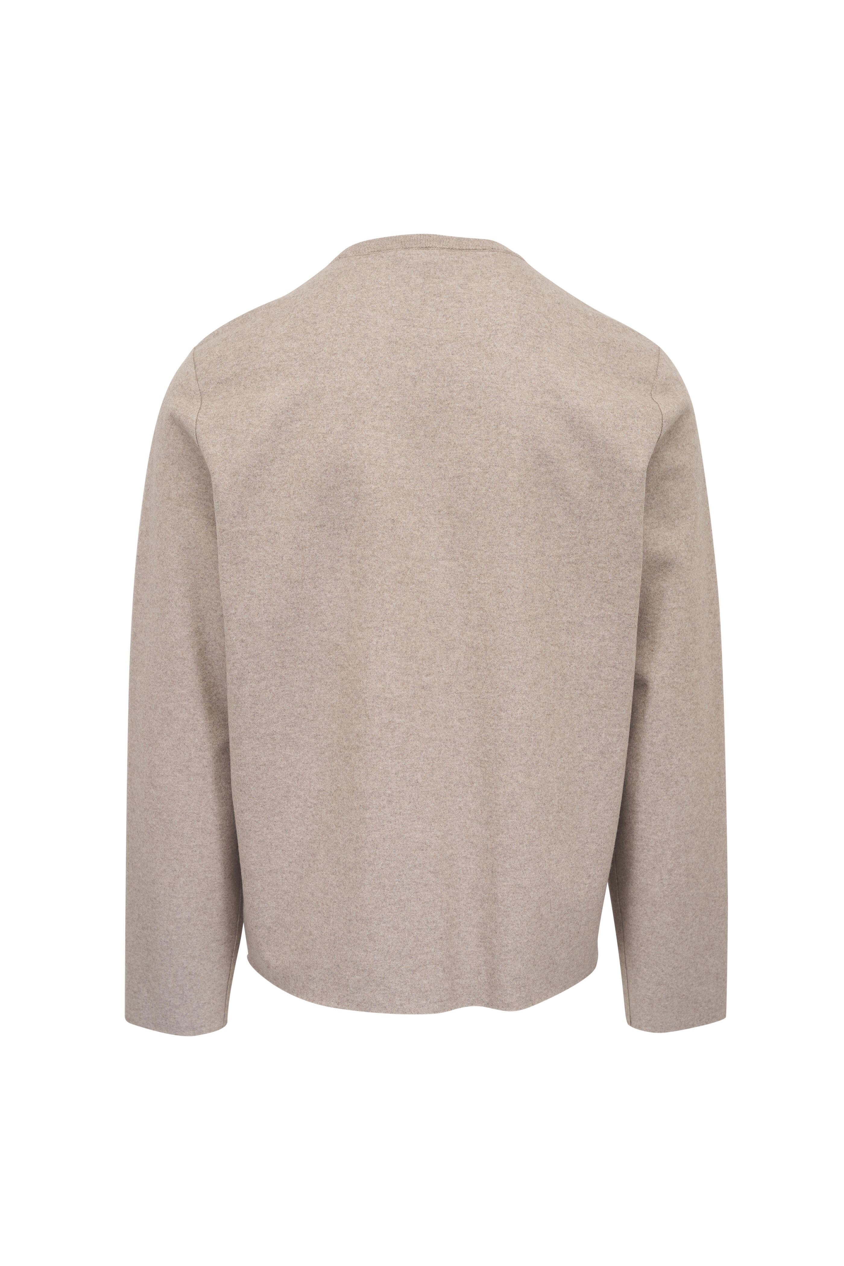Crewneck. Raw edge hem and cuffs. Made in Italy. 90% Virgin Wool, 10% Cashmere. Dry clean.