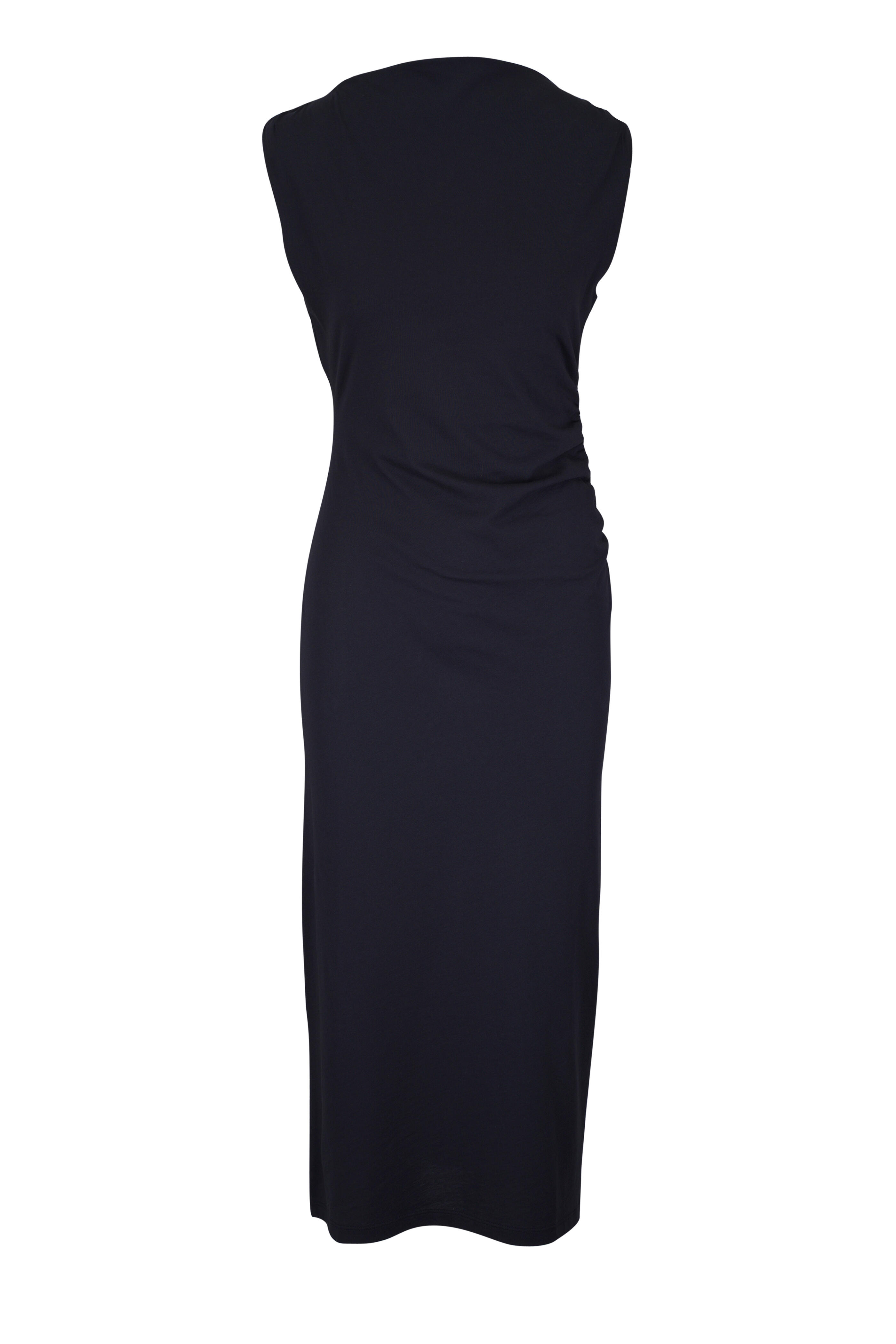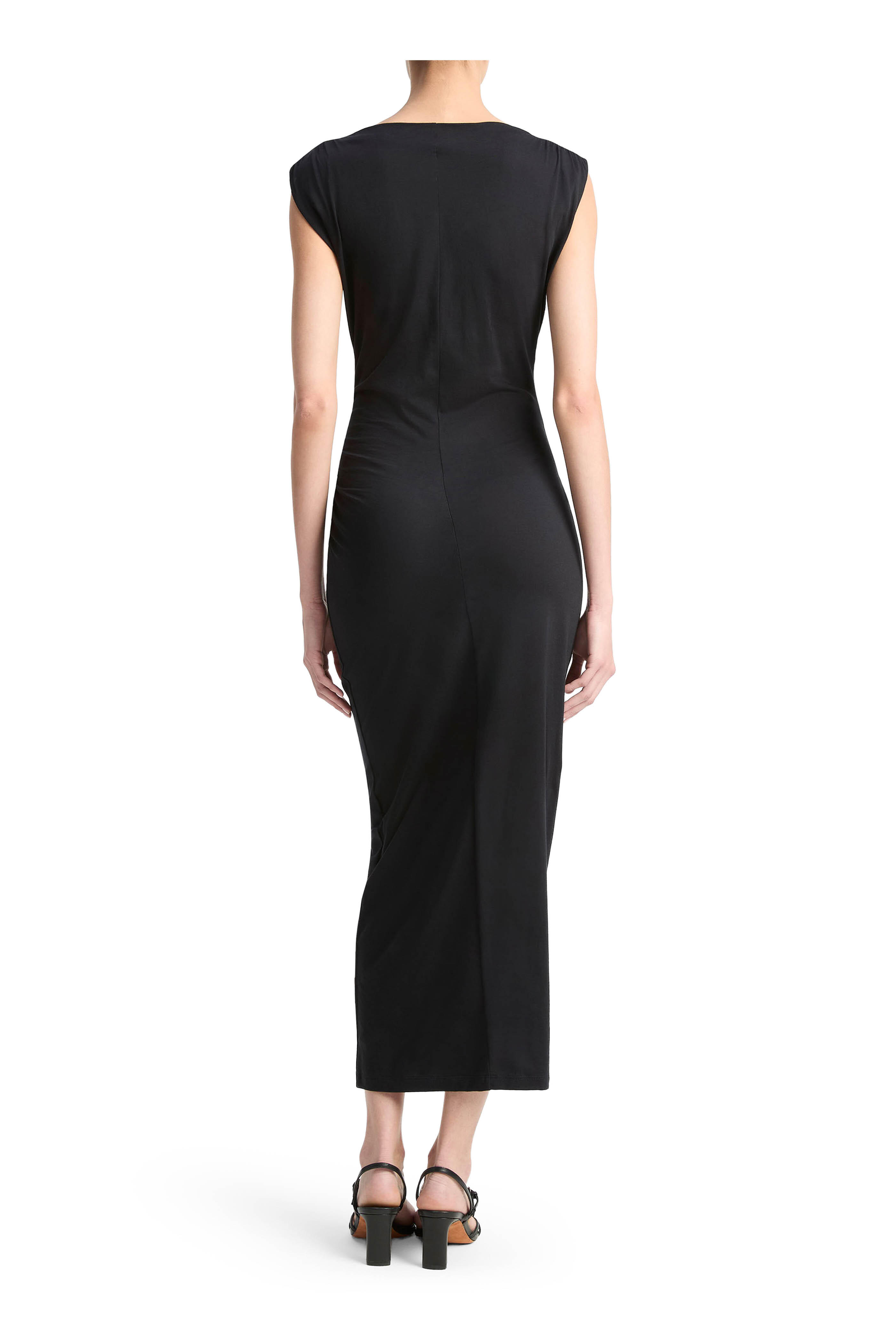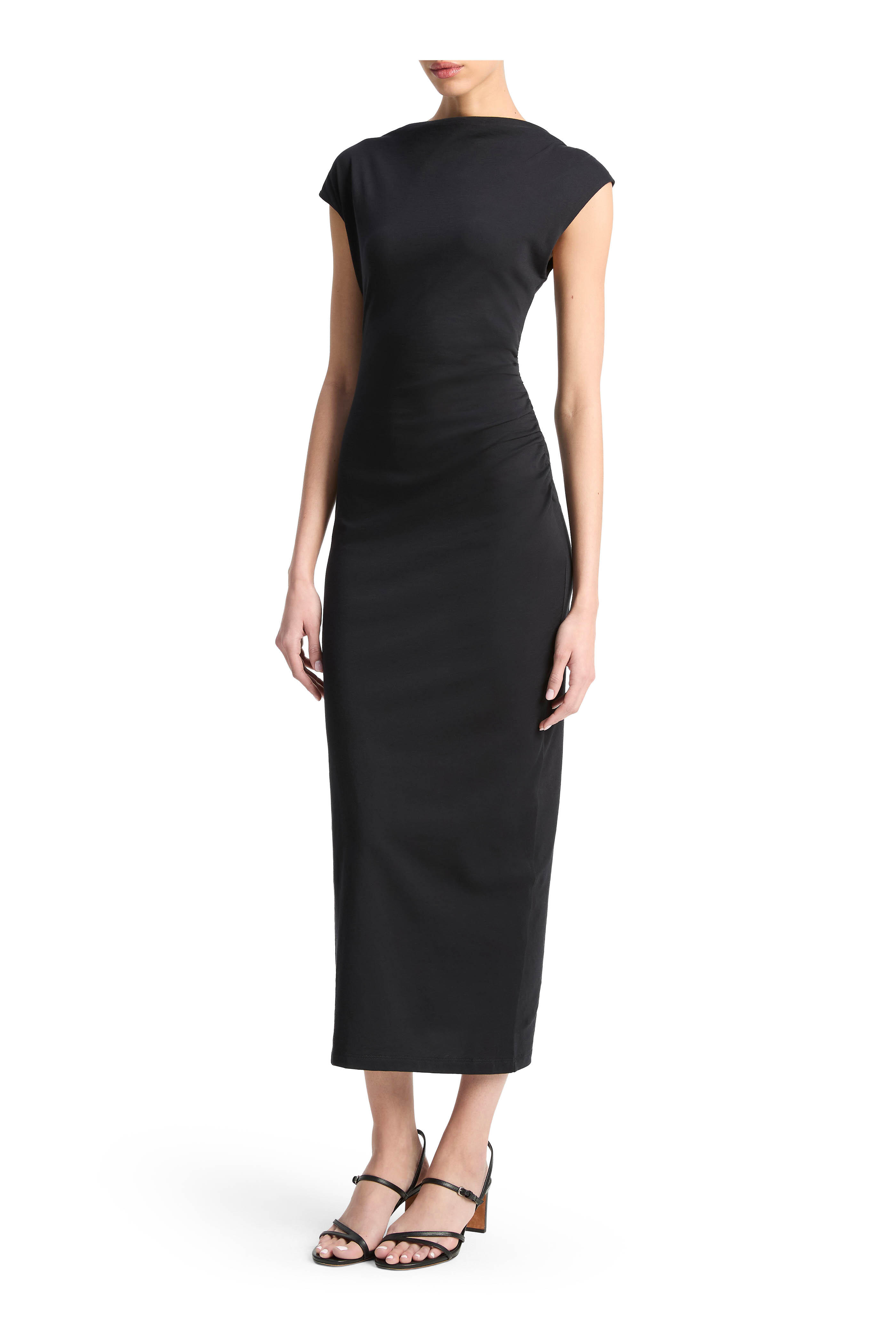 Draped cowl neckline. Slip-on style. Gentle ruching at the waist. Imported. Approximately 48 ½" shoulder to hem. 100% pima cotton. Machine wash.