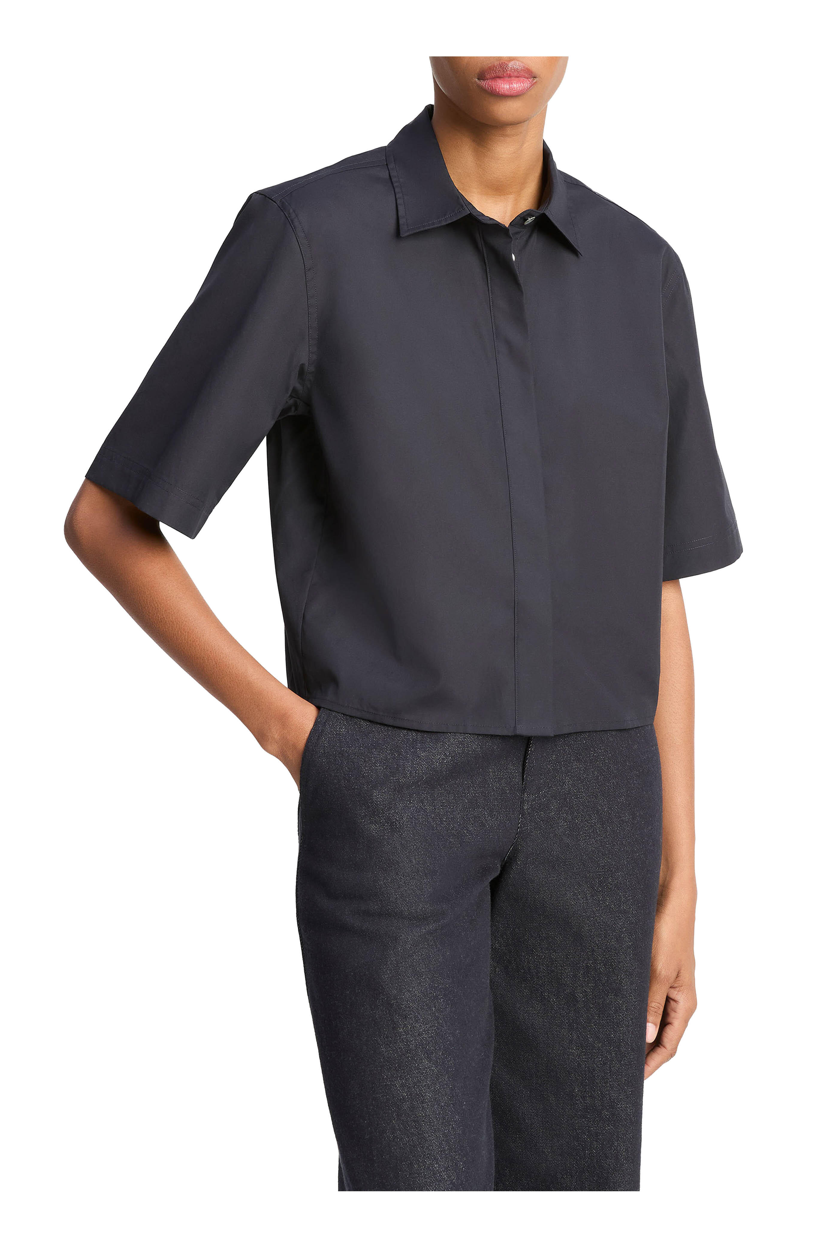 Spread collar. Concealed front button placket. Shoulder yoke. Side pleats at back. Fabric from Japan. Approximately 21 ½" shoulder to hem. 100% cotton. Machine wash.