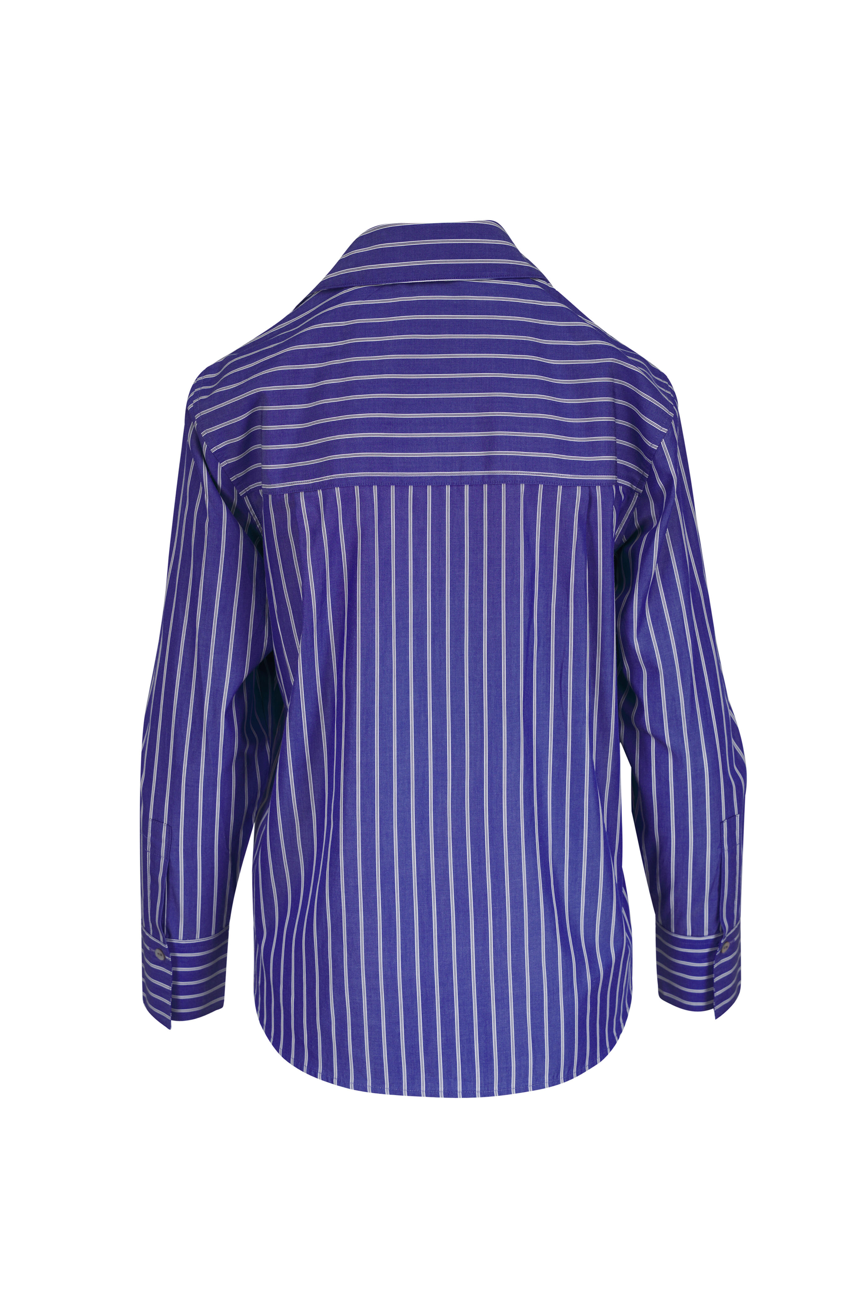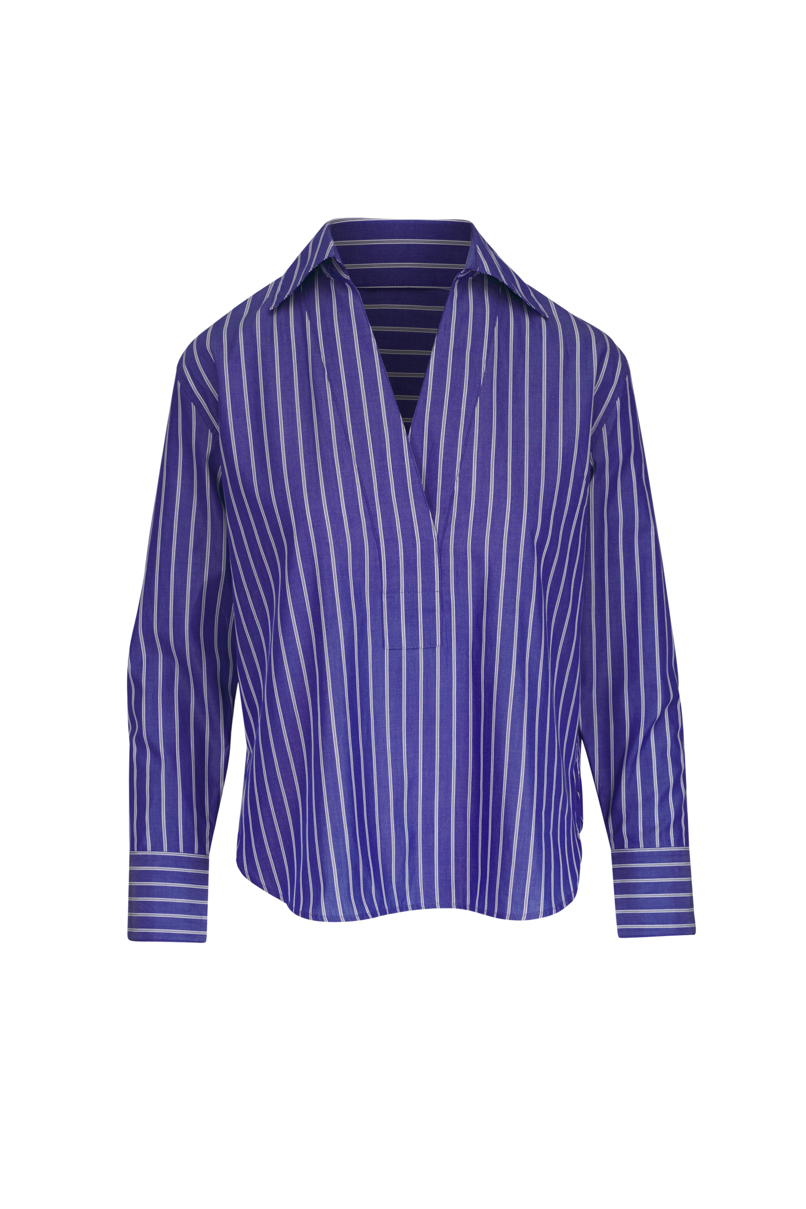 Spread collar. V-neckline. Single button cuffs. Shirttail hem. Imported. Approximately 25" shoulder to hem (measurements taken from XXS). Relaxed fit. 100% cotton. Machine wash.