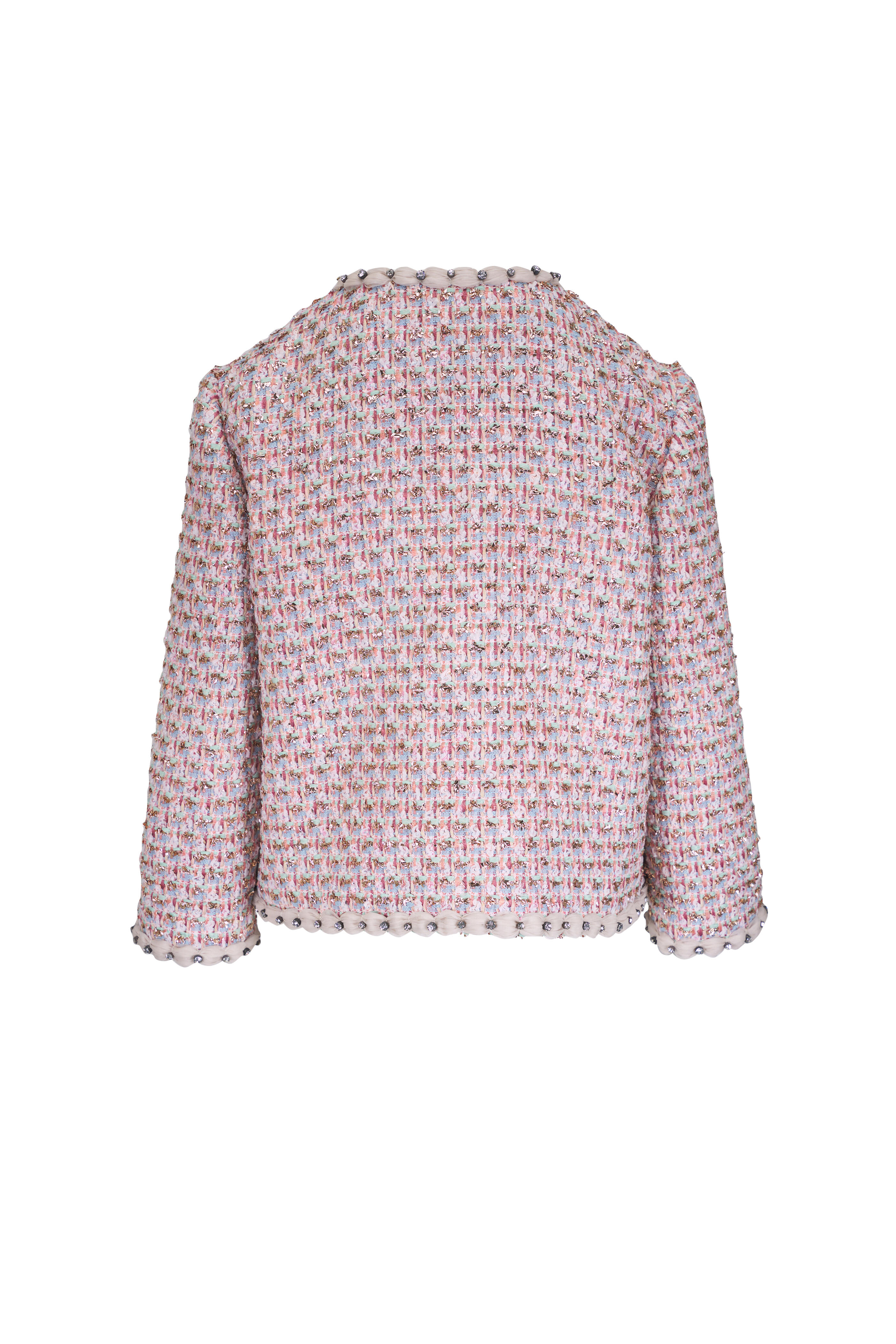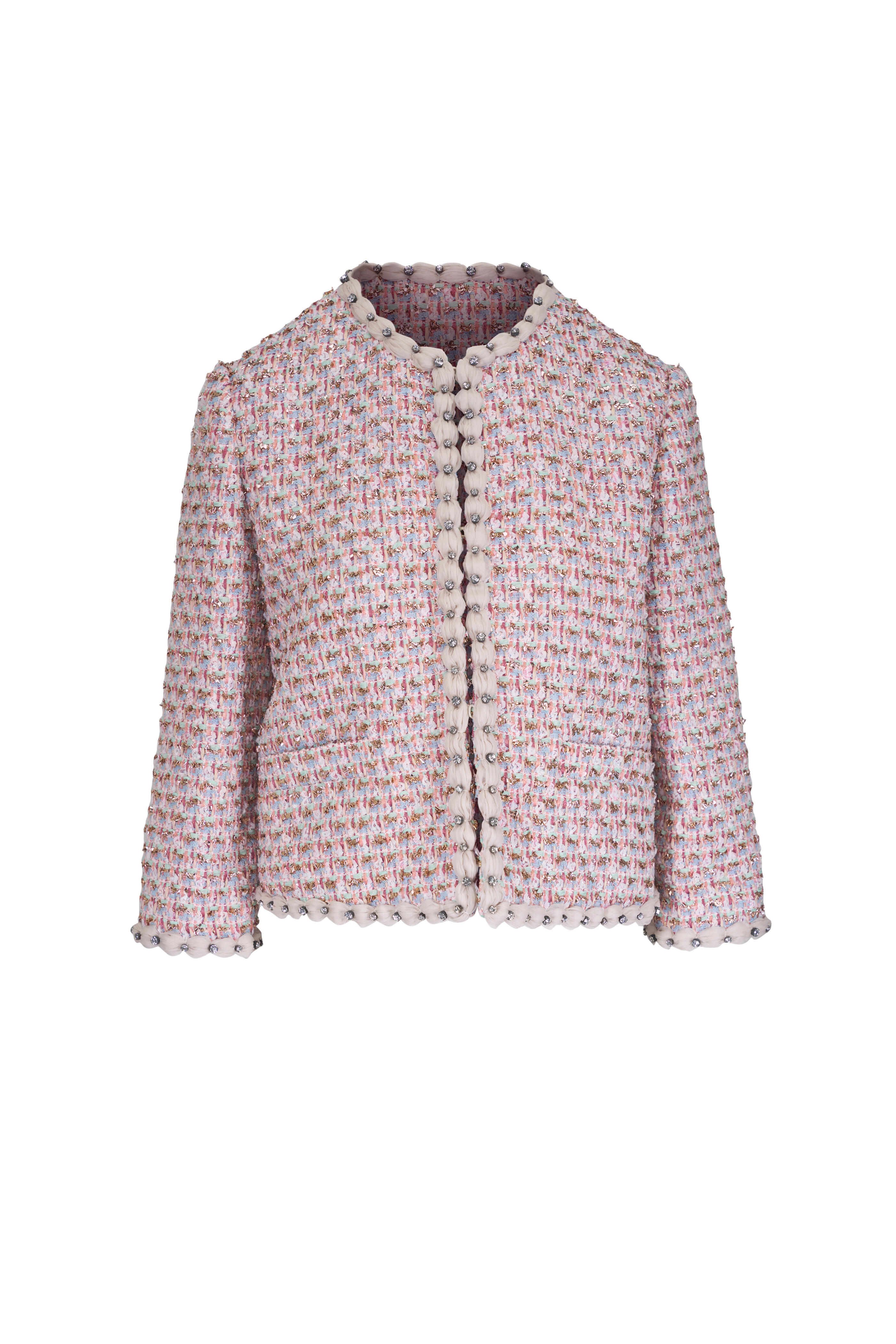Pastel Multicolor Embroidered Ribbon Tweed Jacket