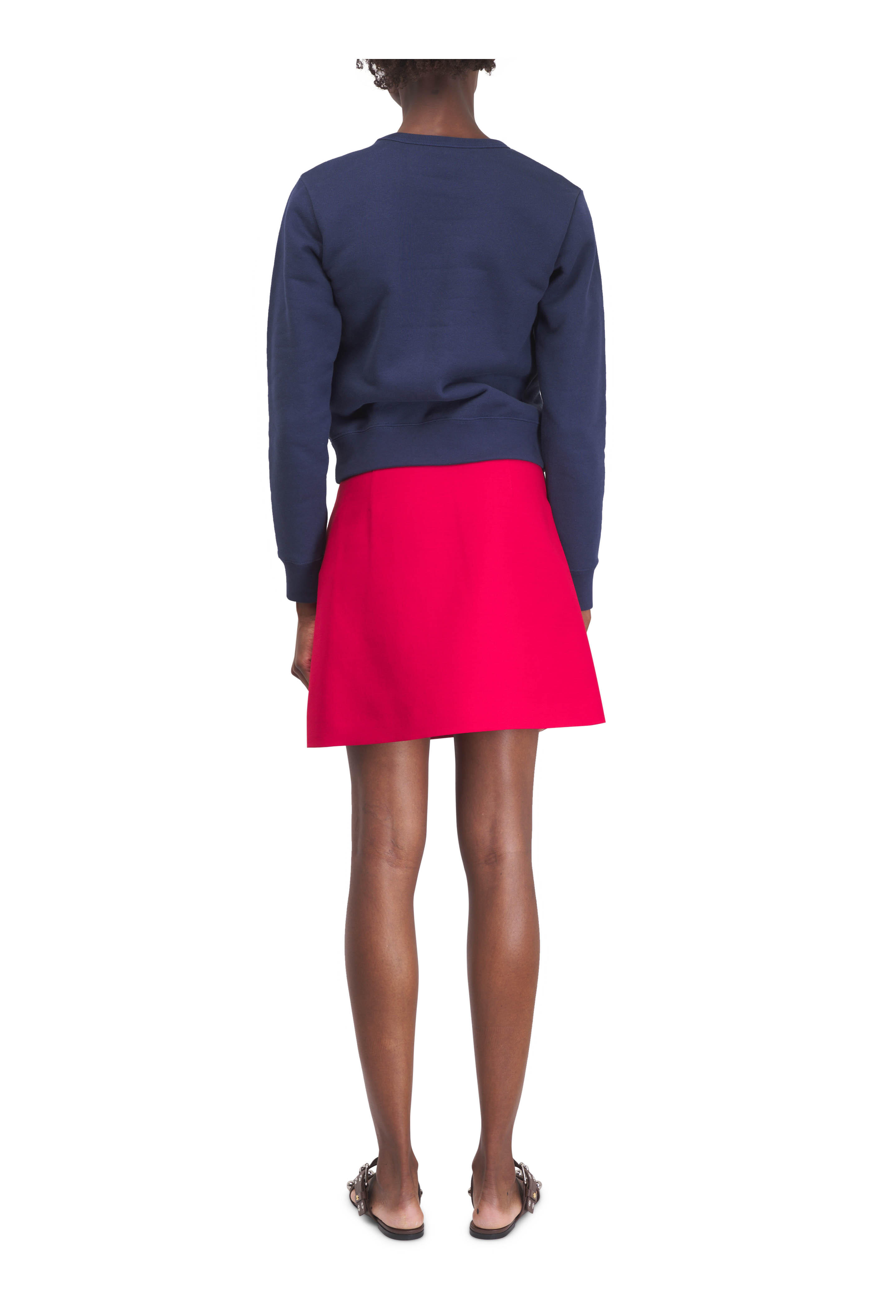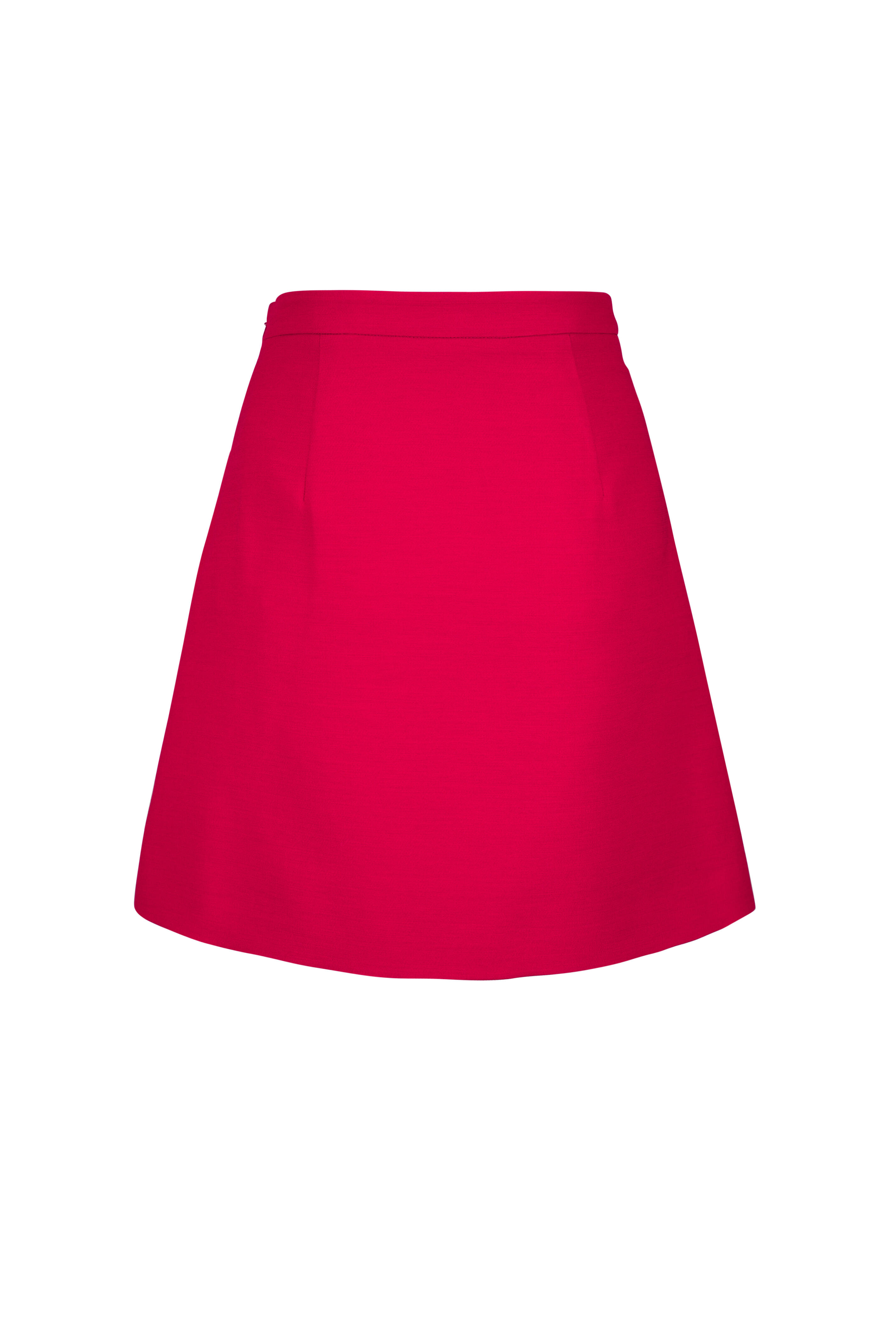 Banded waist. Concealed side zip. Front patch pockets; heart jewel embellishment. Made in Italy. Waist to hem 18" (size 4). 65% virgin wool, 35% silk; lined. Dry clean.