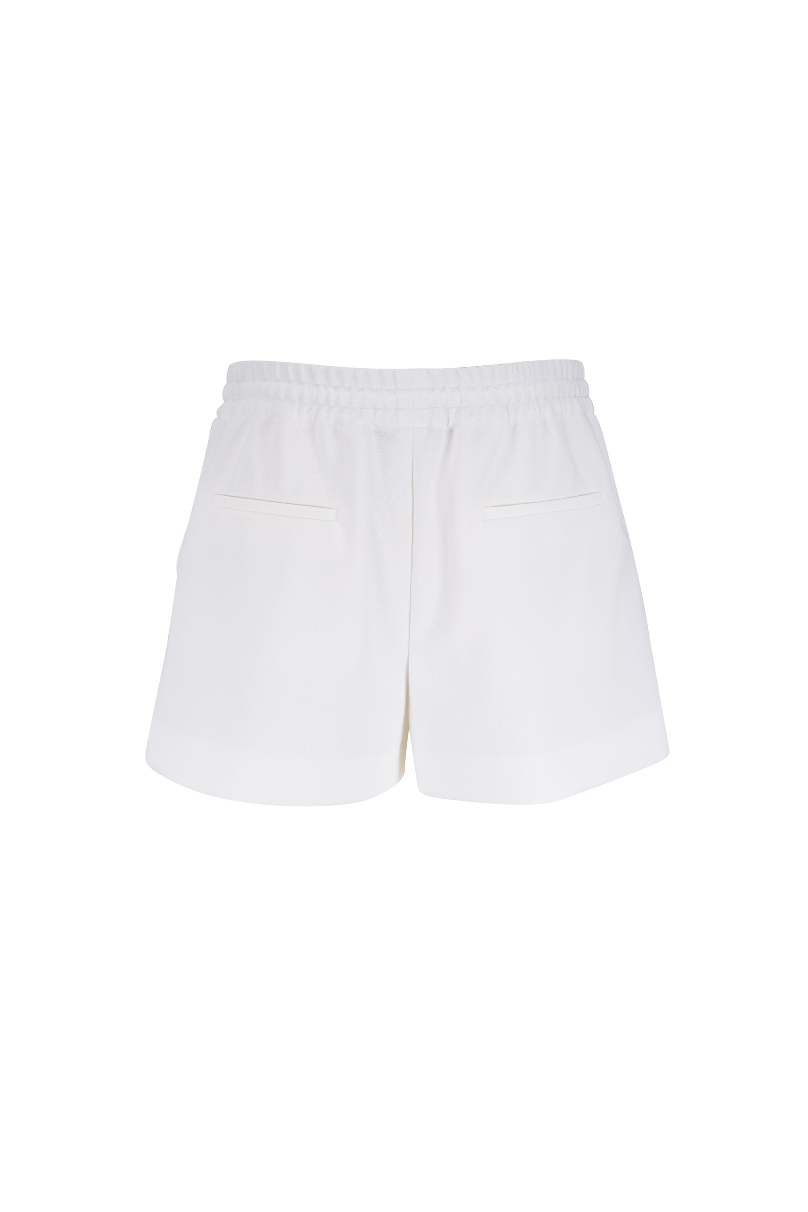 Drawstring; elasticized waist. Pull on style. Logo flap patch pockets; back besom pockets. Straight hem. Made in Italy. Highrise. Inseam 2" (size 4). 90% Polyester, 10% elastane; fully lined. Dry clean.