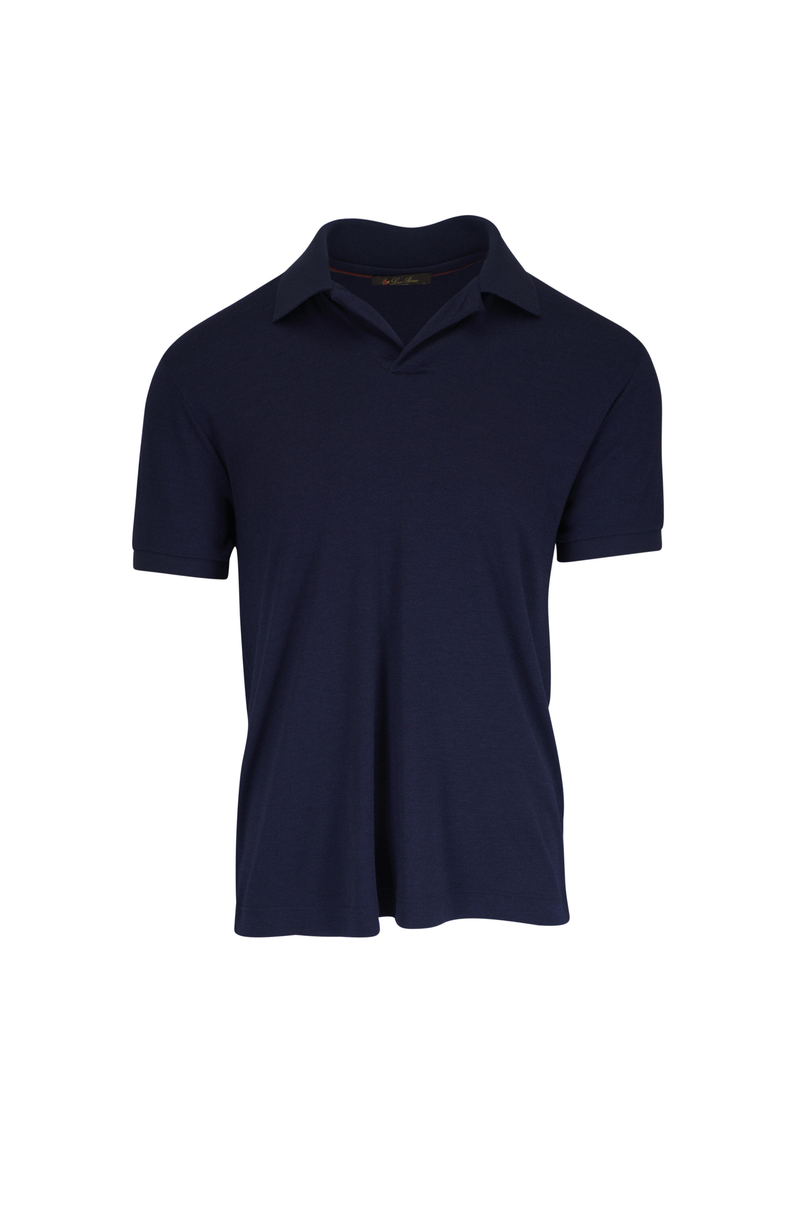 Philion Navy Blue Buttonless Cashmere & Silk Polo