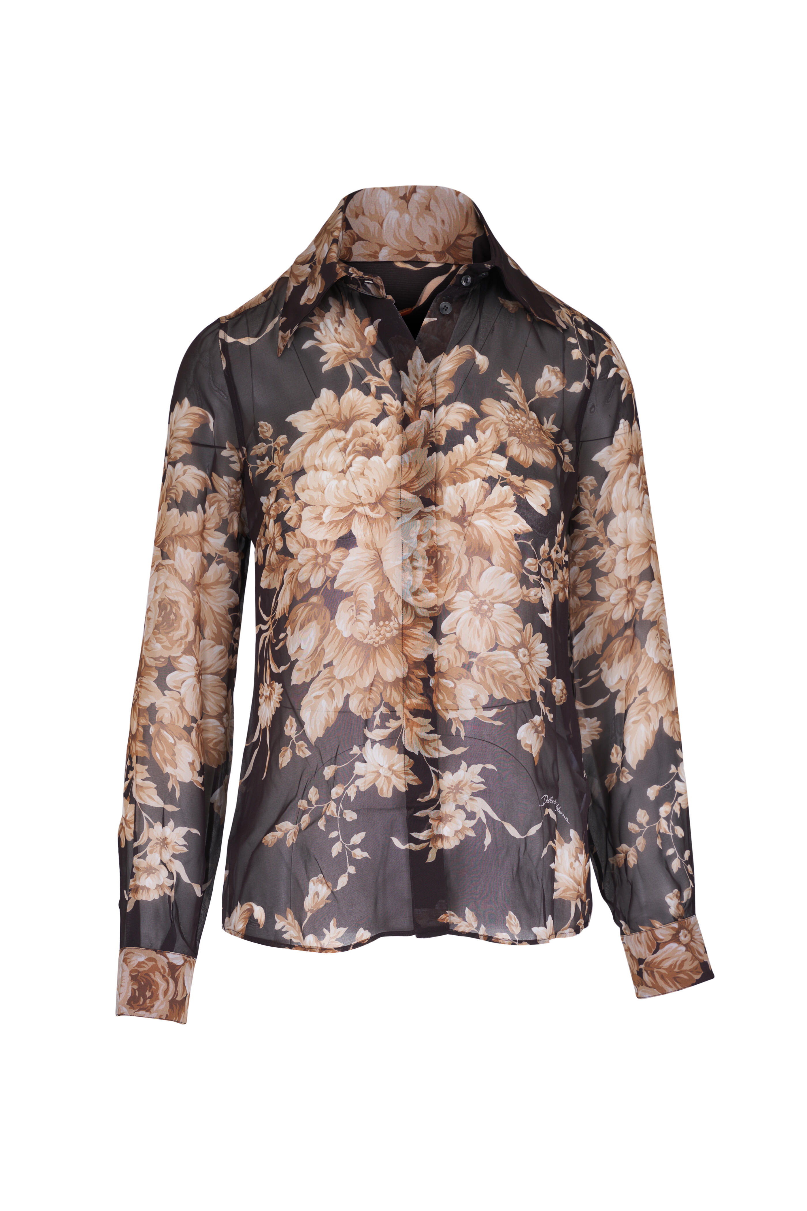 Brown & Beige Rose Print Chiffon Shirt