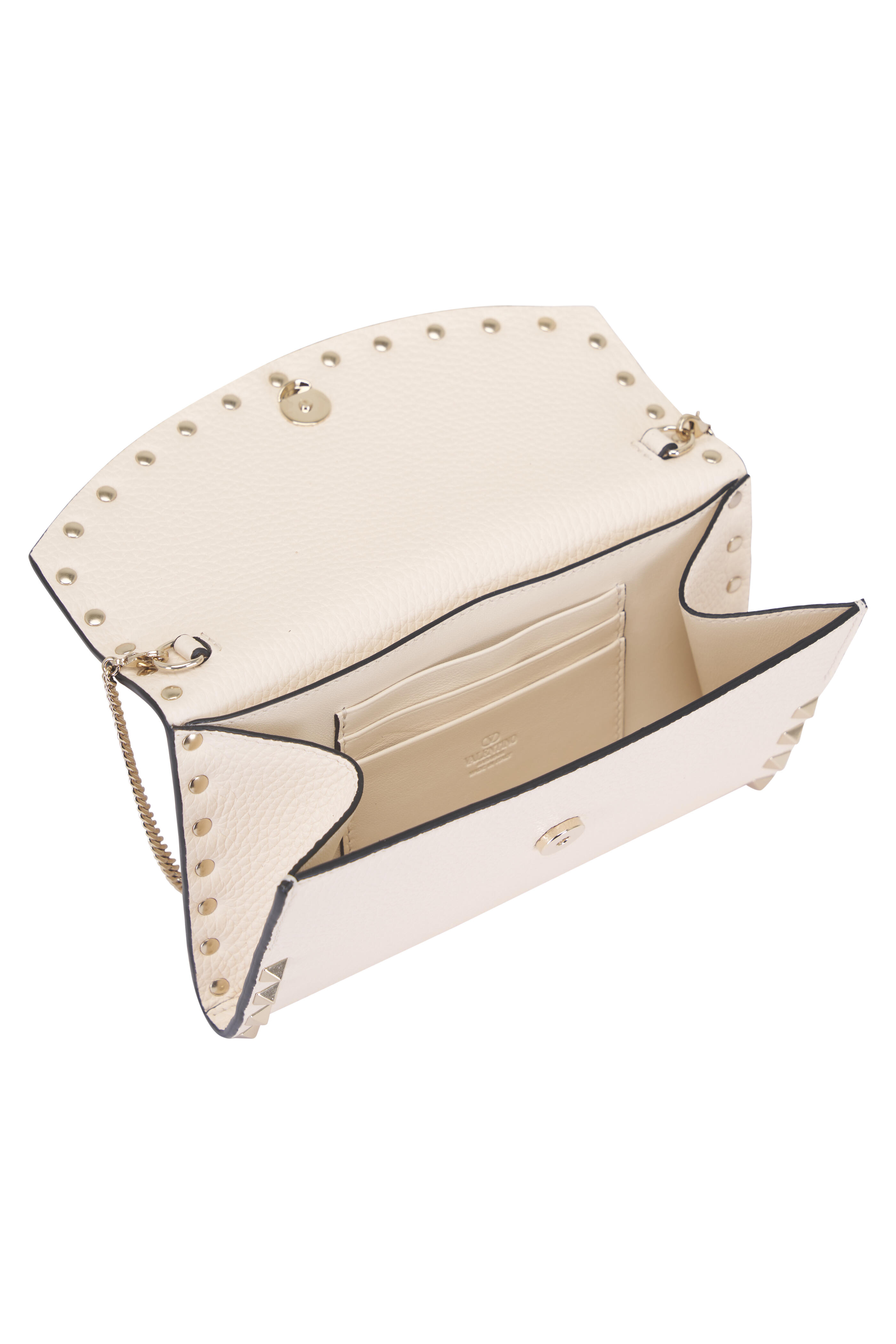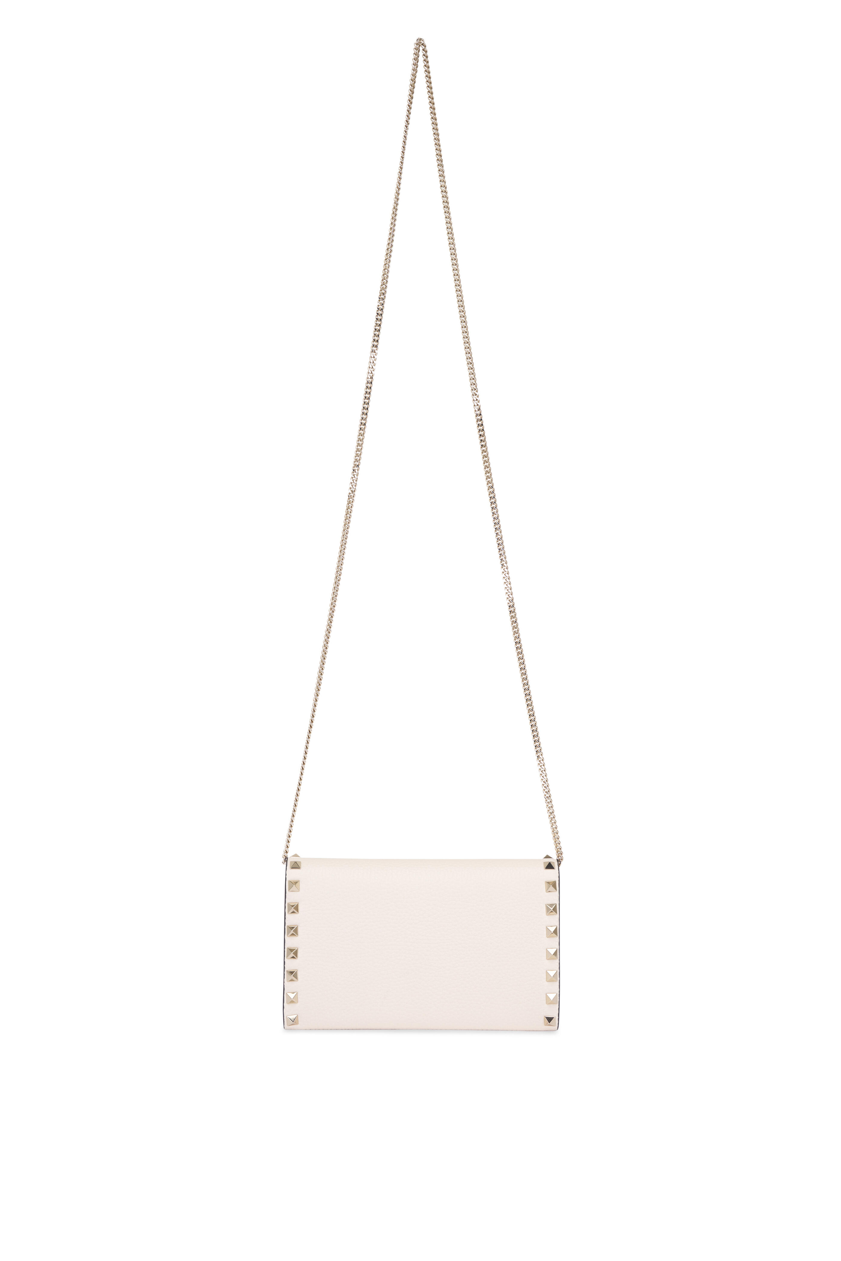 Light Ivory Rockstud Grain Leather Chain Wallet