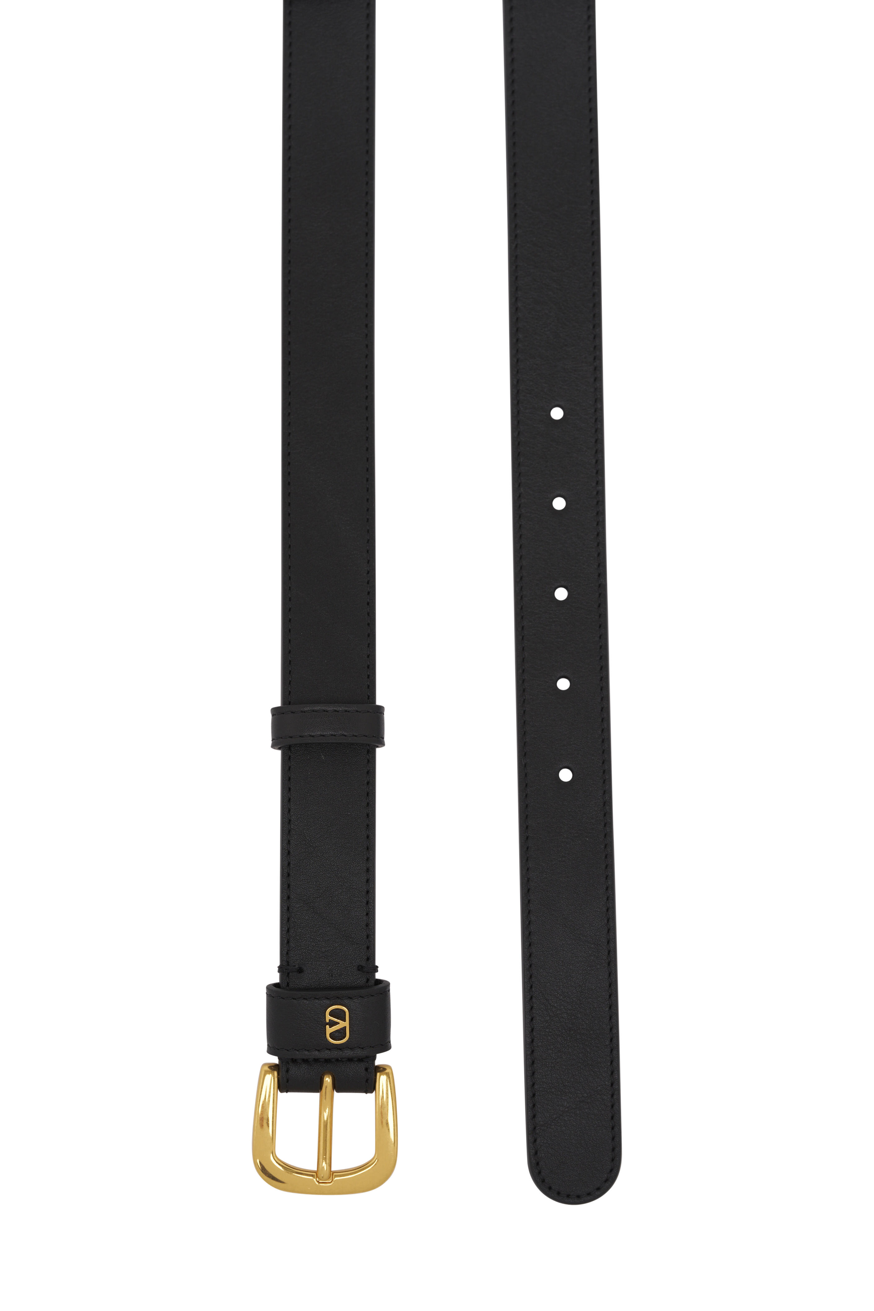 Leather. Gold-tone buckle. Round tip. Two loop keeper with Vlogo detail. Made in Italy. Width: 25mm.