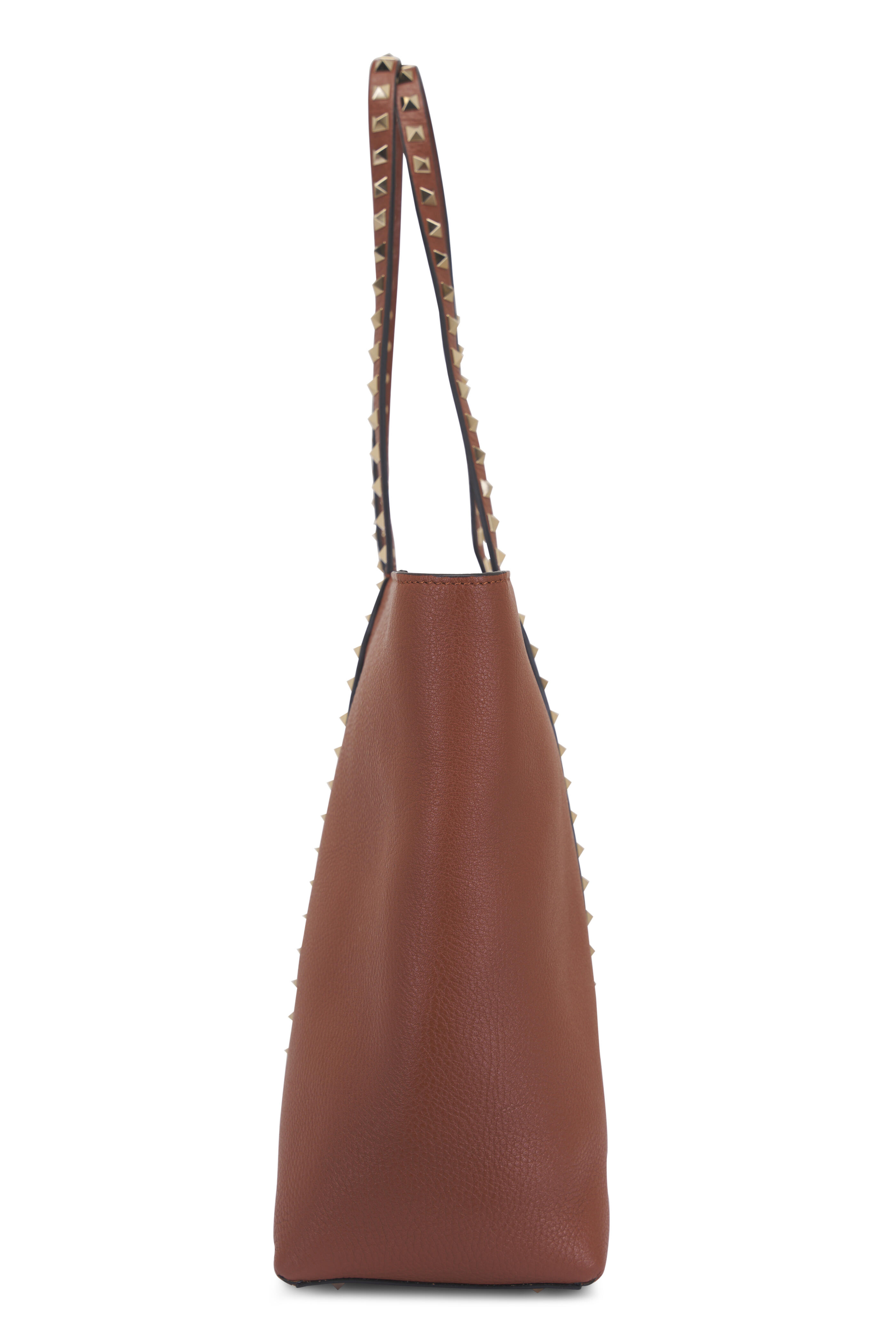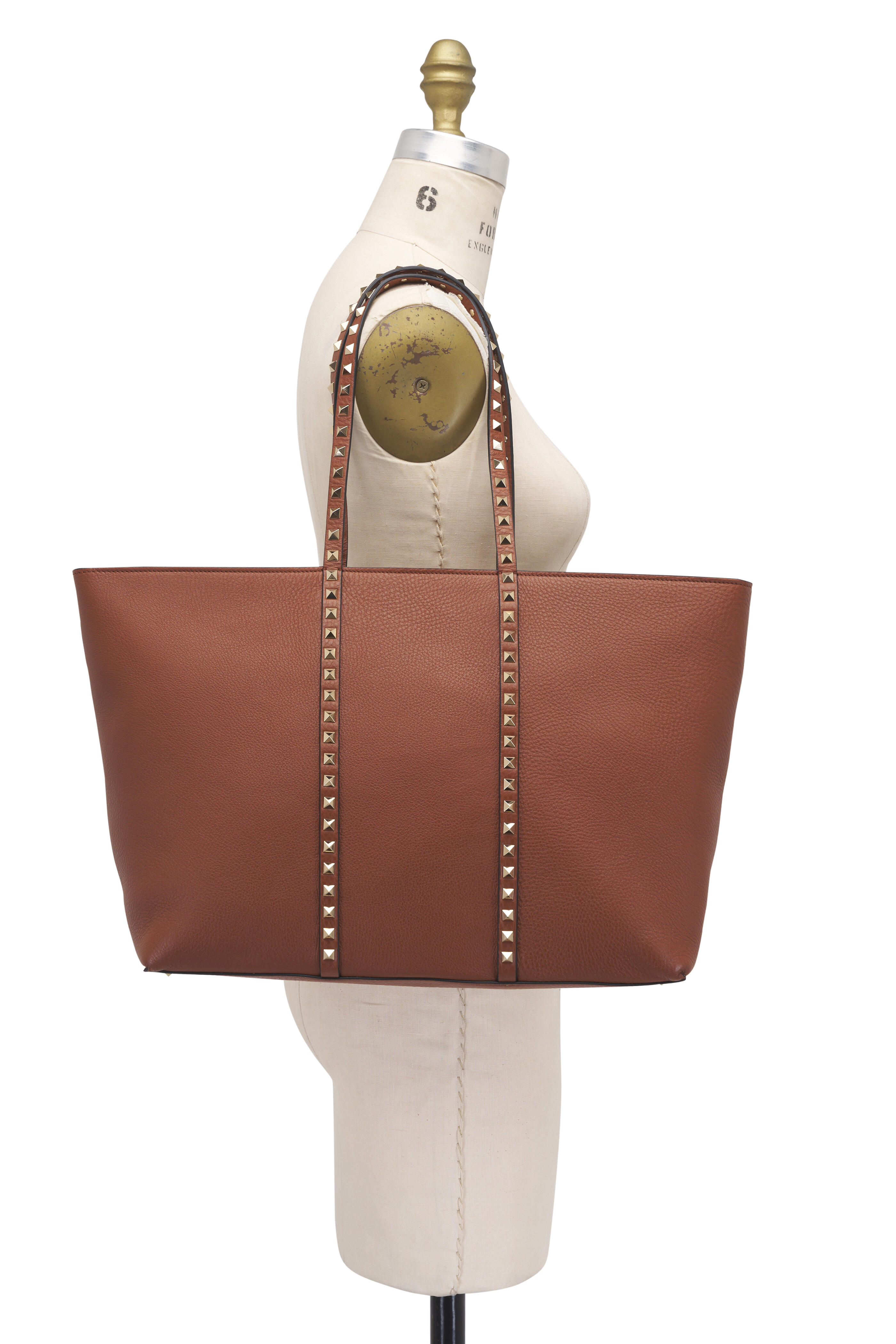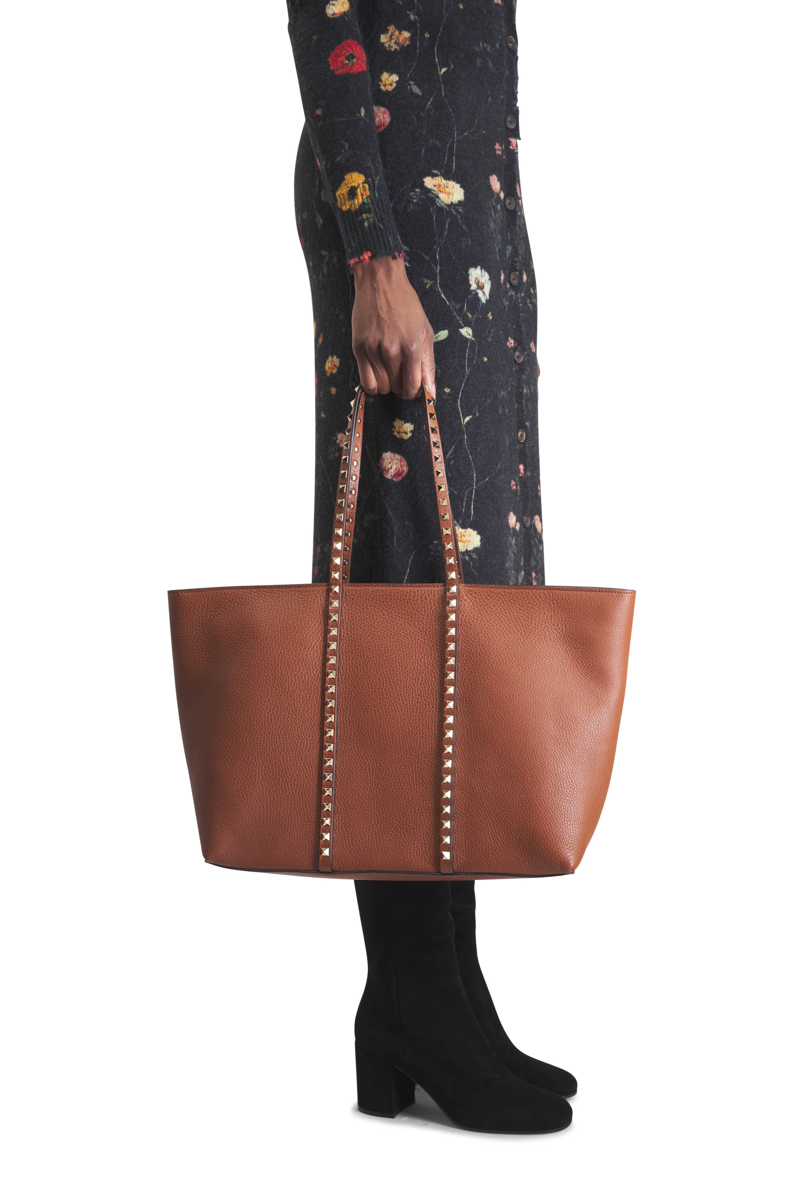 Leather. Dual top handles. Top zip closure. Single open compartment; leashed zip pouch. Rockstud detailing. Leather lining. Made in Italy. Height 28cm-11". Width 48cm-19". Depth 11cm-4.5". Length of handles 51cm-20".