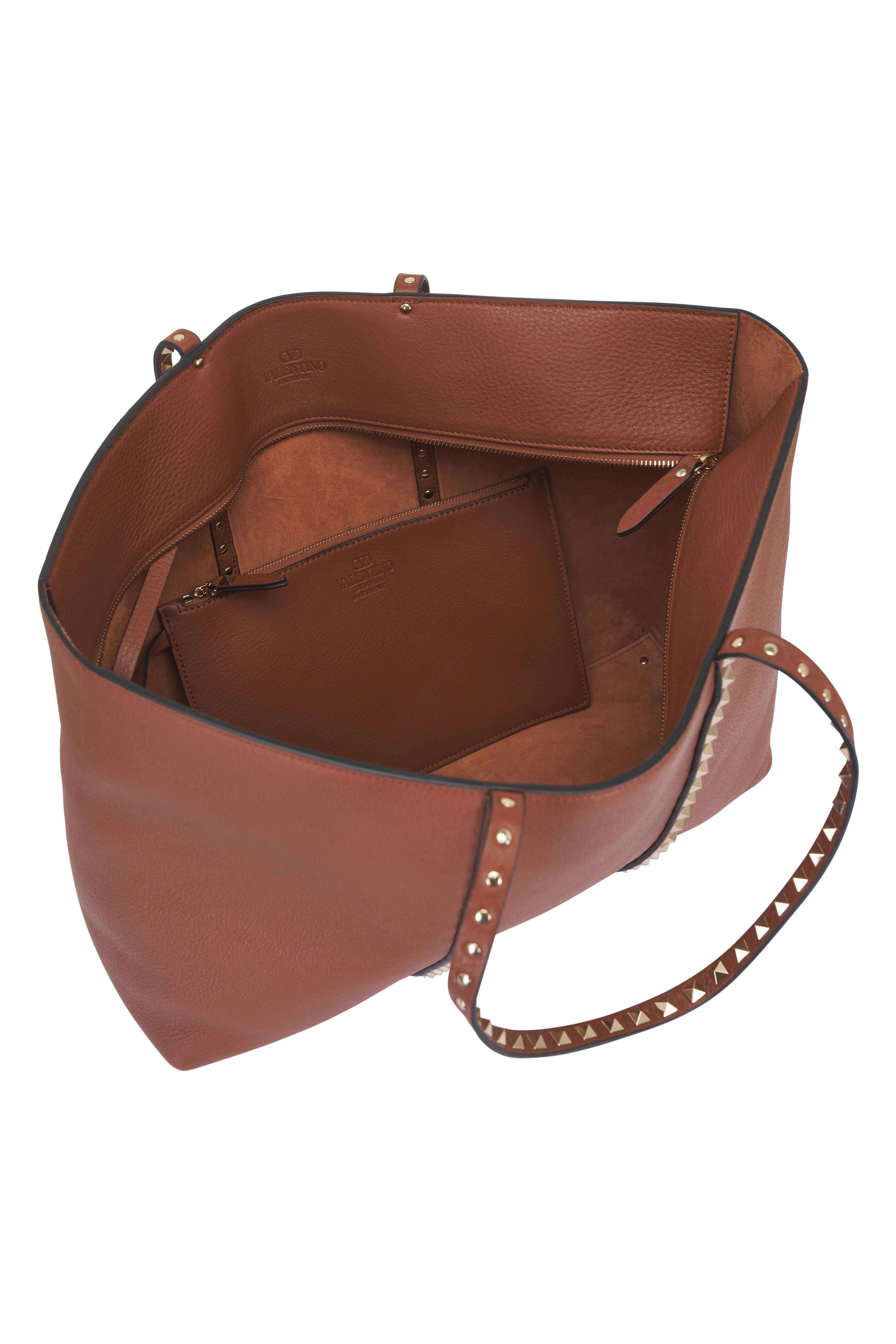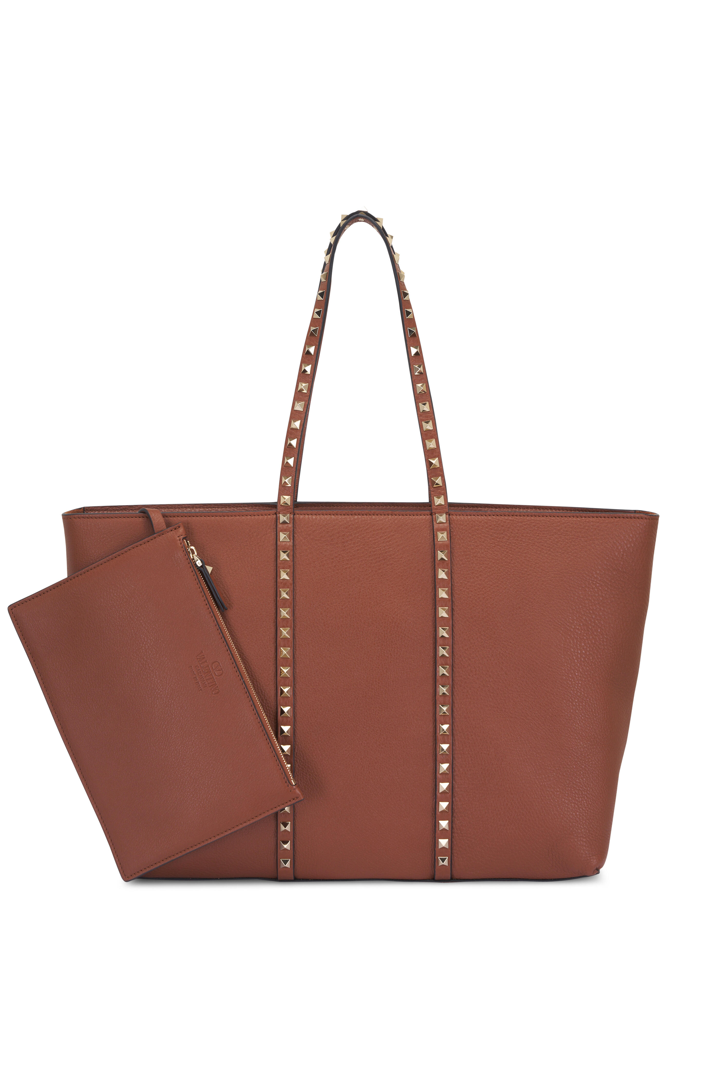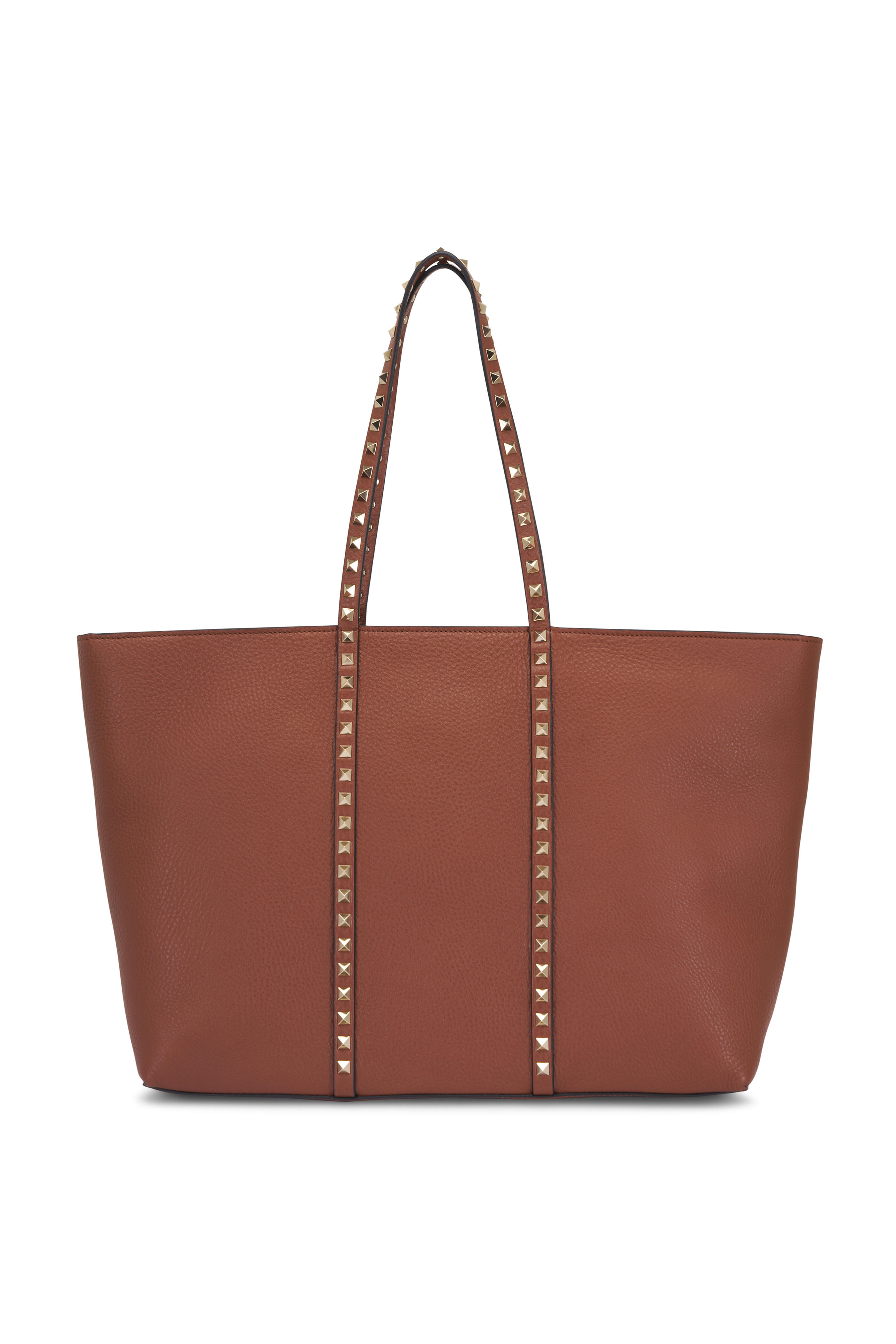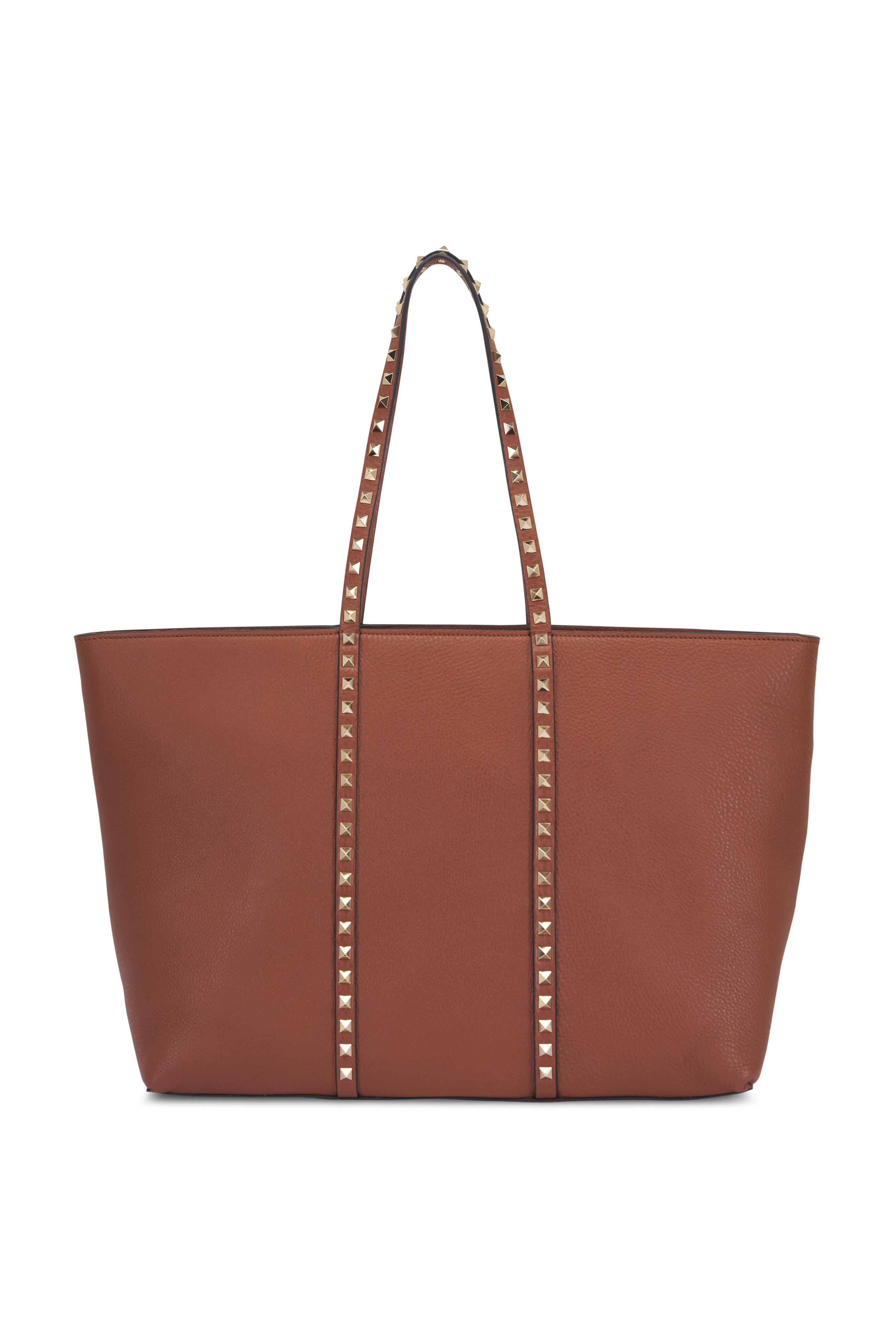 Leather. Dual top handles. Top zip closure. Single open compartment; leashed zip pouch. Rockstud detailing. Leather lining. Made in Italy. Height 28cm-11". Width 48cm-19". Depth 11cm-4.5". Length of handles 51cm-20".