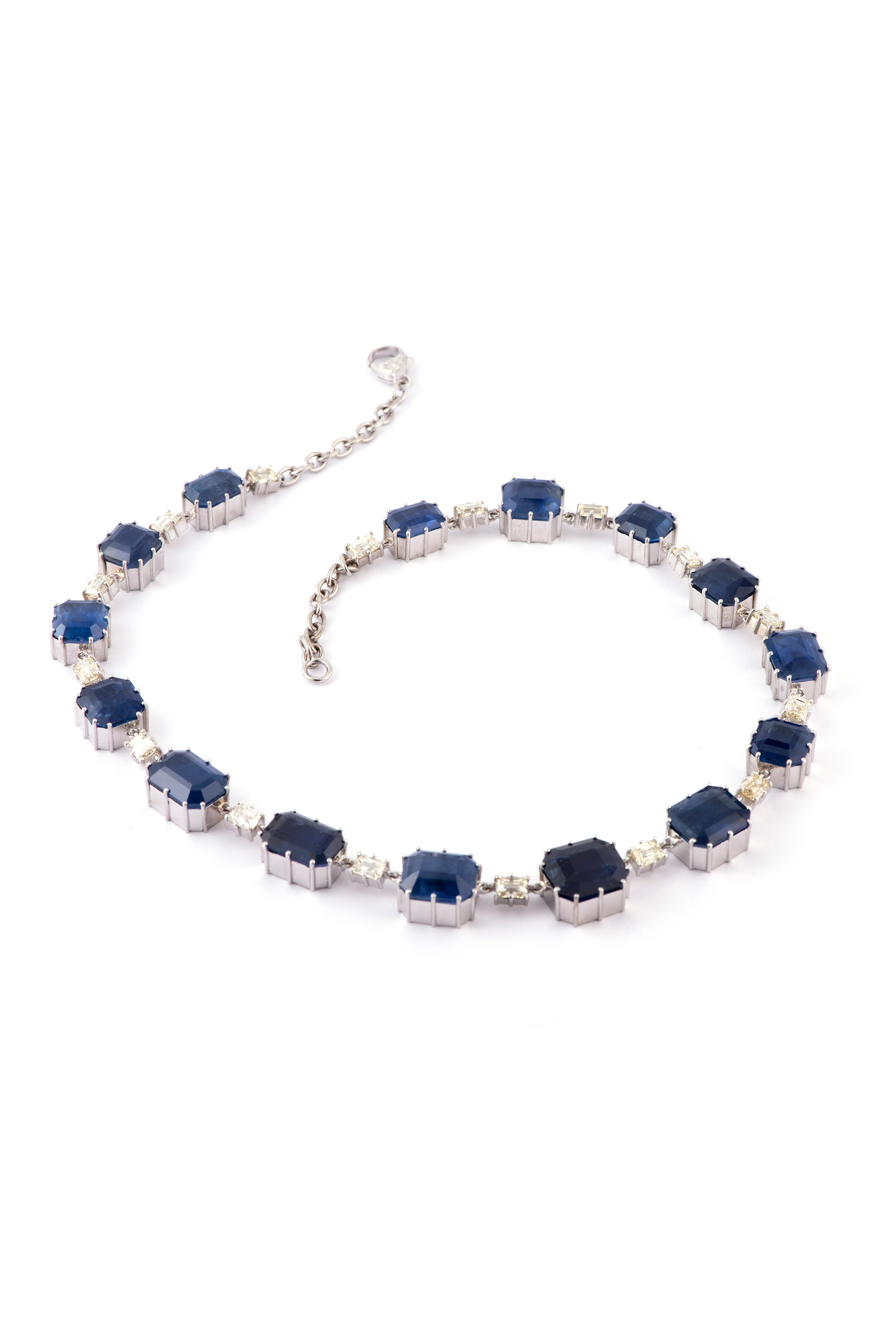 18k White Gold. 81.86 ct Ceylon Sapphire. 6.46 ct Diamond.